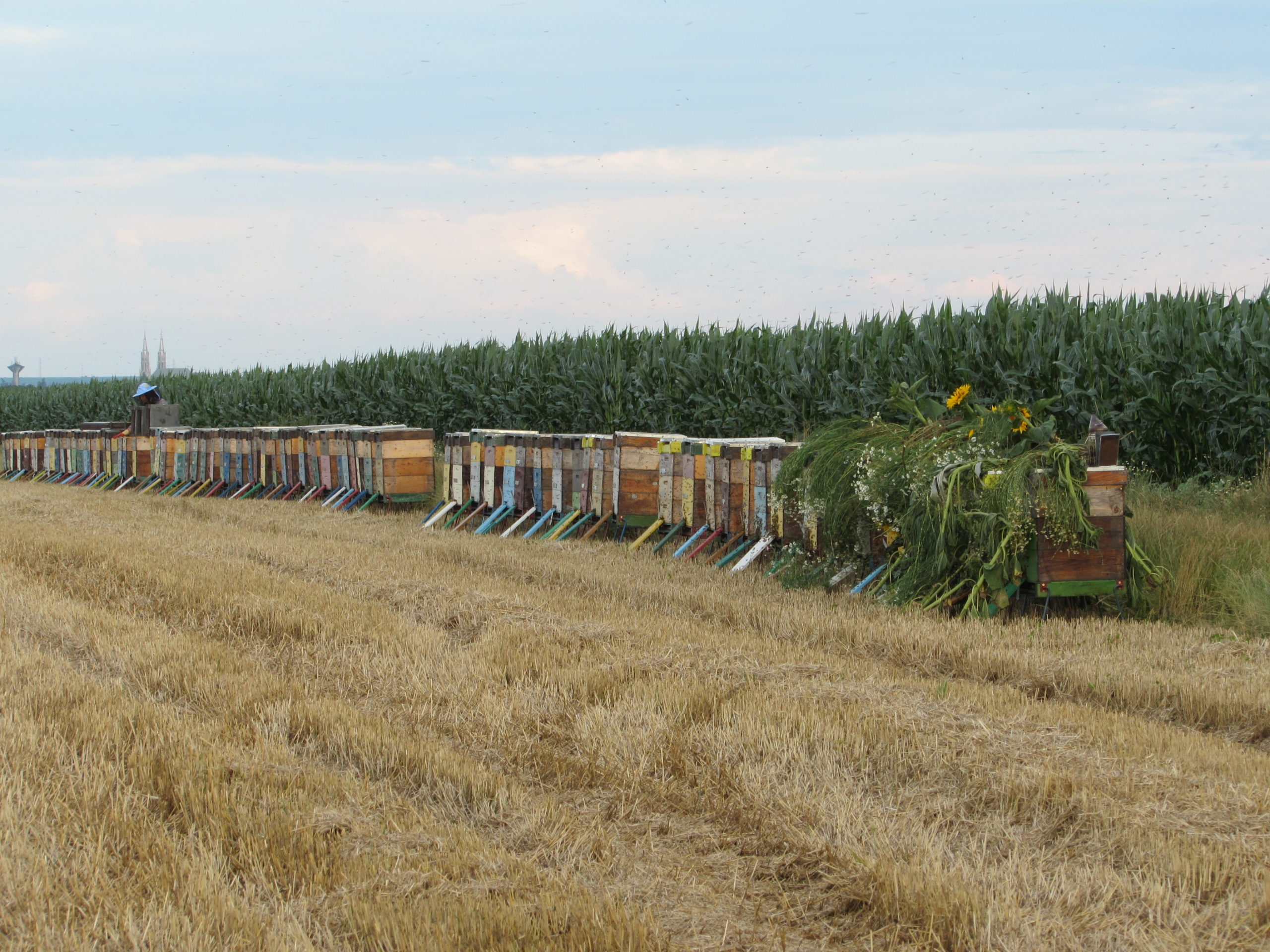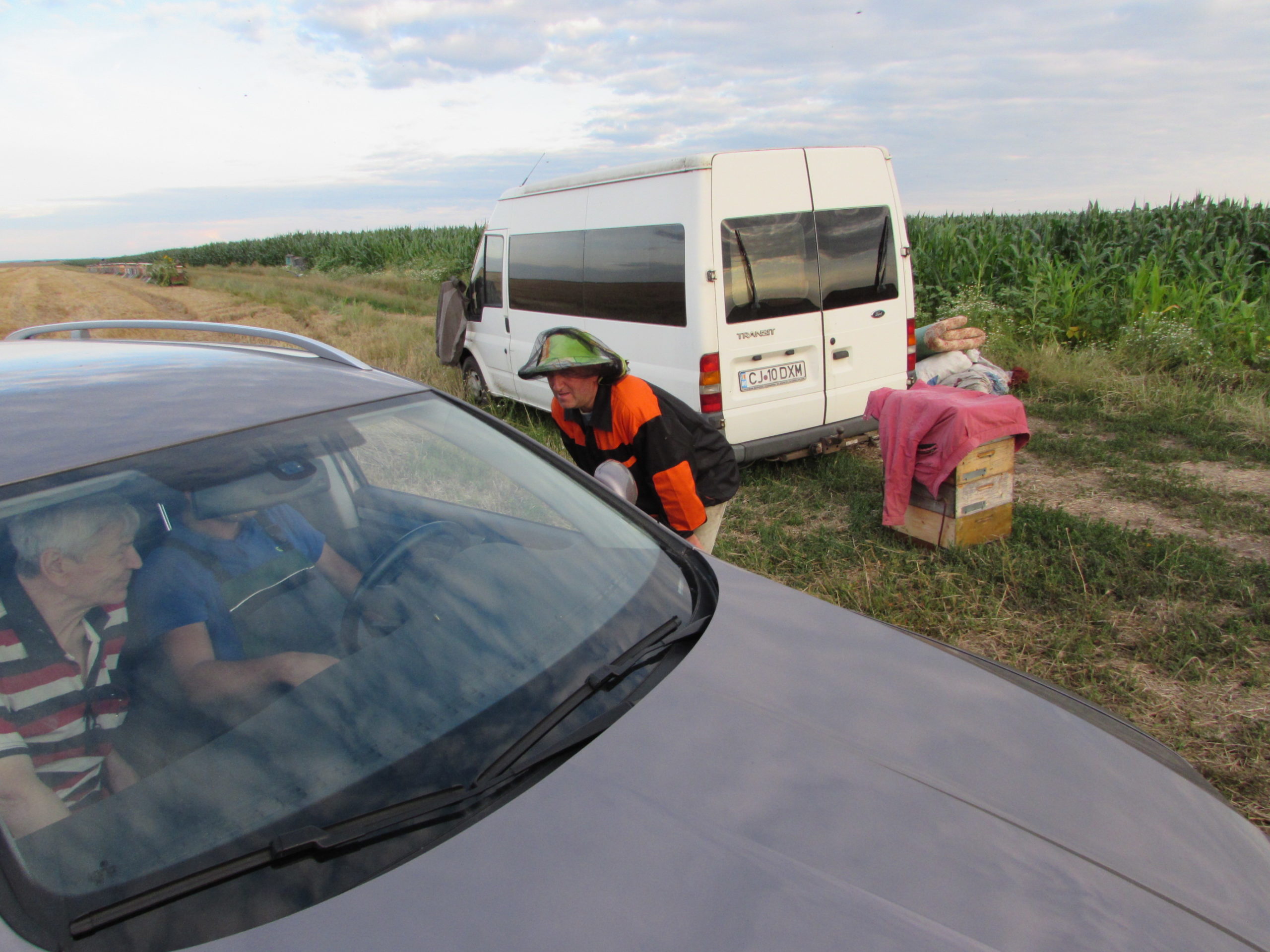 O familie din Cluj vine de câțiva ani cu albinele la câmpurile de floarea-soarelui. Ca să nu existe nici un dubiu, albinele au loc rezervat.