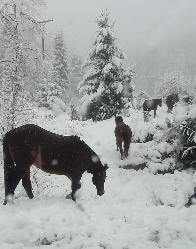 Drumarii cărășeni au amenajat locuri de hrană pentru caii sălbatici din zona Marila