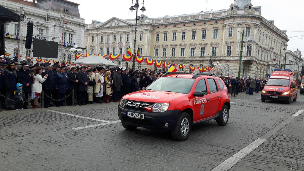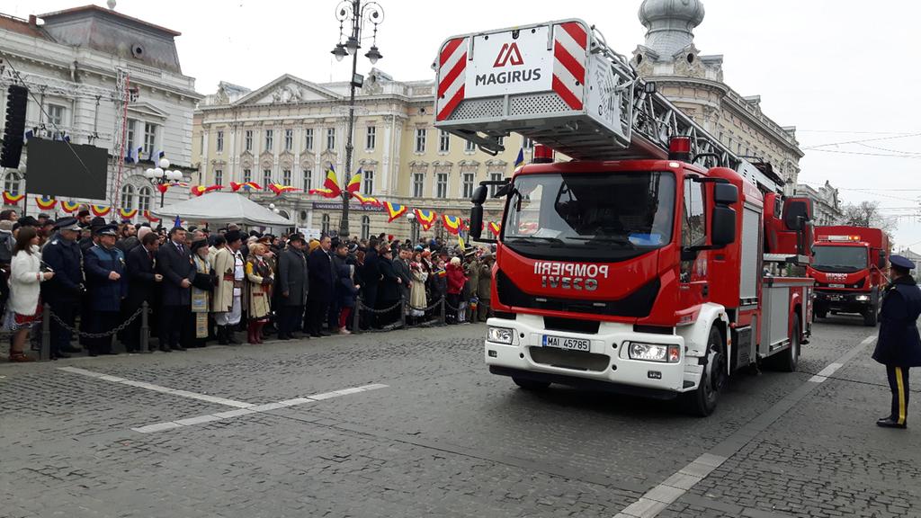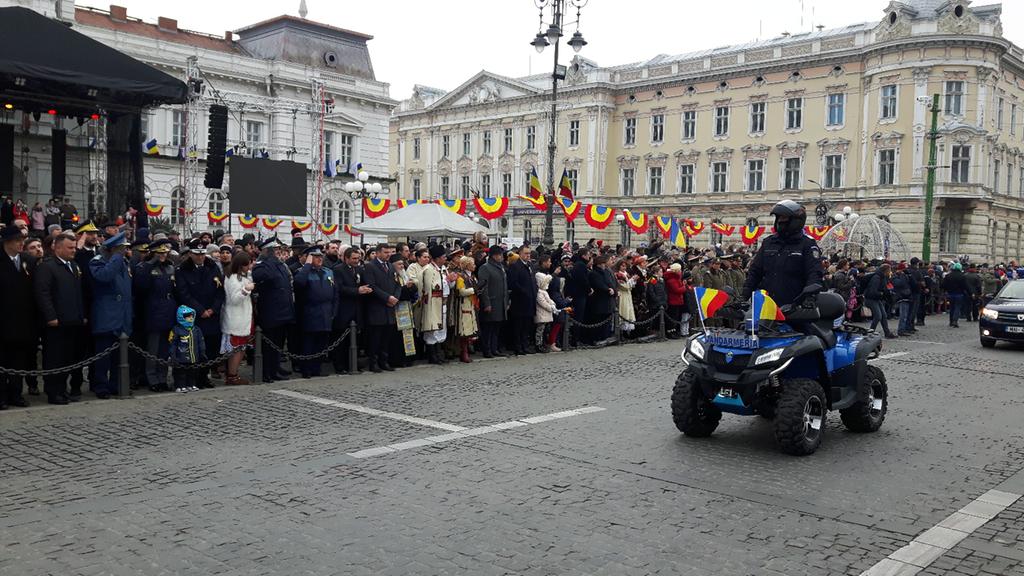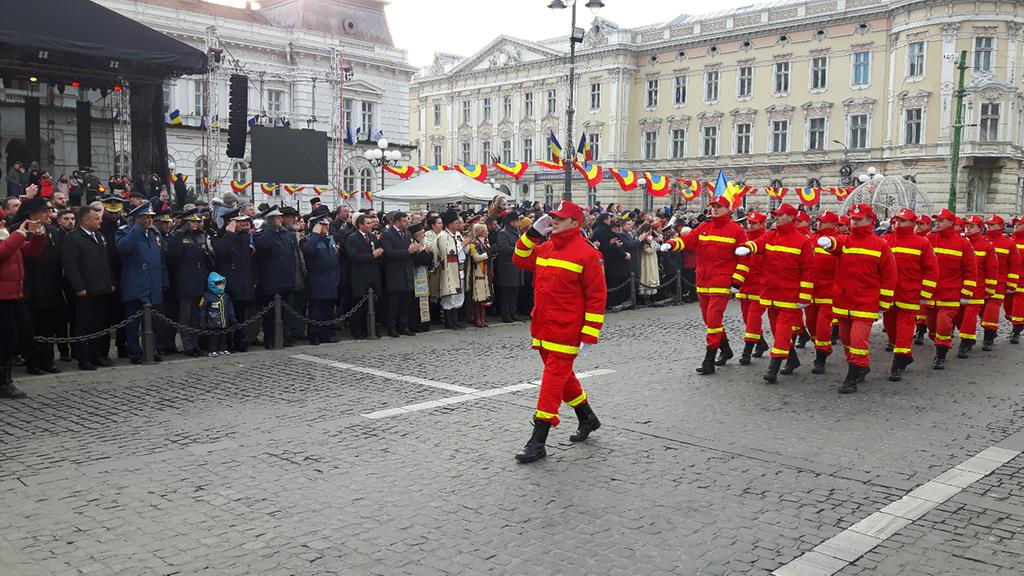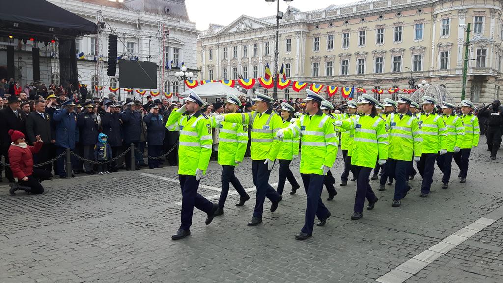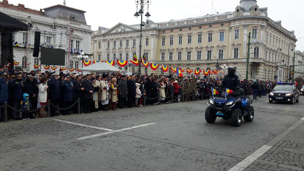 Sute de arădeni au asistat, astăzi, la defilarea gărzii comune a detașamentelor Ministerului Apărării Naționale, Ministerului de Interne, Inspectoratelor de Jandarmi şi pentru Situații de urgență şi Serviciului de Ambulanță Județean.