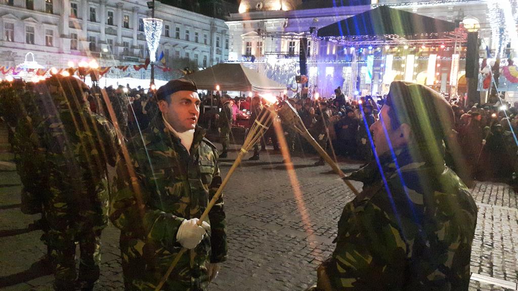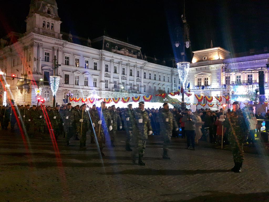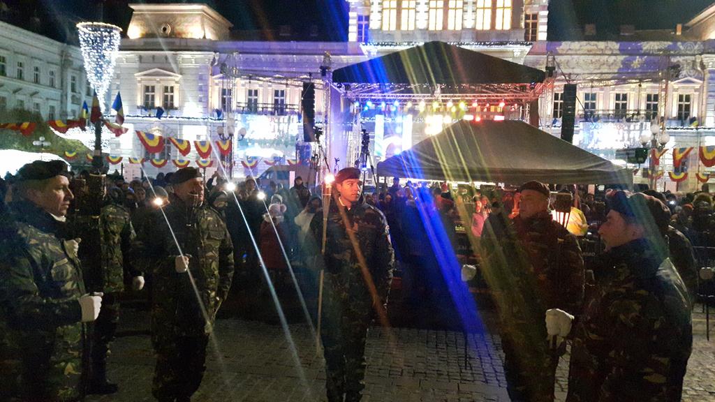 Evenimentele dedicate sărbătoririi Zilei Naționale a României și a Centenarului Marii Uniri culminează cu retragerea cu torțe a militarilor Batalionului 191 Infanterie „Colonel Radu Golescu”, pe traseul: Palatul Administrativ – Bulevardul Revoluției – Teatrul Clasic „Ioan Slavici” – Piața Avram Iancu – str. Nicolae Bălcescu – Podul Decebal – Cazarma Cetate.
