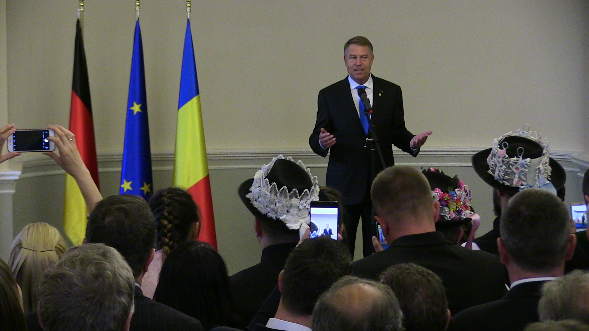 Preşedintele Klaus Johannis, membru al comunităţii germanilor din România şi fost preşedinte al Forumului German, a amintit exemplul pe care România îl dă Europei în ceea ce priveşte politica statului pentru minorităţile naţionale.