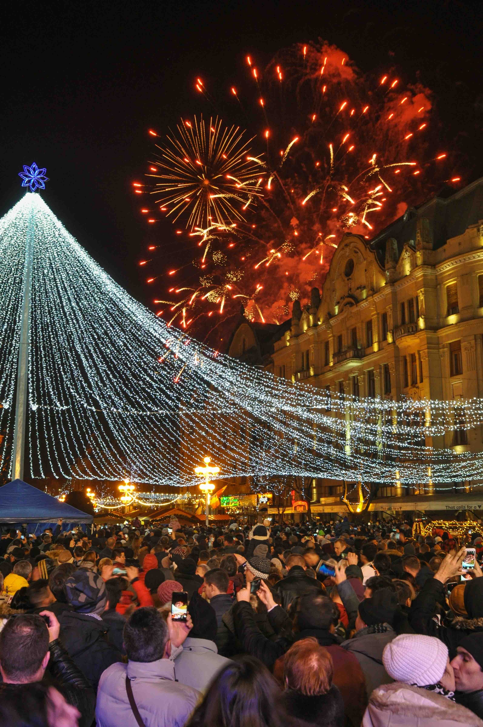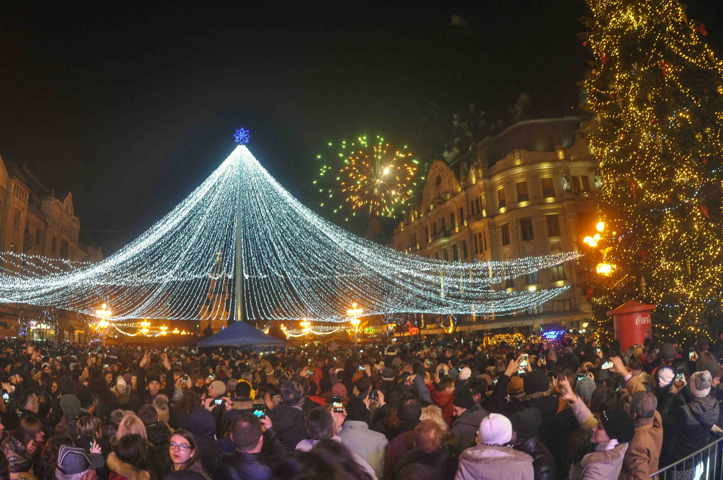 Trecerea în 2018 a fost însoţită de un foc de artificii care a luminat cerul Timişoarei timp de aproximativ 15 minute.