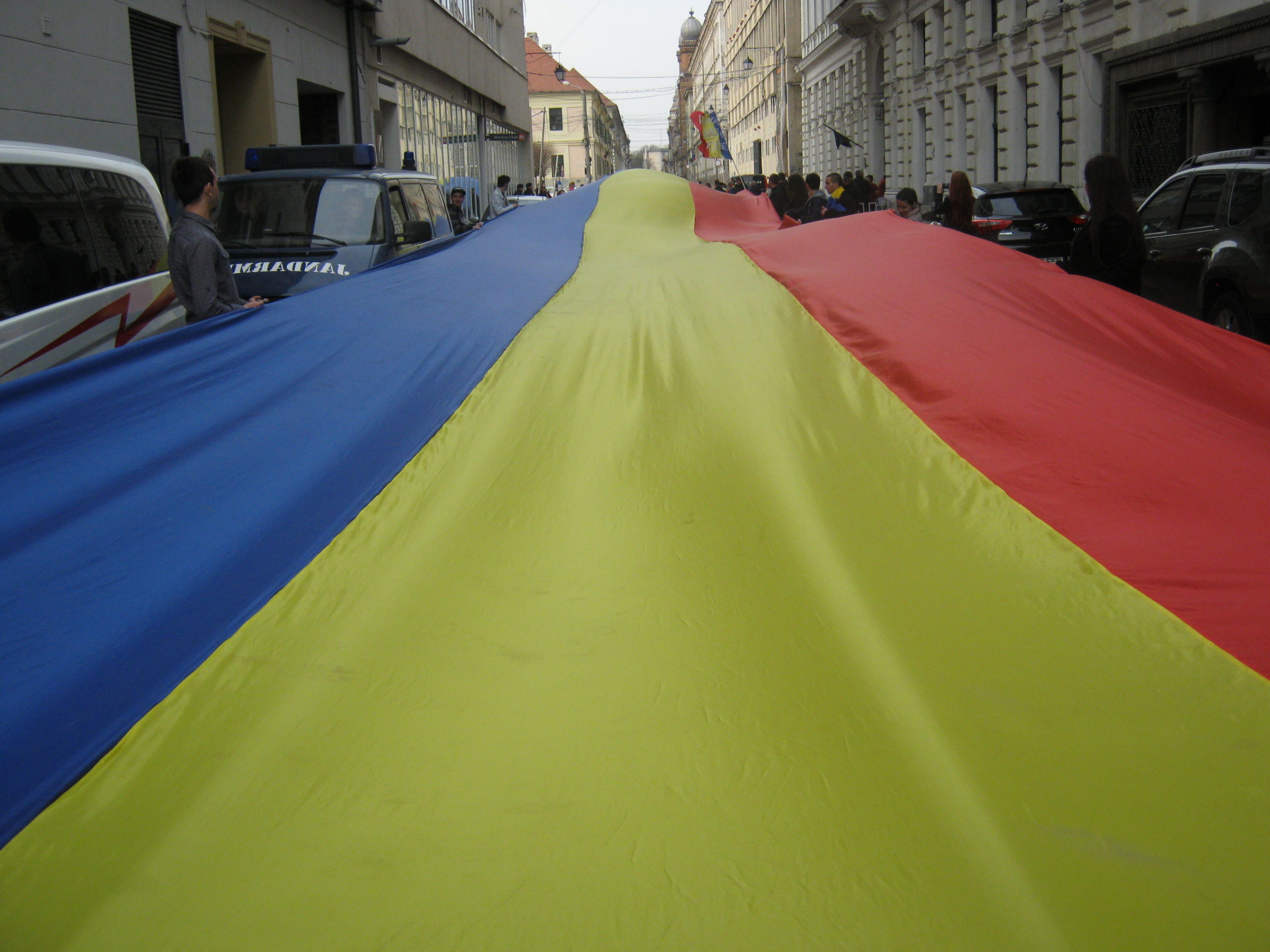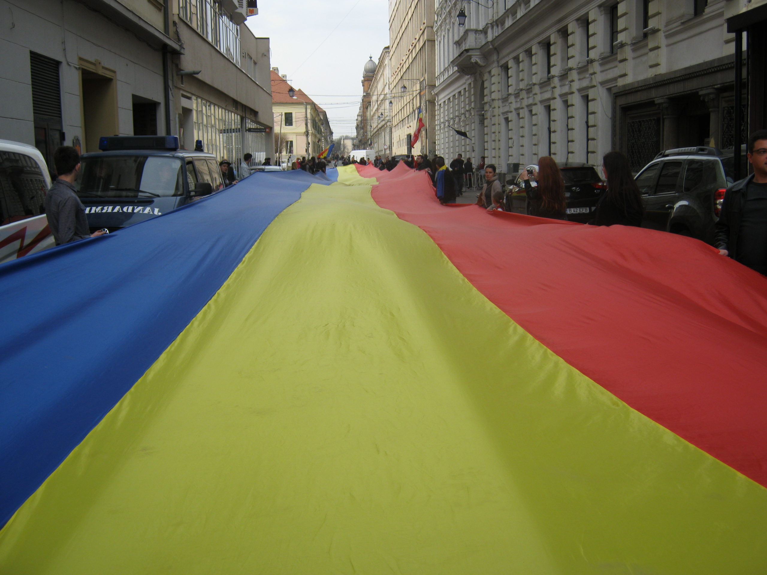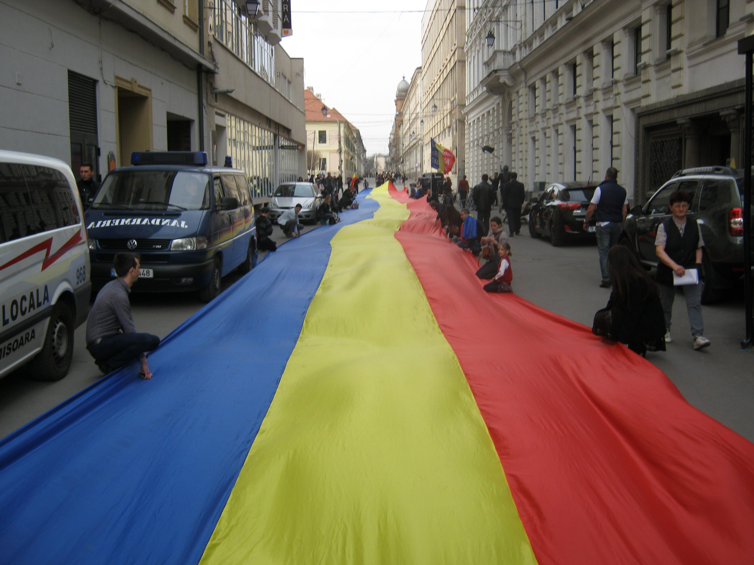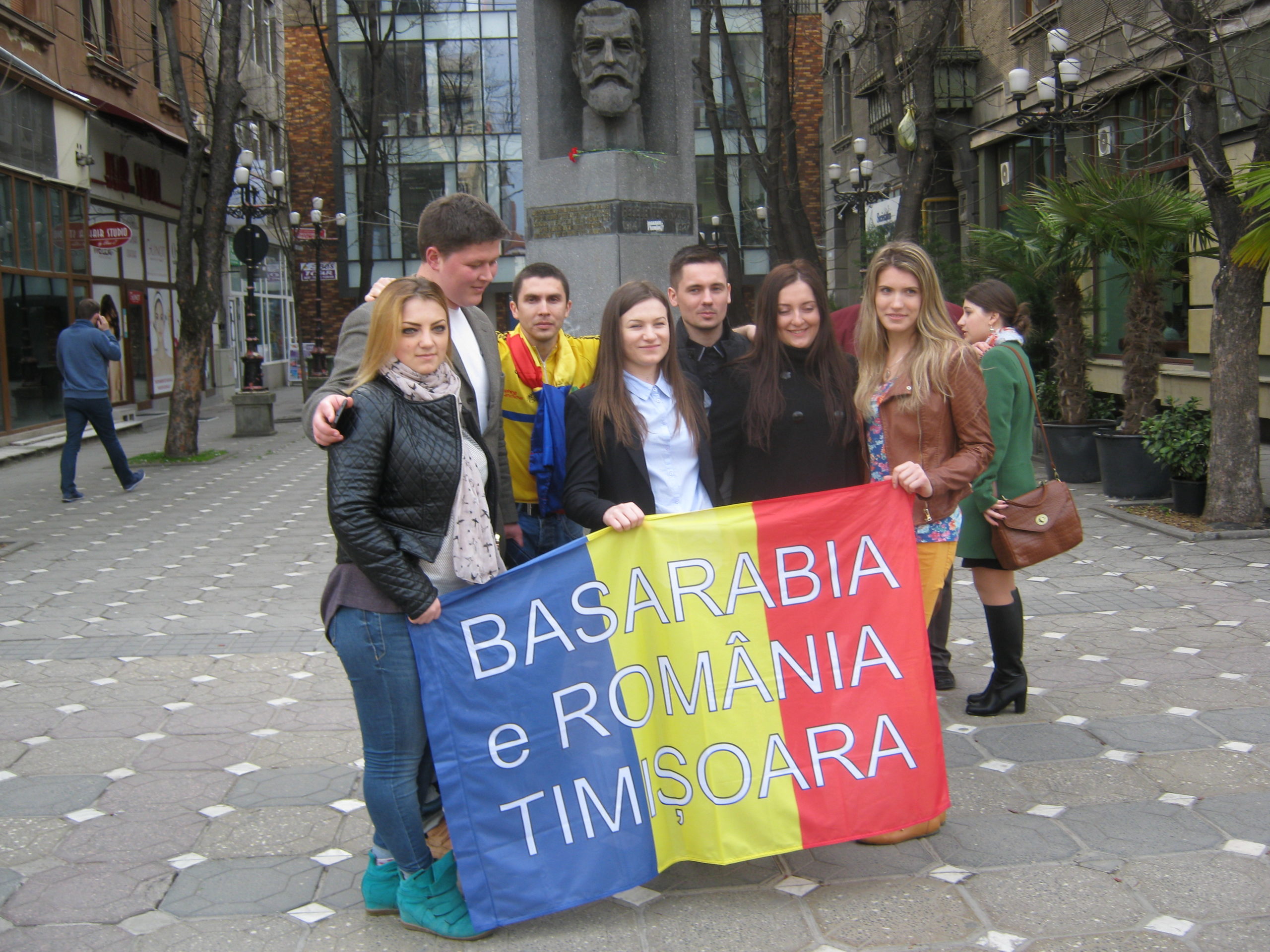 Un tricolor uriaș de 100 de metri a fost desfășurat, vineri, de studenții basarabeni pe pietonala Mărășești din Timișoara. Organizația Studenților Basarabeni din Timișoara și Acțiunea 2012 au marcat în acest fel 97 de ani de la Unirea Basarabiei cu România.