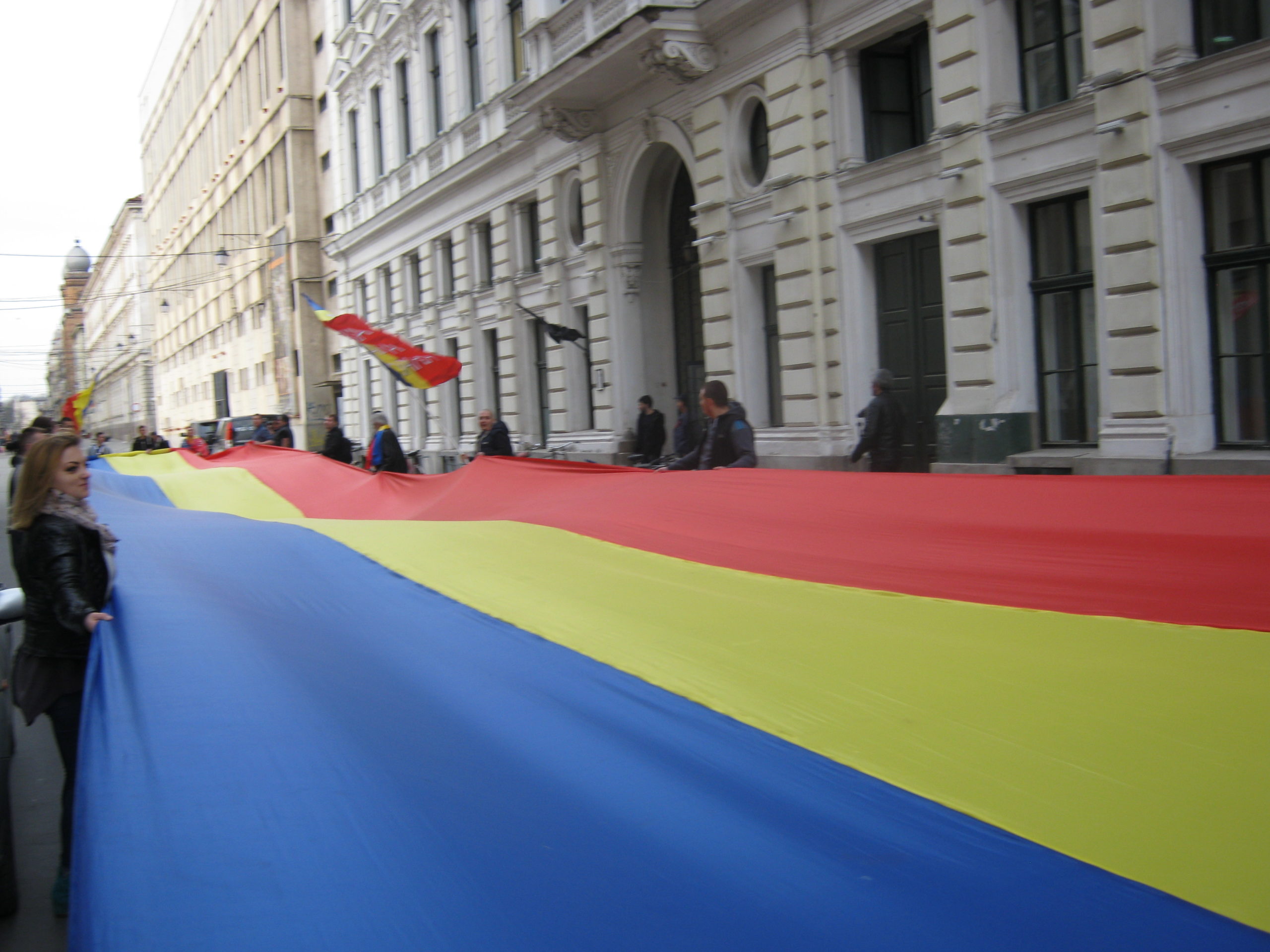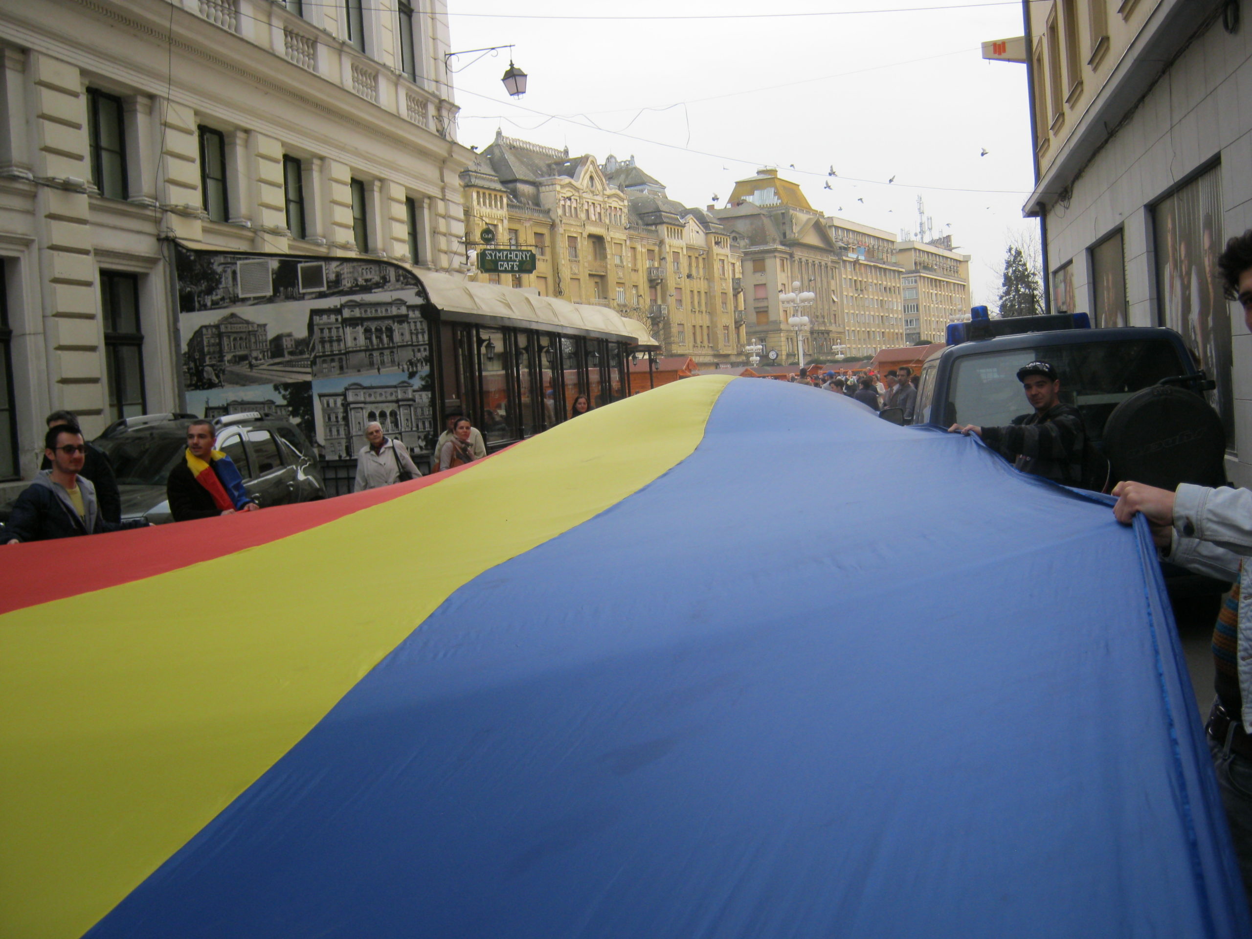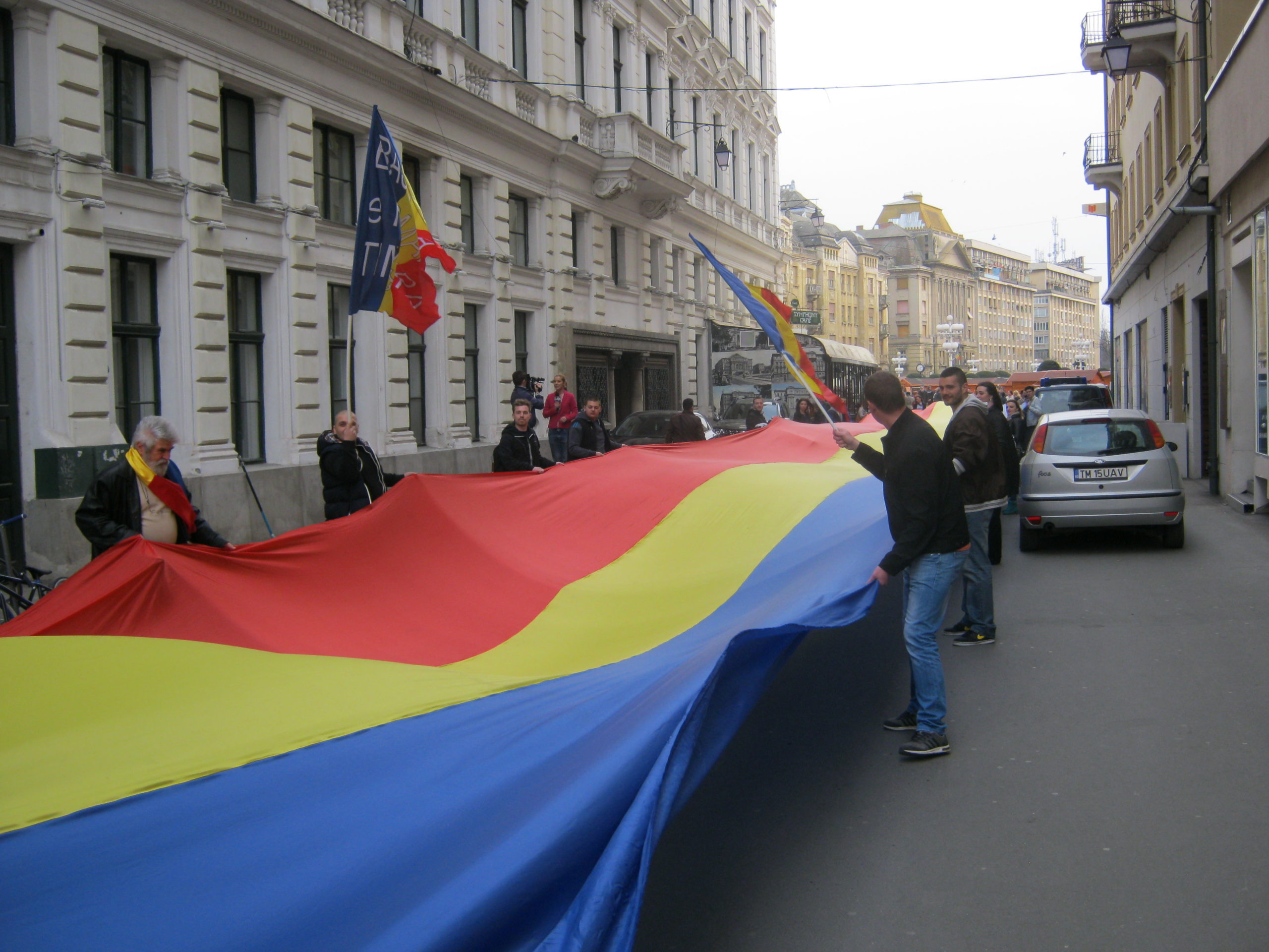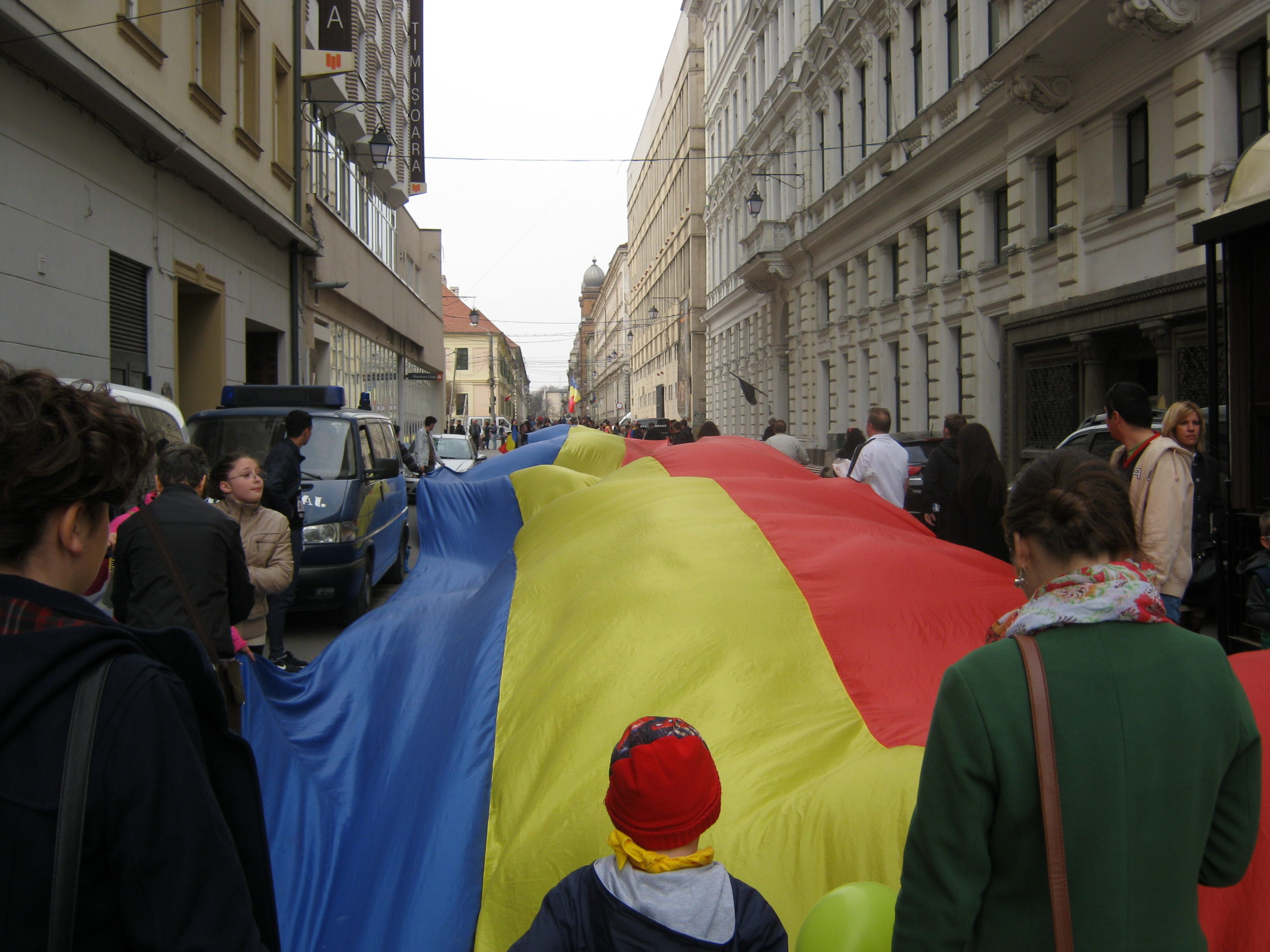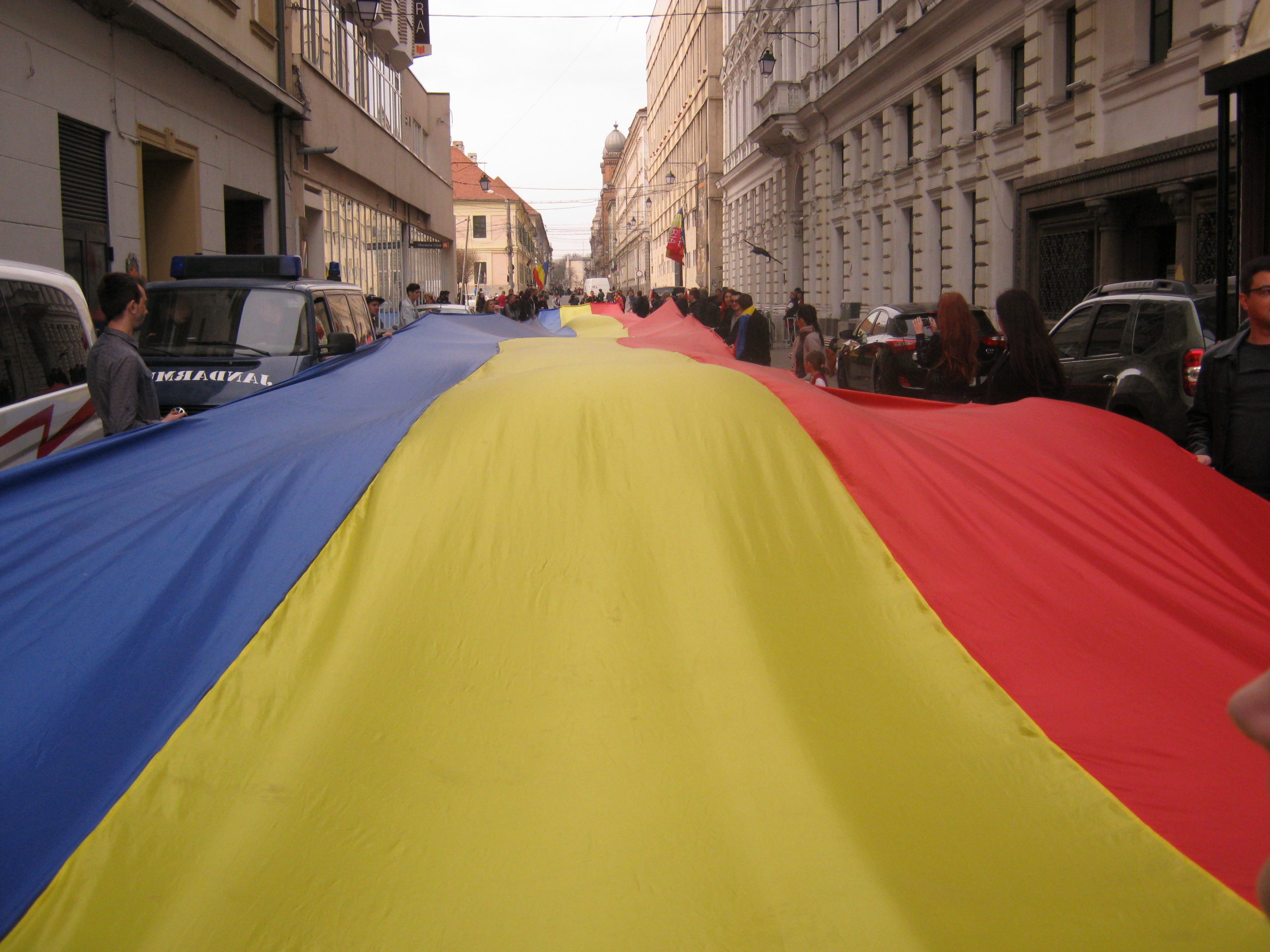 Un tricolor uriaș de 100 de metri a fost desfășurat, vineri, de studenții basarabeni pe pietonala Mărășești din Timișoara. Organizația Studenților Basarabeni din Timișoara și Acțiunea 2012 au marcat în acest fel 97 de ani de la Unirea Basarabiei cu România.