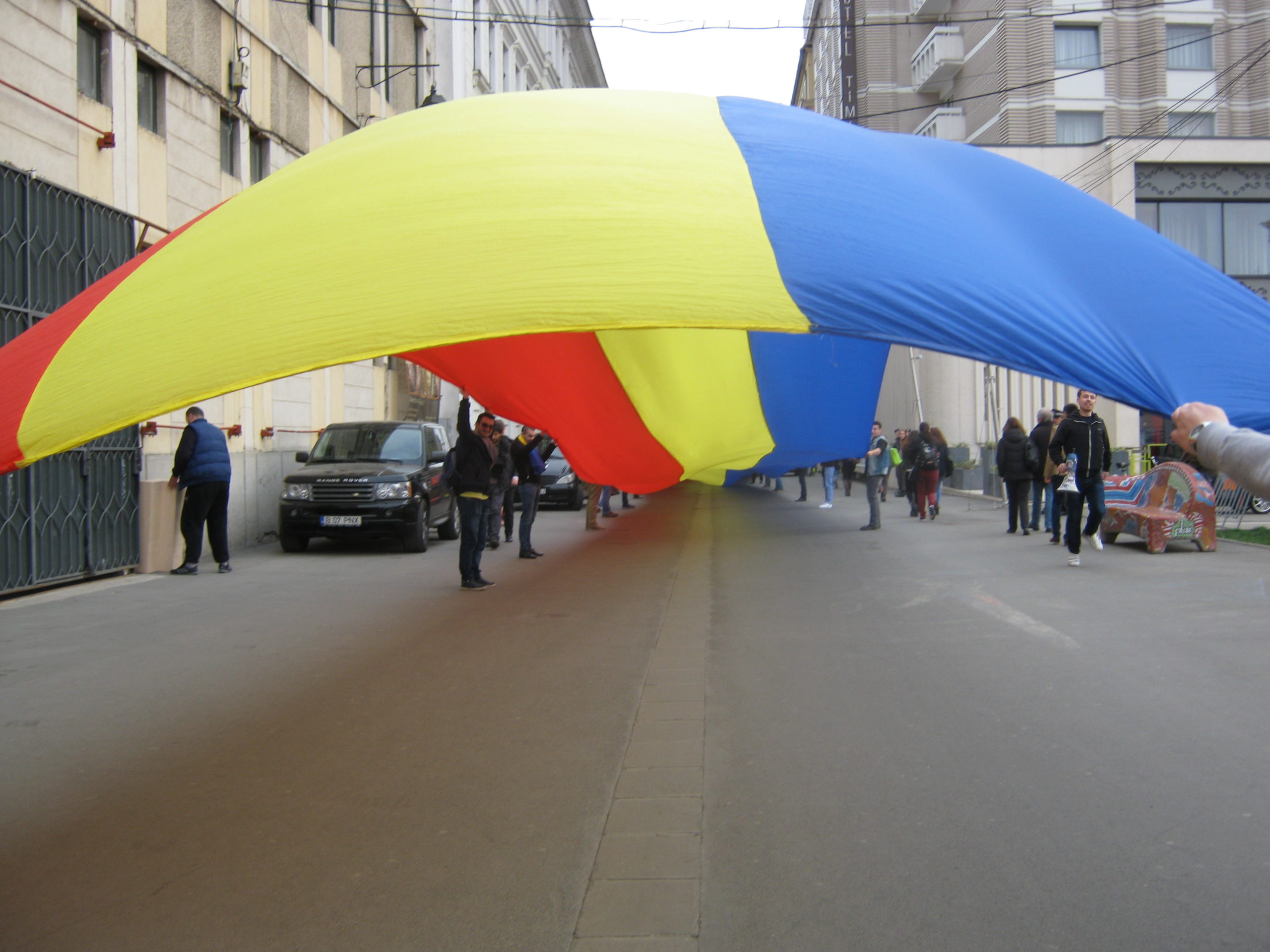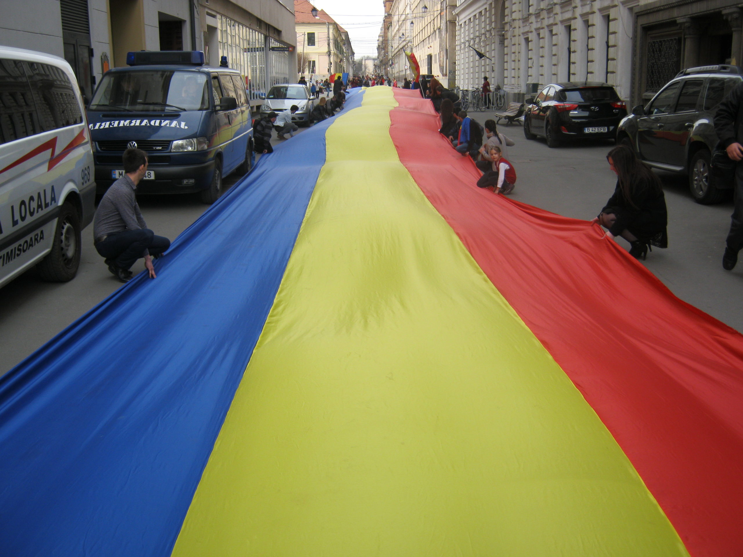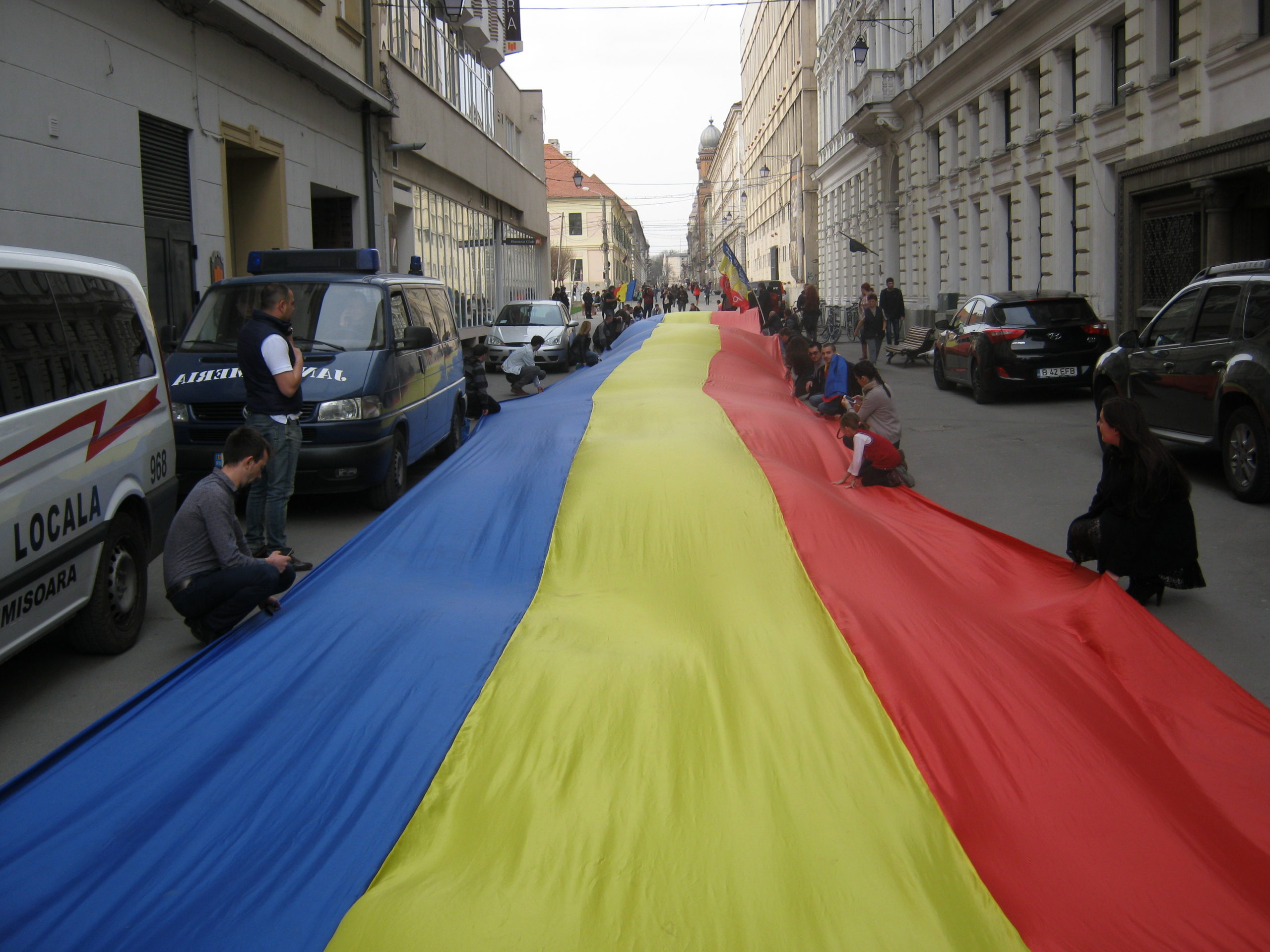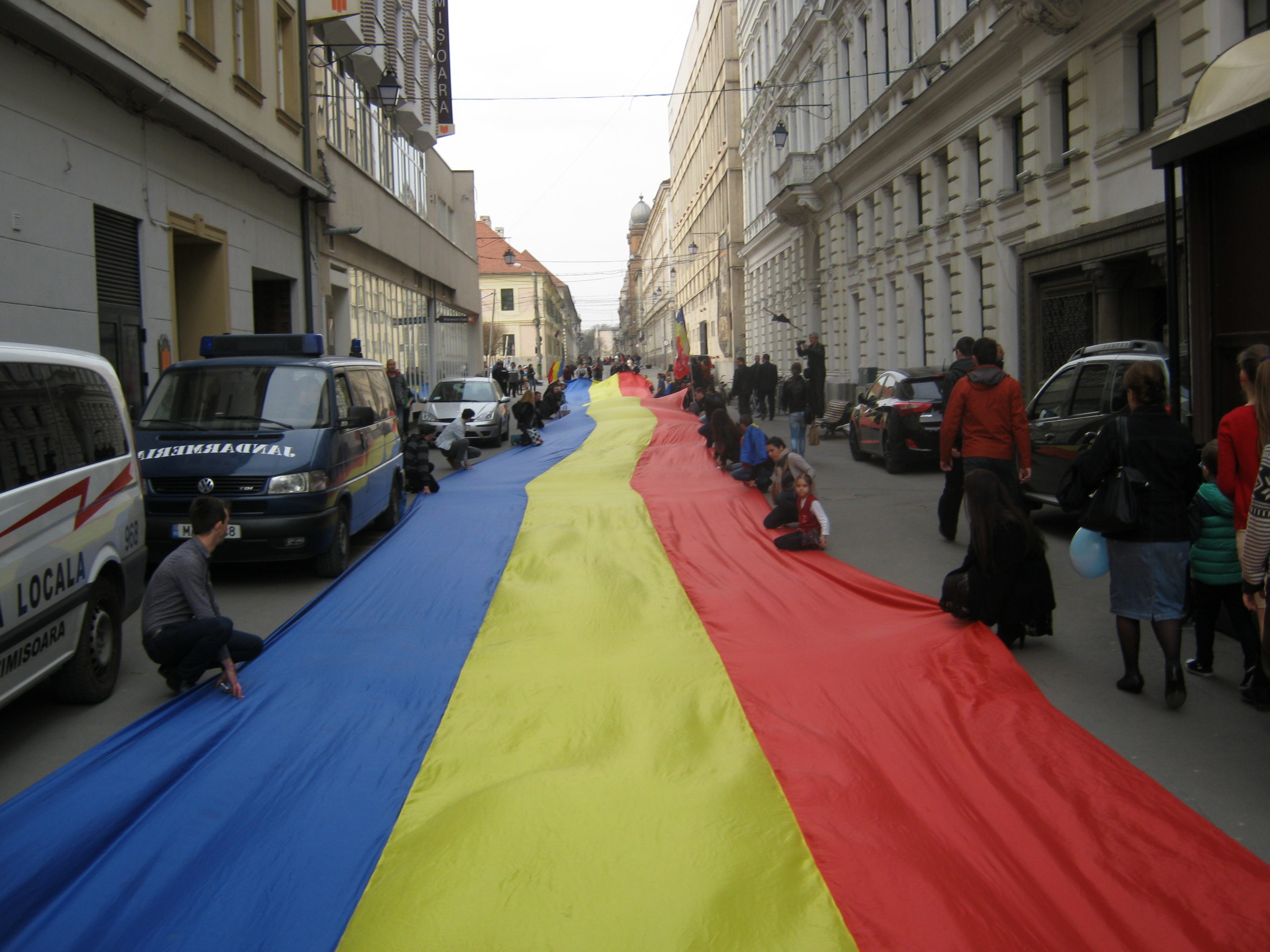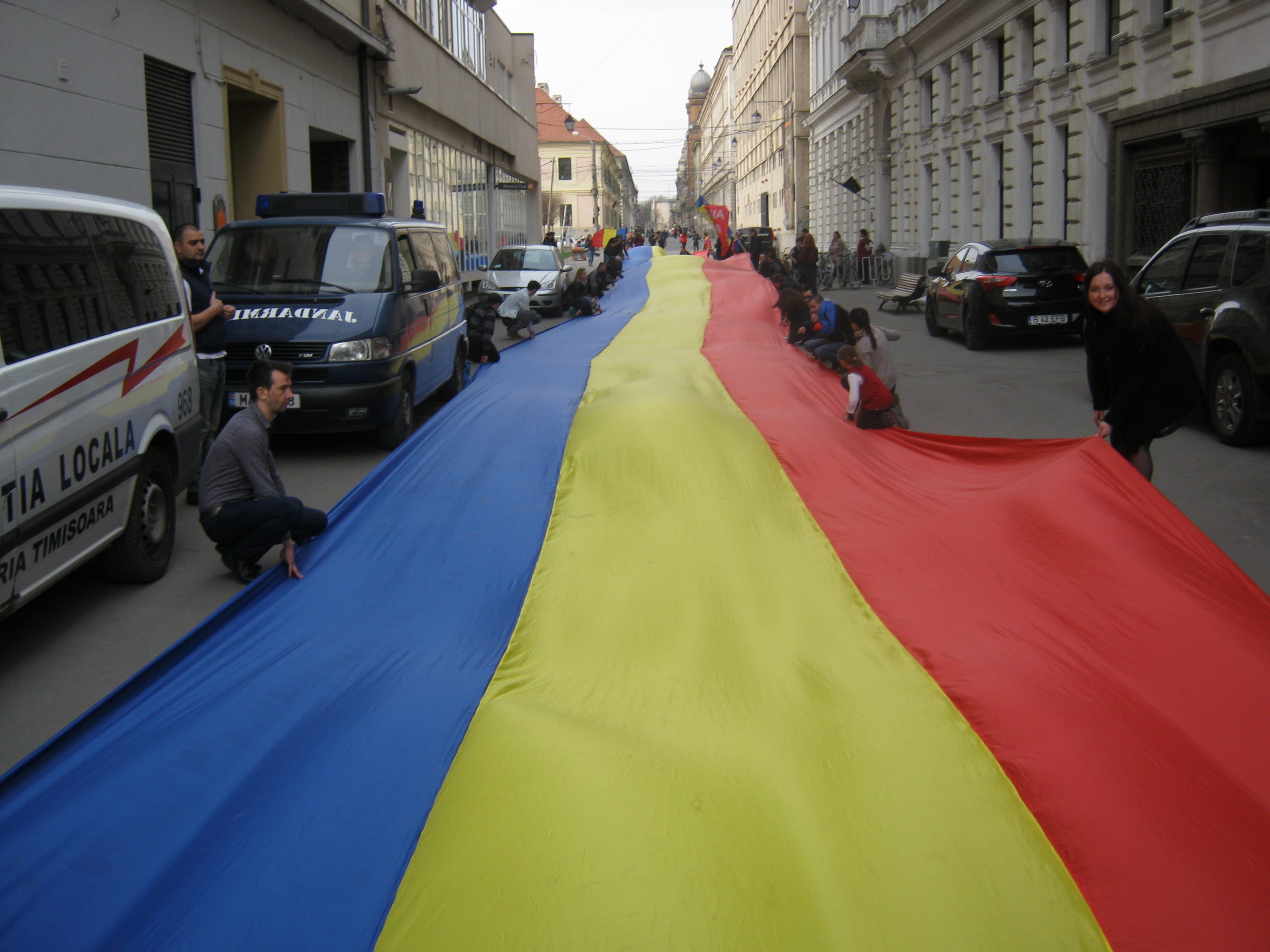 Tricolorul a fost cusut la Chișinău iar tinerii au reușit să transforme, pentru câteva minute pietonala Mărășești într-o stradă tricoloră. La acțiune au participat aproximativ 100 persoane, studenți basarabeni dar și timișoreni care au ajutat la întinderea drapelului  și s-au fotografiat cu tricolorul gigant.