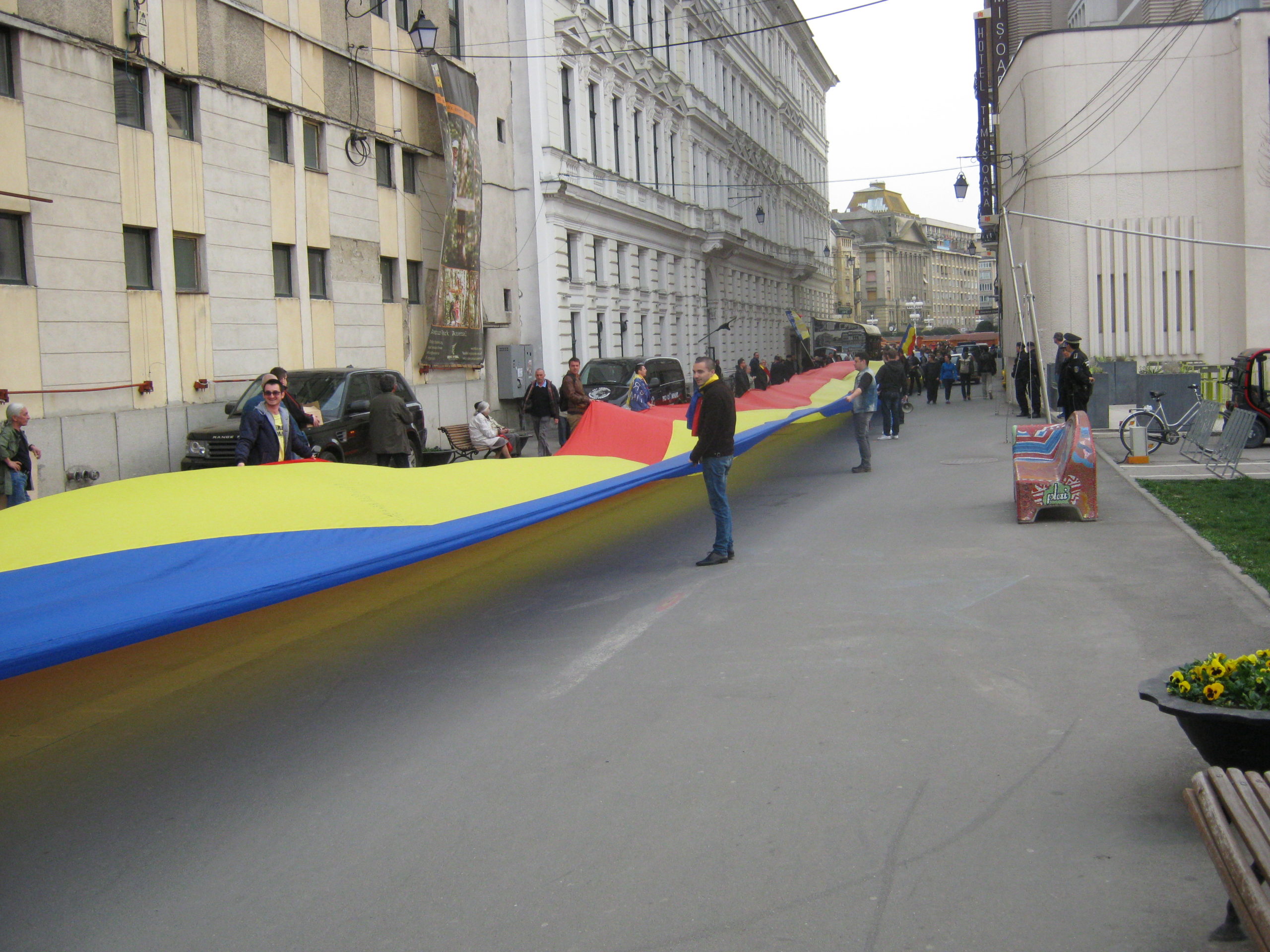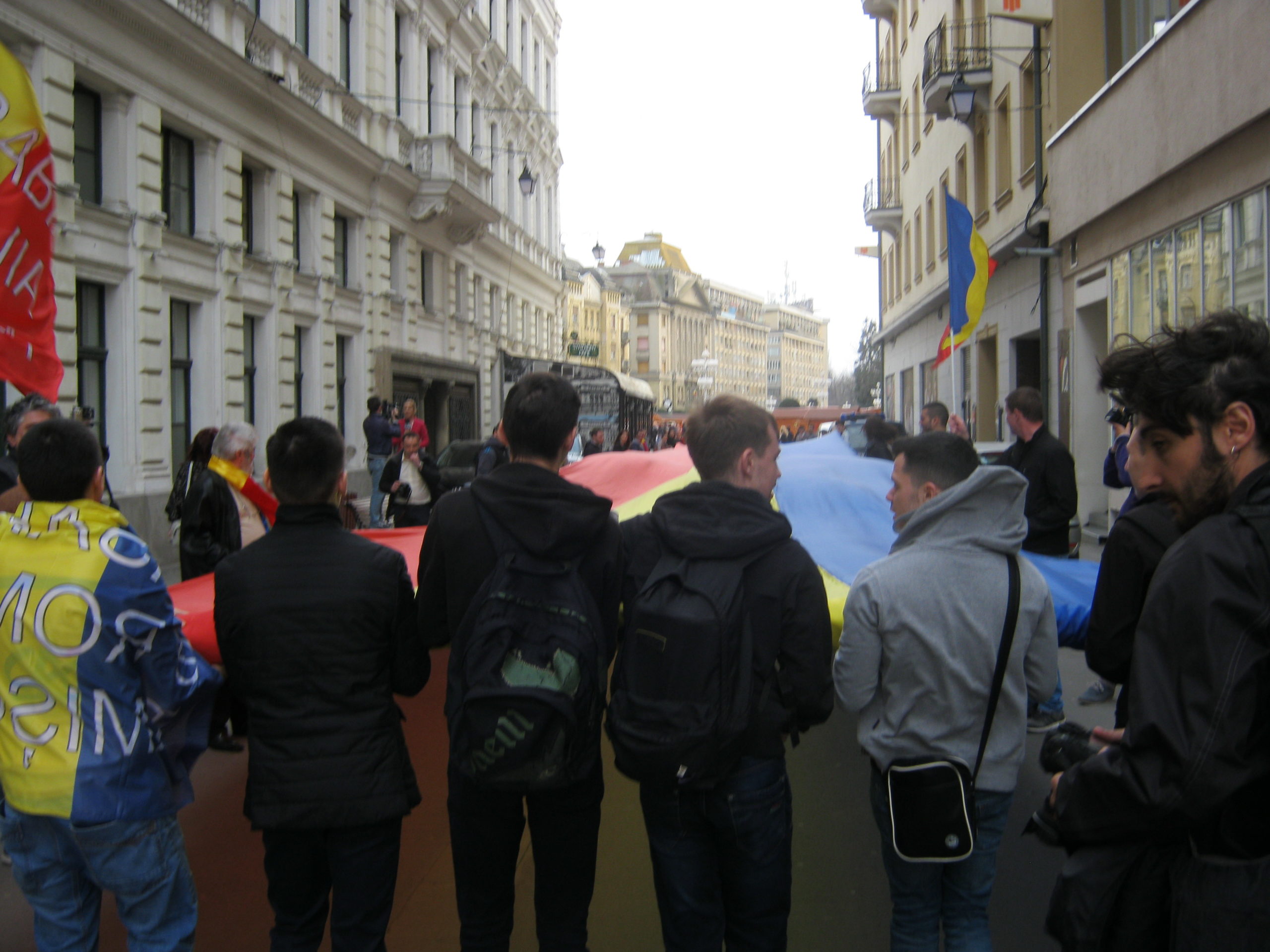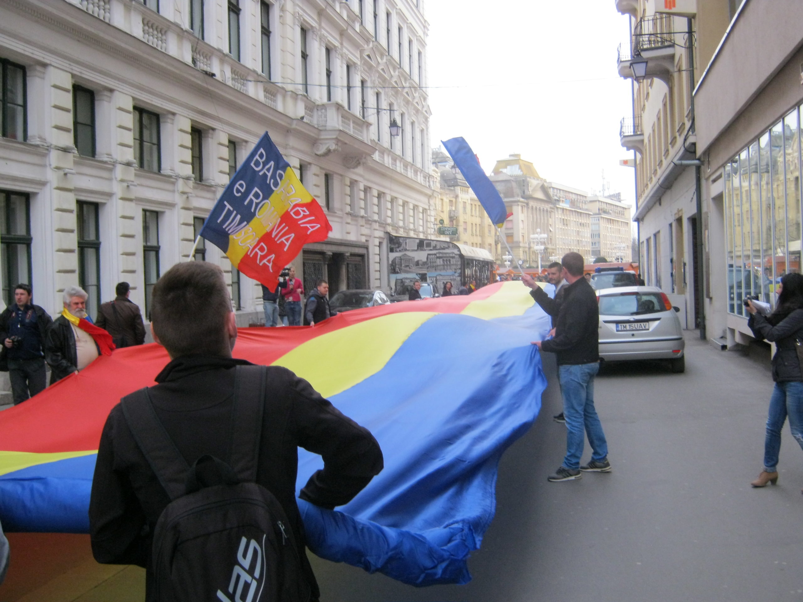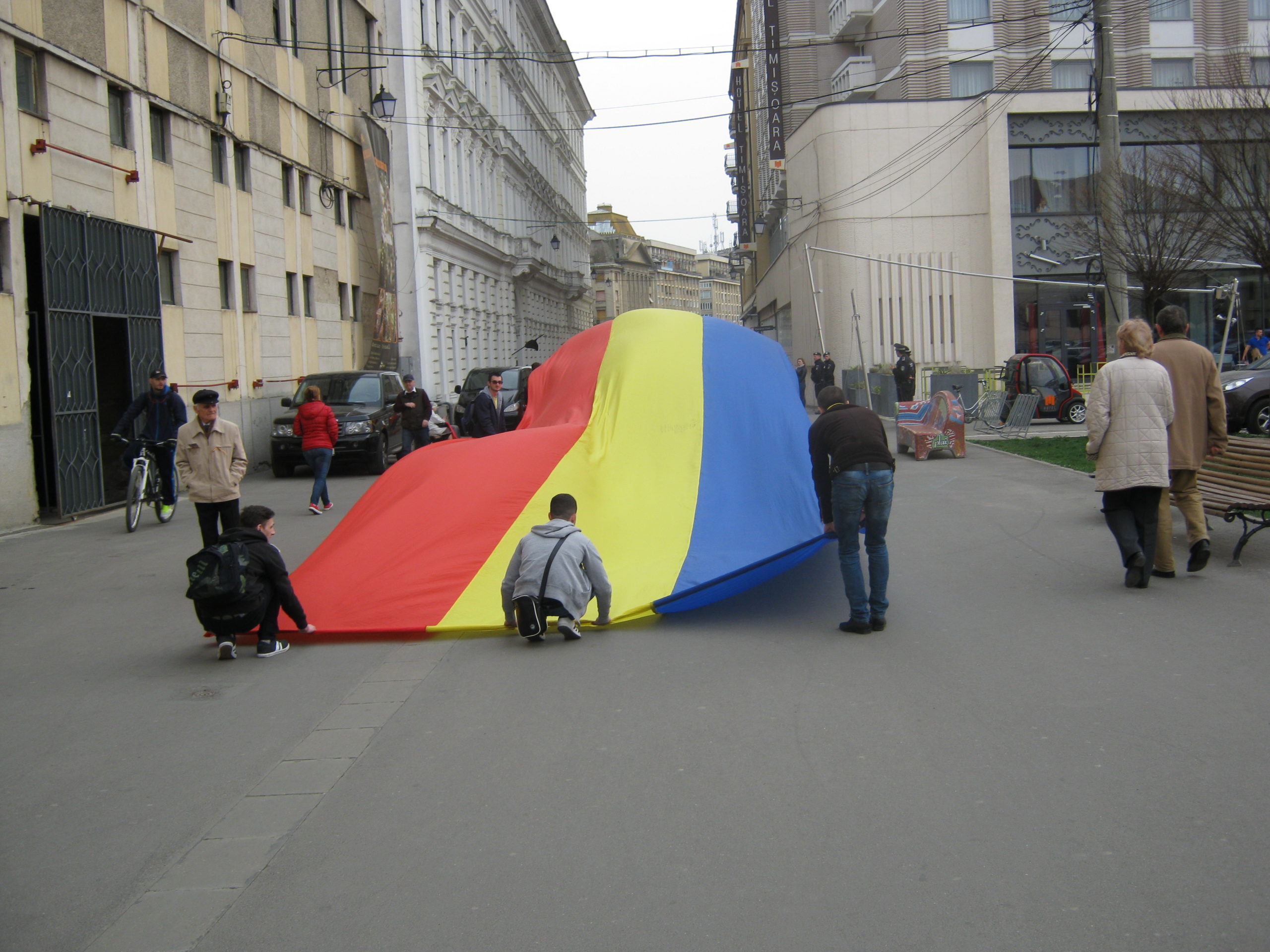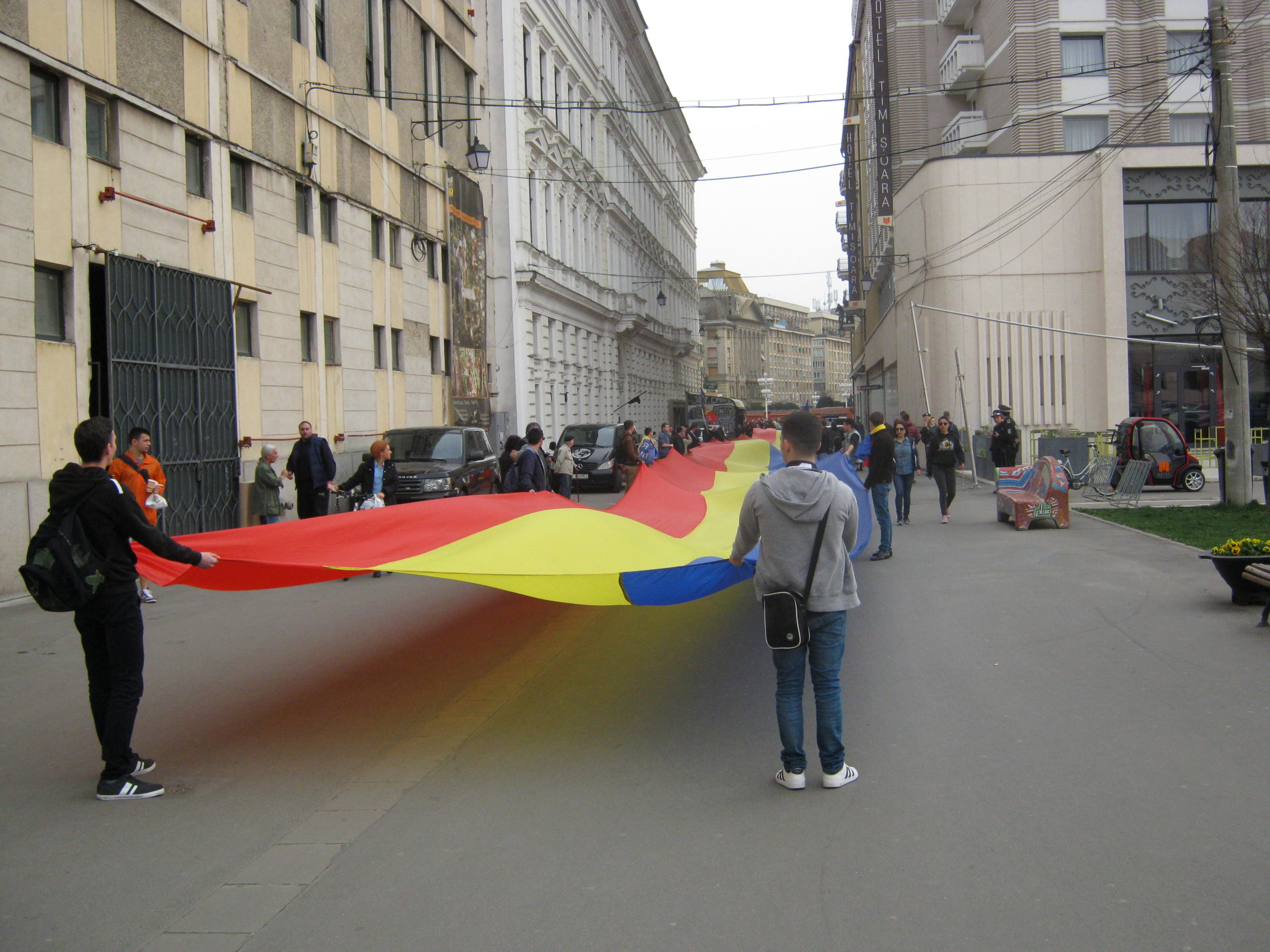 Tricolorul a fost cusut la Chișinău iar tinerii au reușit să transforme, pentru câteva minute pietonala Mărășești într-o stradă tricoloră. La acțiune au participat aproximativ 100 persoane, studenți basarabeni dar și timișoreni care au ajutat la întinderea drapelului  și s-au fotografiat cu tricolorul gigant.