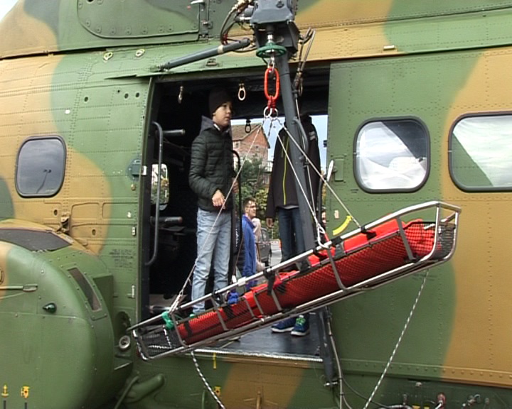 Un elicopter IAR 330 H din dotarea Forțelor Armate Române a aterizat sub privirile a zeci de spectatori care s-au strâns încă de la primele ore ale diminetii pentru a aștepta demonstratiile militarilor.