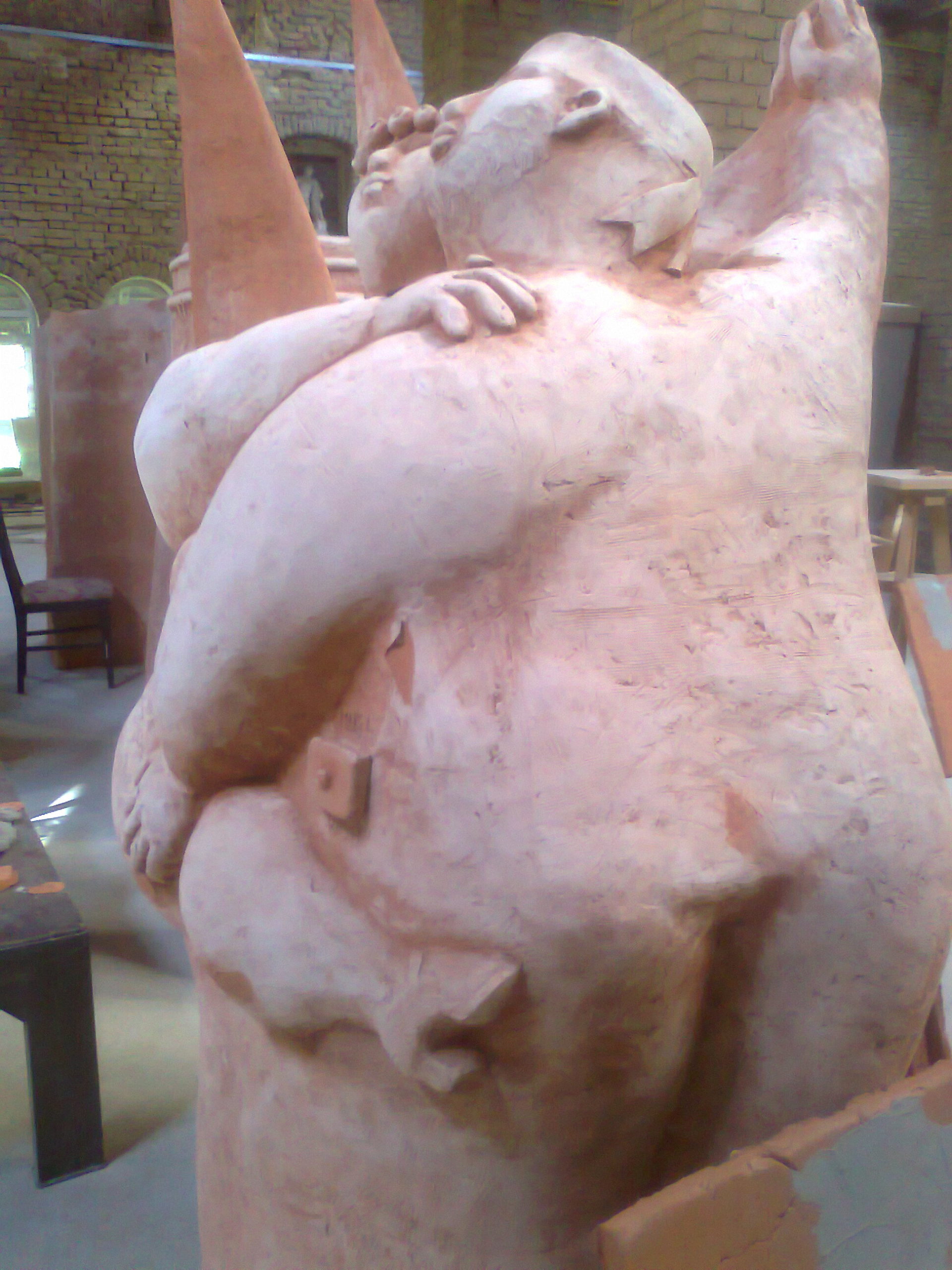 Nu este o abordare obișnuită de sculptare. De regulă, sculptorii folosesc o matriță, de lemn sau metal. Pui lutul pe matriță, modelezi, scoți matrița, iar sculptura este gata. Metoda folosită de noi este cea în care lutul se autosusține.