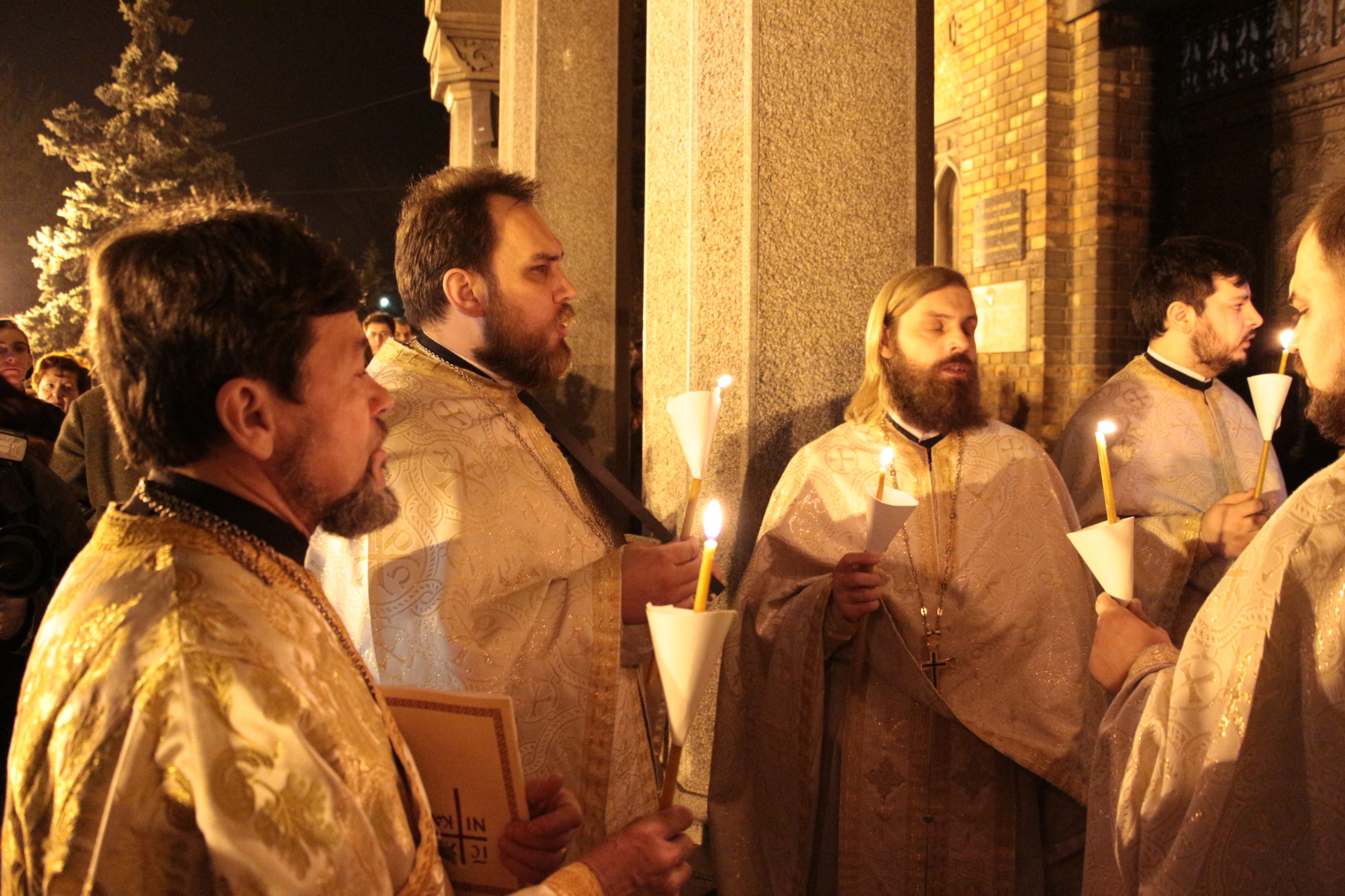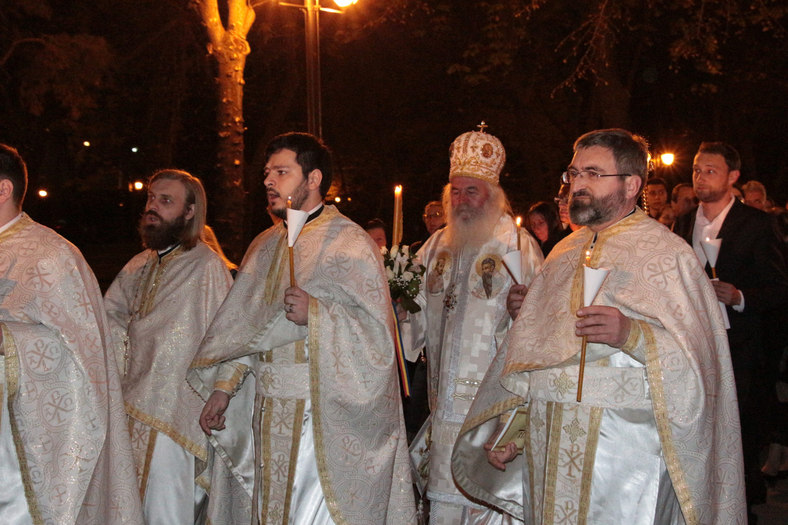 La miezul nopții, Înalt Prea Sfinția Sa Ioan, Mitropolitul Banatului a îndemnat credincioșii să ia lumină: “Veniți să luați Lumină!”. Apoi soborul de preoți a înconjurat centrul Timişoarei pentru ca la întoarcere la Catedrala Mitropolitană să cânte „Hristos a Înviat din morţi! Cu moartea pe moarte calcând”.