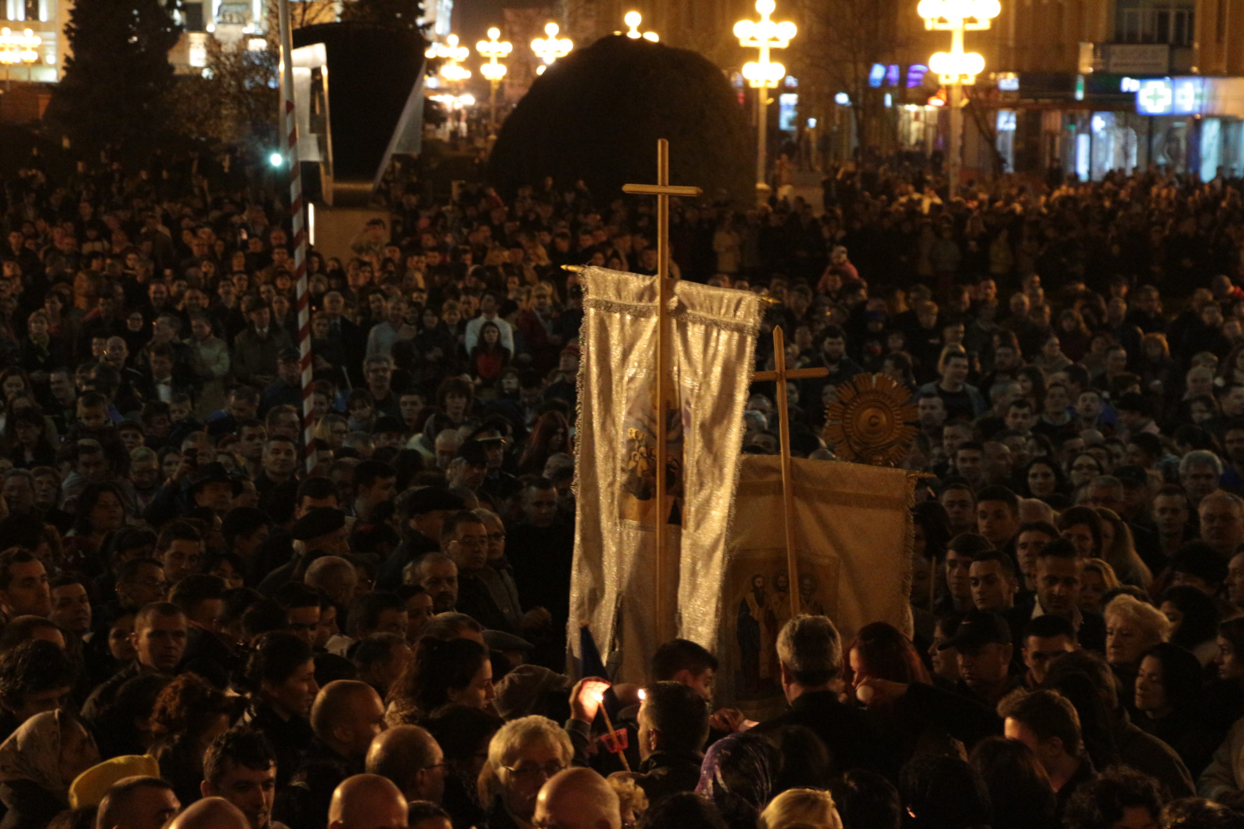Mii de timișoreni au venit să ia Lumină de la Catedrala Mitropolitană, unde slujba de Înviere a fost oficiată pentru prima dată de Înalt Prea Sfinția Sa Ioan, Mitropolitul Banatului. Centrul Timișoarei a devenit neîncăpător aproape de miezul nopții, oamenii venind împreună cu familiile pentru a asista la slujbă și pentru a primi Lumina Învierii.