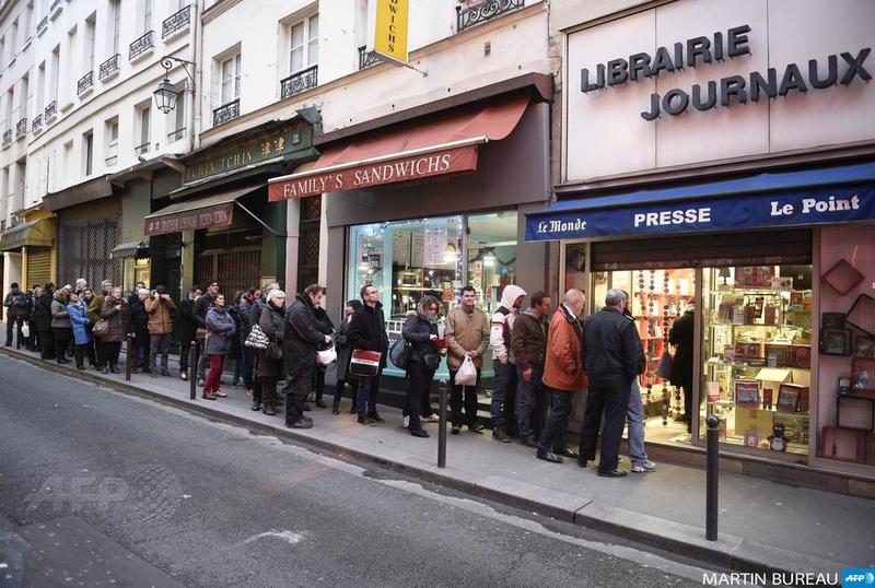 La ora locală 8:00, numeroase chioșcuri din Franța nu mai aveau primul număr ‘Charlie Hebdo’. Oamenii s-au așezat la cozi încă de la primele ore ale dimineții, încă înainte de deschiderea chioșcurilor de ziare. Posturi de radio franceze difuzau declaratii ale unor persoane care au facut o noapte alba pentru a fi sigure ca obtin acest numar istoric. Mai multi clienti si-au rezervat de marti cate un exemplar la punctul de unde cumparar ziare.