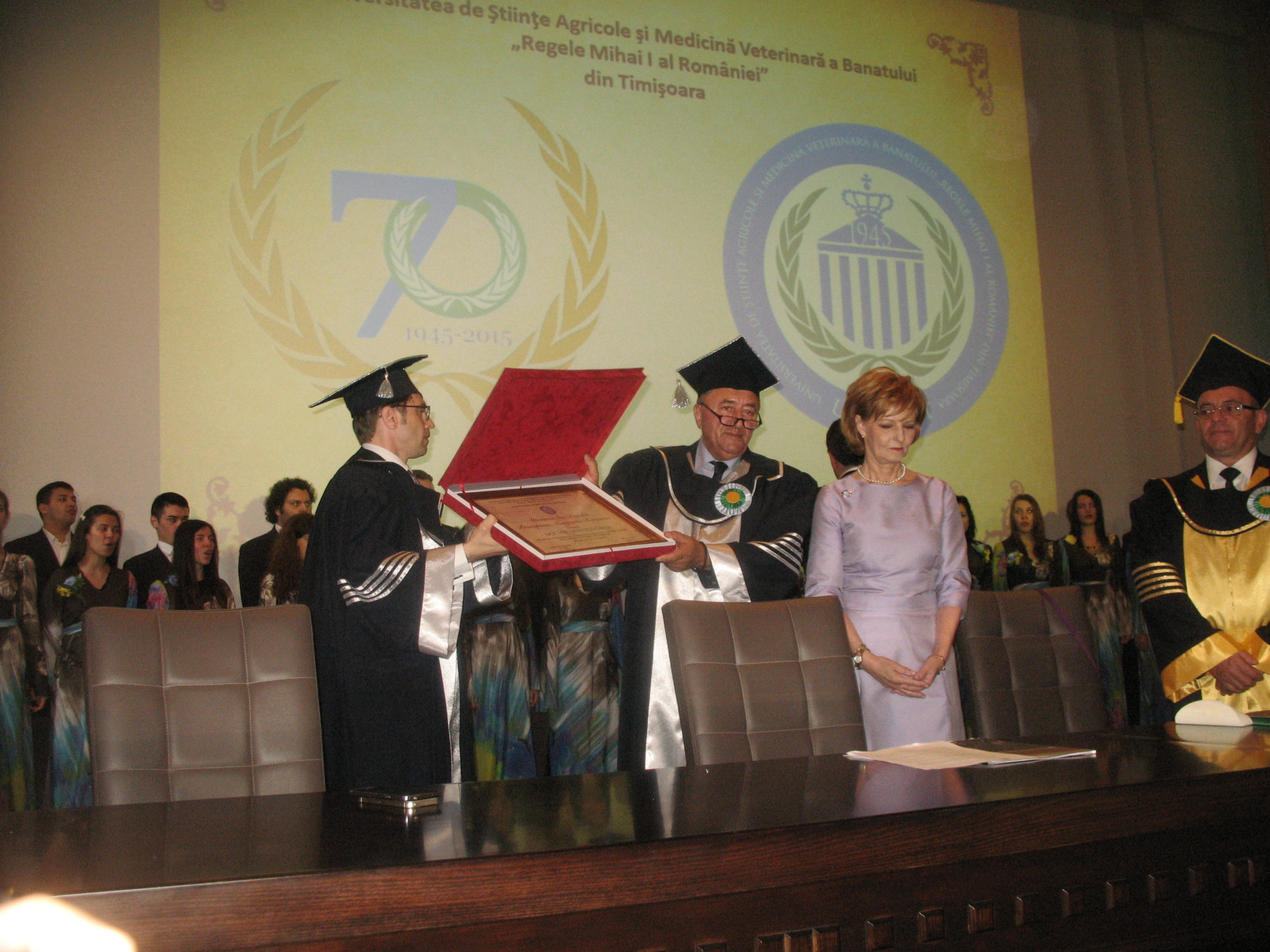 Universitatea de Științe Agricole și Medicină Veterinară a Banatului ‘Regele Mihai I’ din Timișoara i-a decernat, vineri, titlul de Doctor Honoris Causa Alteței Sale Regale Principesa Margareta a României. În acest fel, instituția academică a marcat astfel cei 70 de ani de când a luat ființă universitatea, prin Decret Regal semnat de Majestatea Sa Regele Mihai I al României.