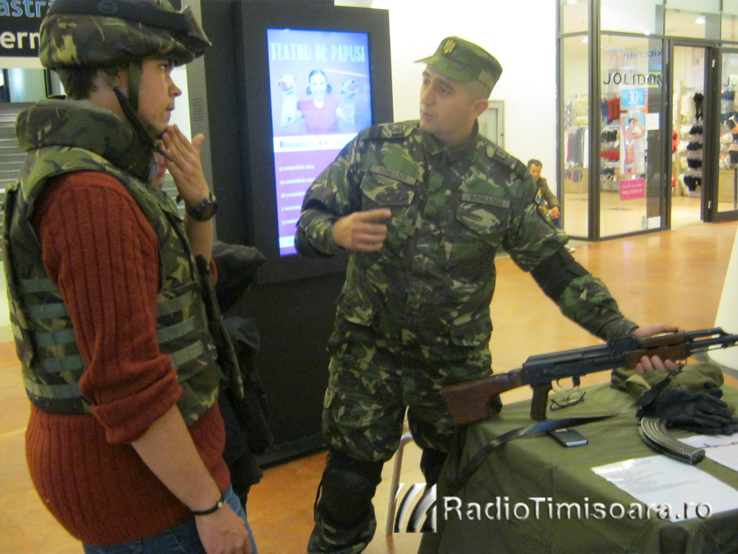 Timp de două zile, la Iulius Mall, timișorenii pot vedea dotarea militarilor, armamentul, echipamentul şi pot sta de vorbă cu cei care au ales cariera de militar. Joi, în prima zi a evenimentului, timișorenii s-au arătat interesați de întreaga  manifestare. Copiii au fost foarte entuziasmaţi. Au putut vedea ceea ce, până acum, vedeau doar în filme sau în jocurile de pe calculator.