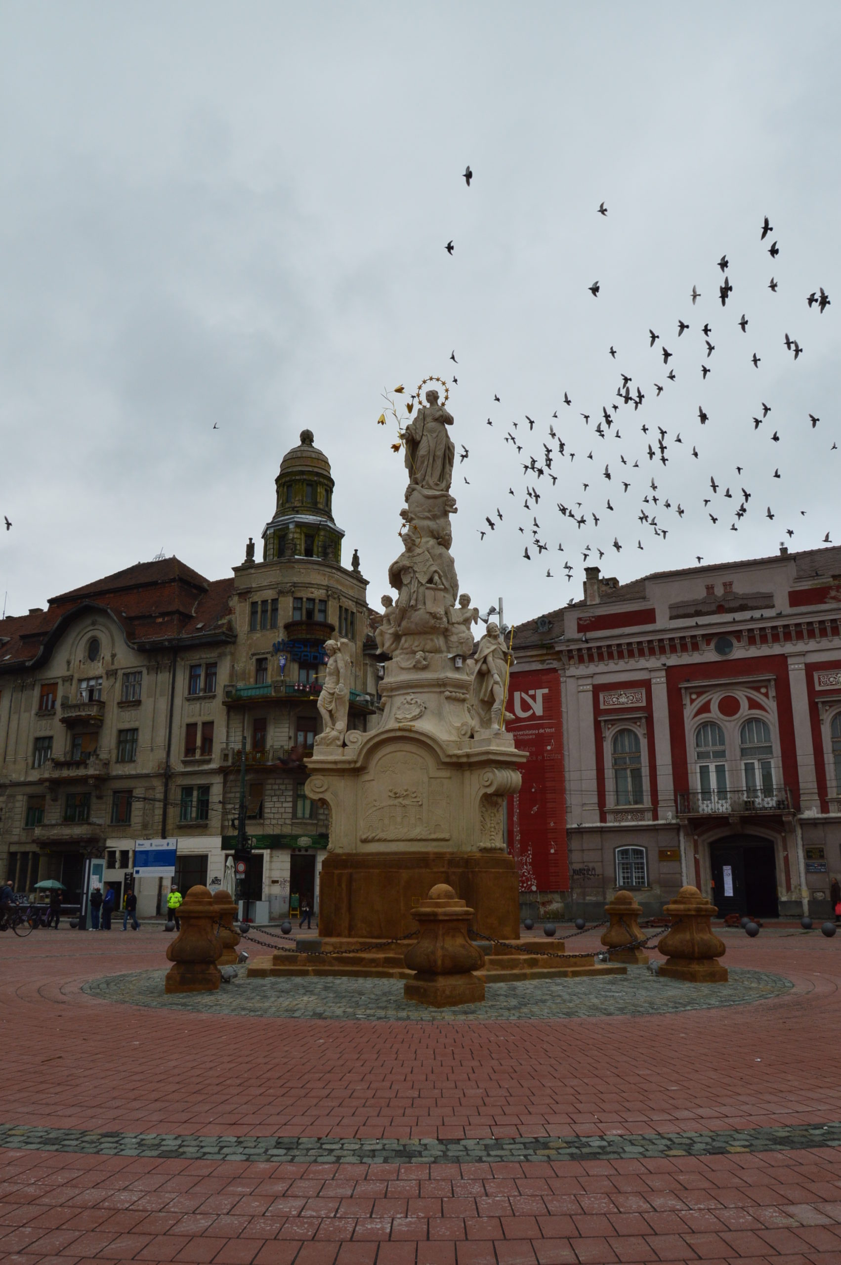 Primăria Timișoara încearcă acum să ferească statuia de porumbeii care riscă să murdărească din nou monumentul.