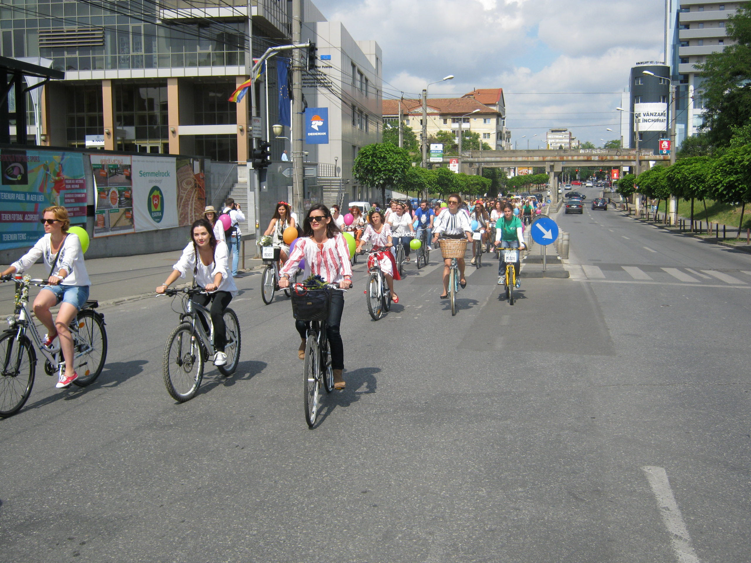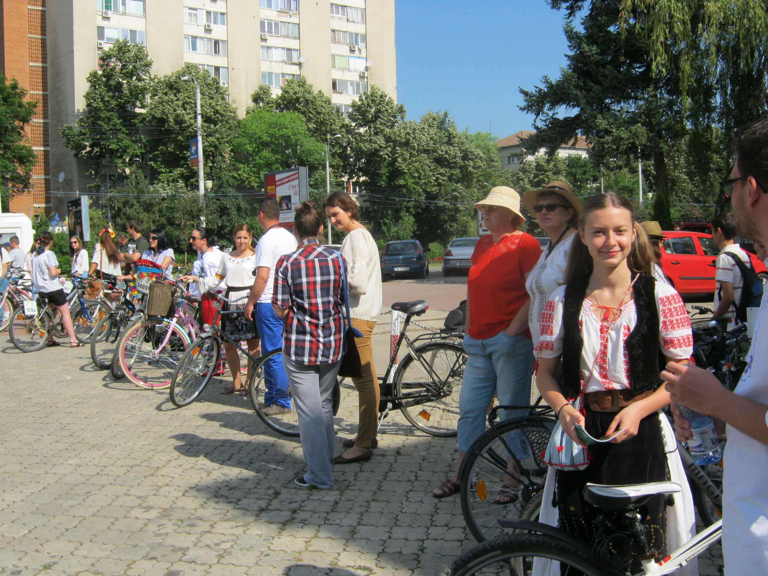 Peste 500 de timişoreni, doamne, domnişoare, tineri şi domni imbrăcaţi în ii ori în costume populare au pedalat, duminică, cu bicicletele prin Timişoara spre Muzeul Satului Bănăţean de la Pădurea Verde. Aici, au fost organizate expoziţii de fotografii, expoziţii cu vânzare, un atelier de confecţionare a păpuşilor româneşti şi au avut loc o serie de concursuri. Astfel, timişorenii au redescoperit splendoarea, de altă dată, a portului popular românesc.