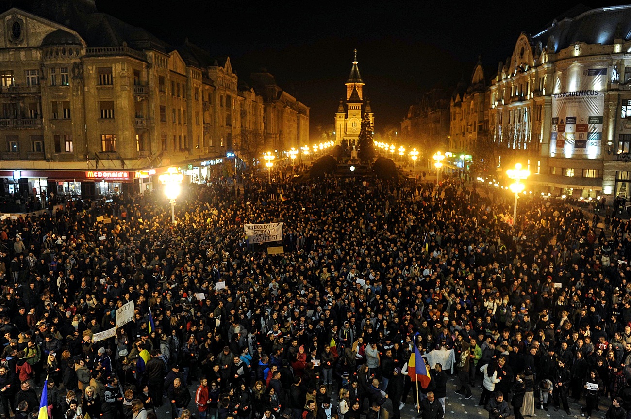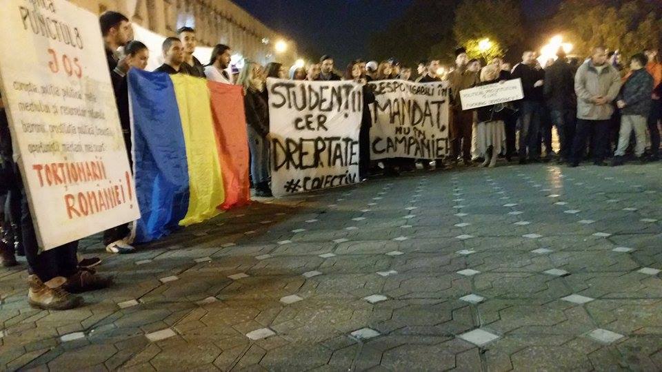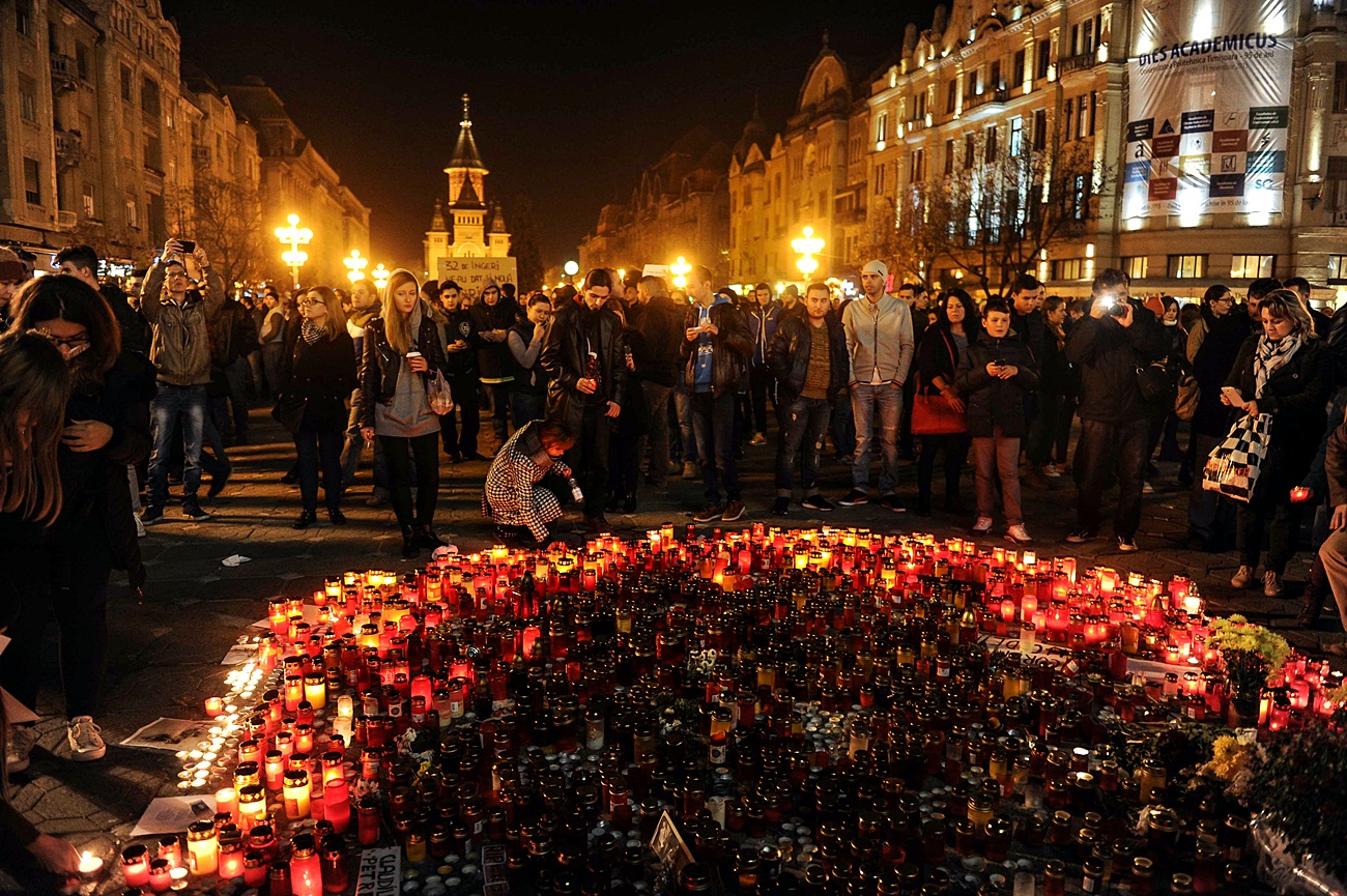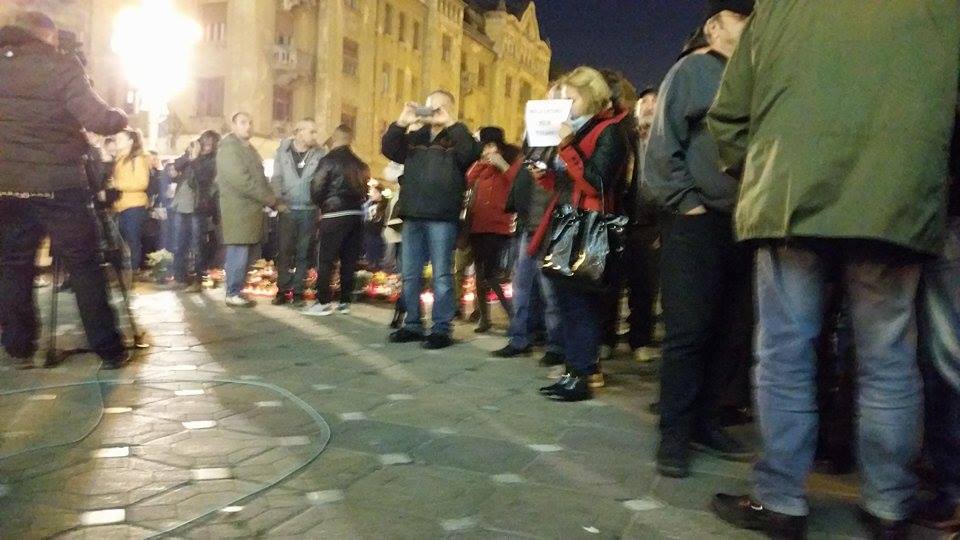 Protestul din Piaţa Victoriei din Timişoara s-a încheiat fără incidente, în jurul orei 21:30. Înainte de a părăsi piaţa, cei prezenţi au păstrat un moment de reculegere pentru victimele incendiului din clubul Colectiv din Bucureşti şi au aprins candele lângă cele aduse de sâmbătă.