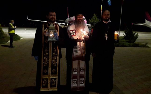 Mitropolitul Banatului, ÎPS Ioan Selejan, a preluat Lumina Sfântă de la Ierusalim, care a fost adusă pe Aeroportul Timişoara.