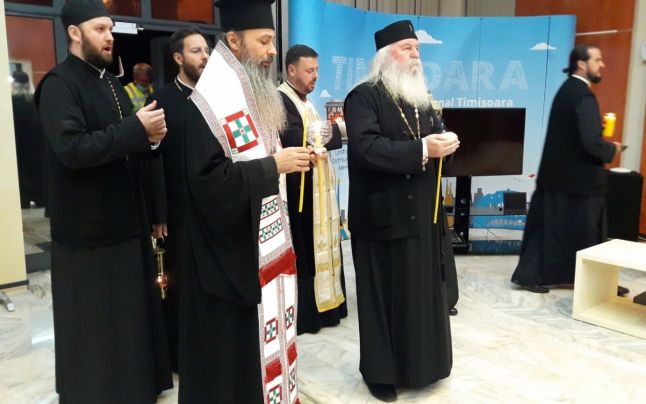Pe Aeroportul Internaţional Timişoara a fost prezent şi mitropolitul Banatului, Ioan Selejan, care a preluat Lumina de la pilotul micului avion.