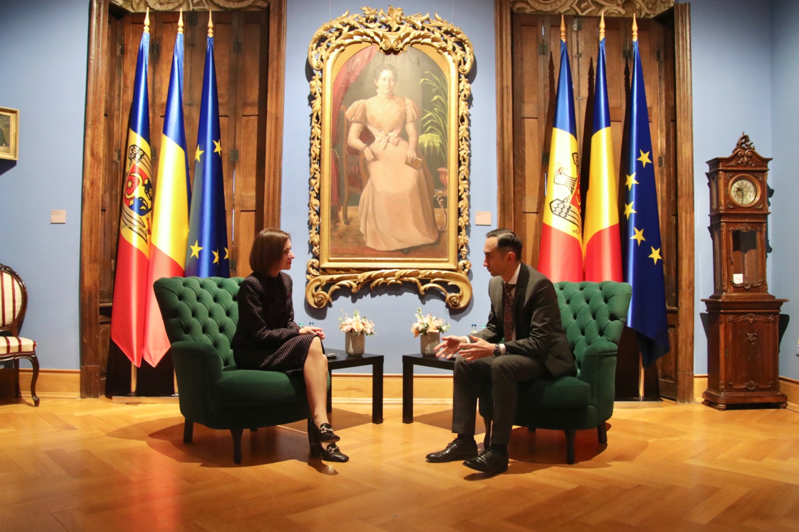 Prezentă la Palatul Baroc, Maia Sandu a avut o discuție cu președintele Consiliului Județean Timiș, Alin Nica. Cei doi au discutat despre promovarea culturii ca bază pentru o societate sănătoasă și performantă, precum și despre parcursul european al statului moldovean.
