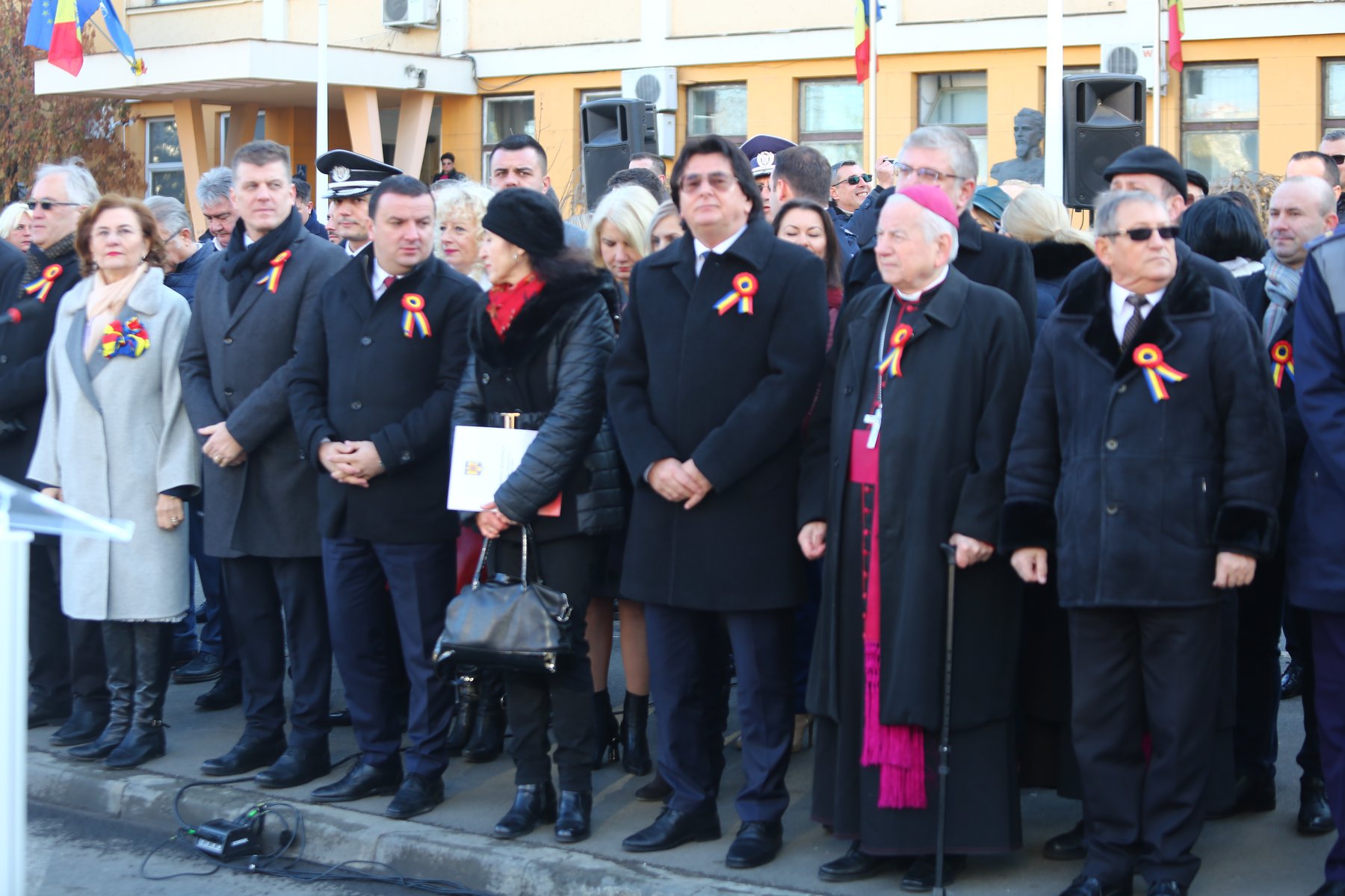 Oamenii au luat parte la ceremoniile susţinute în faţa Inspectoratului Judeţean de Poliţie, unde au sosit şi reprezentanţi ai autorităţilor locale şi judeţene.