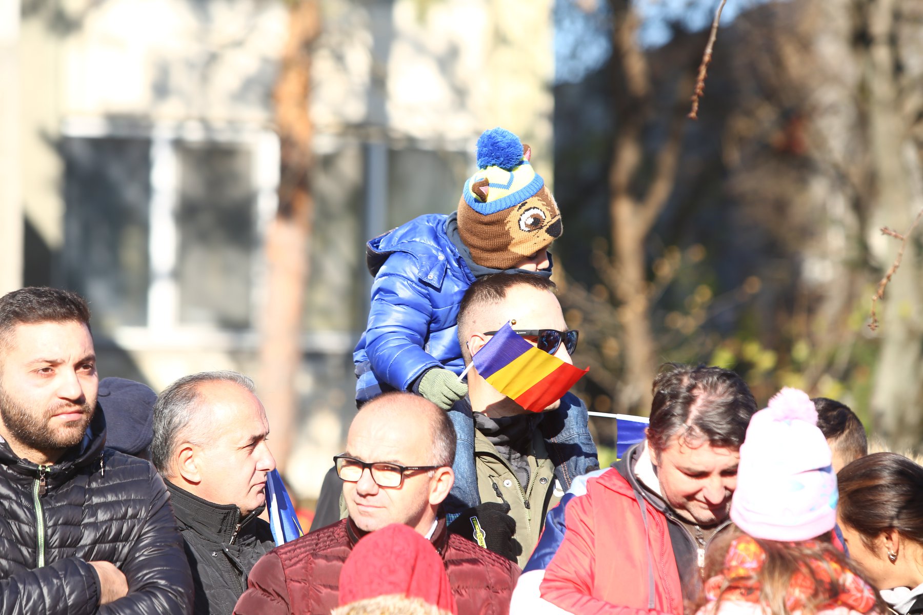 Printre cei mai înflăcăraţi admiratori ai militarilor au fost copiii, care au venit pregătiţi cu tricolorul, pancarte şi haine groase.