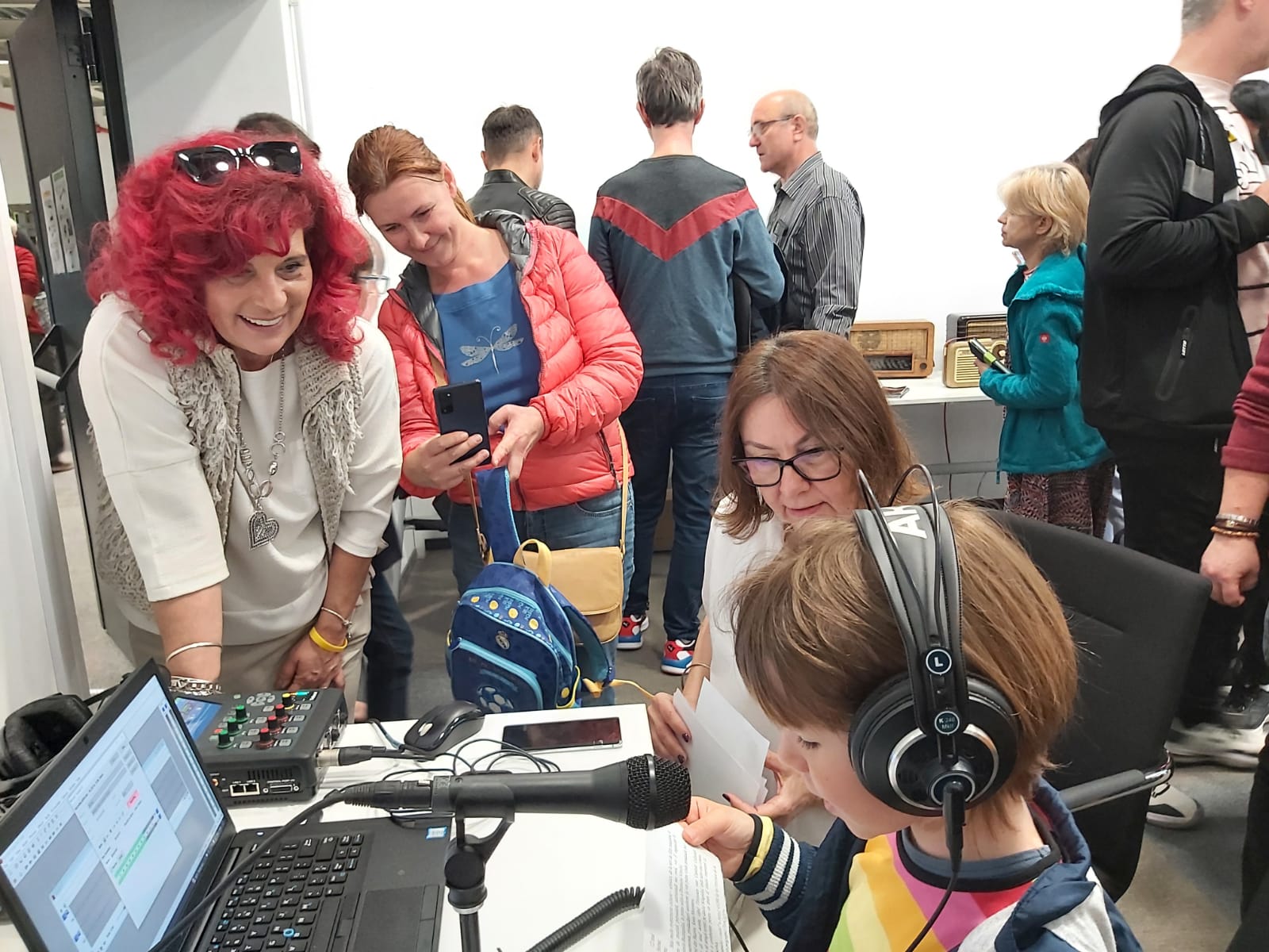 Mini-expoziția amenajată cu această ocazie și care prezintă istoria evoluției tehnice a radioului a stârnit interesul vizitatorilor. Cei mai mici dintre ei s-au așezat în mini-studioul de radio și au intrat în rolul unui prezentator de știri.