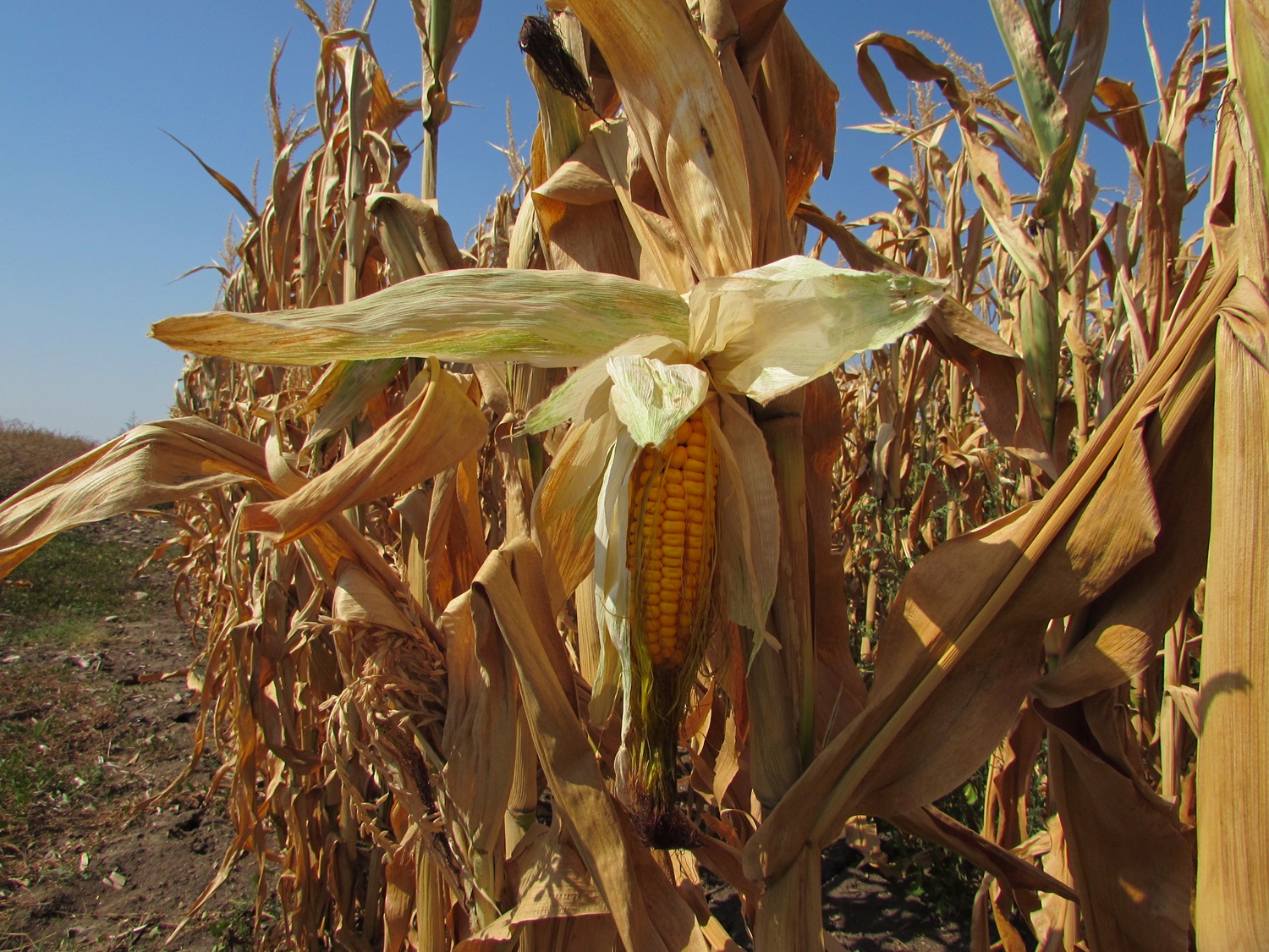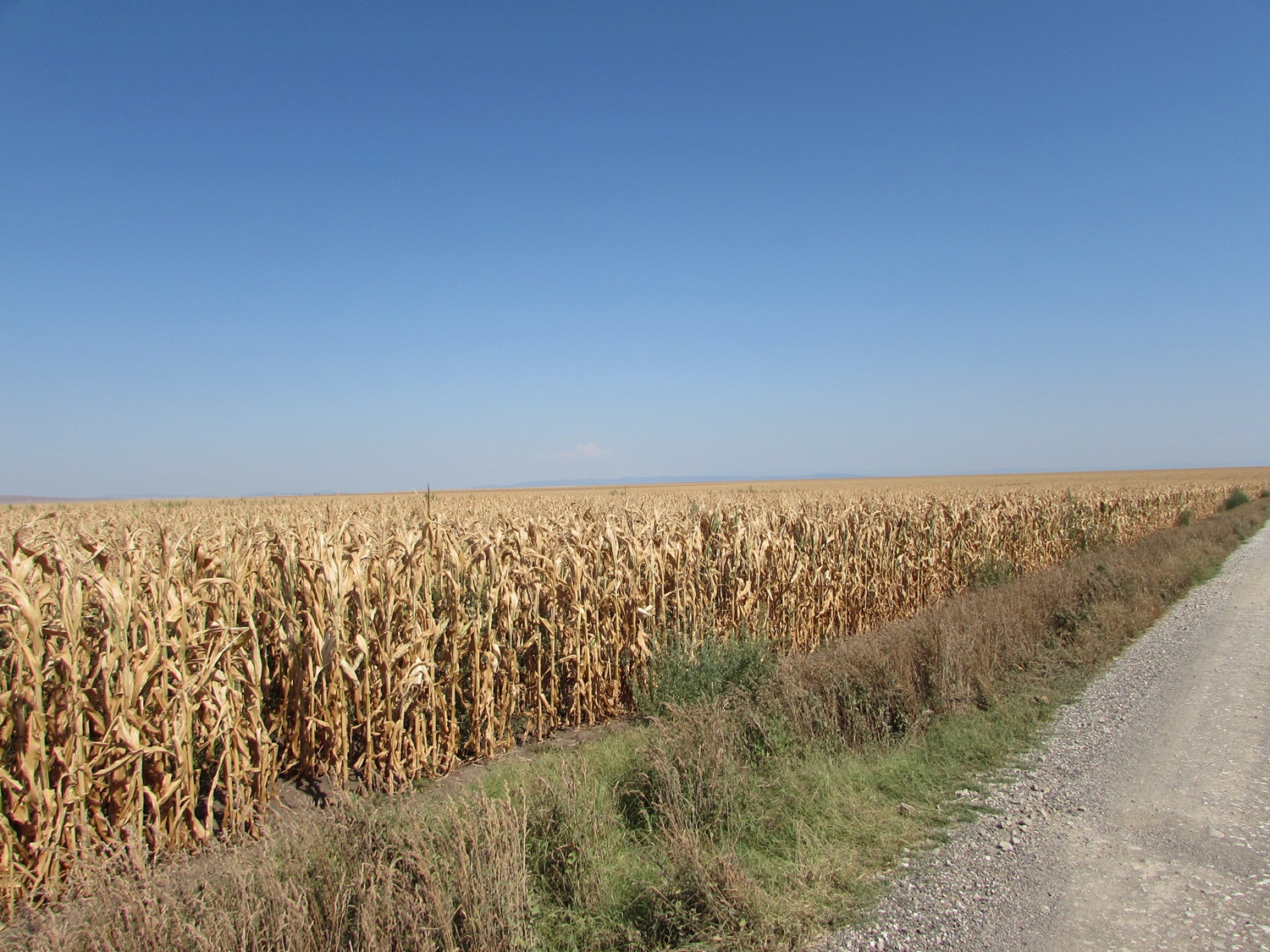 Între Breștea și Percosovo, un lan de porumb are culoarea potrivită pentru luna octombrie. Seceta a crăpat pământul de poți să bagi palma fără probleme. Iar știuleții de porumb, niște „mișei”, cum numeau cei bătrâni știuleții mici, sunt aproape copți. Că seceta este de vină stă dovadă faptul că lângă canalul care mai are încă ceva, ceva apă porumbul este verde.