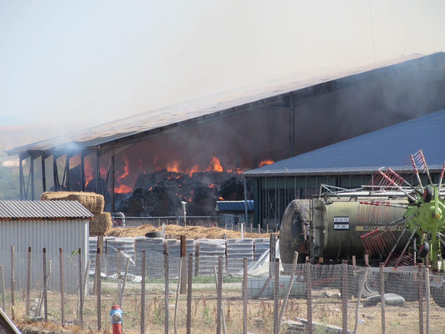 Încă de pe drumul dintre Butin și Gătaia se vede în depărtare fumul de la incendiul de la ferma de lângă Gătaia, provocat de autoaprinderea furajelor. Izbucnit vineri dimineața, târziu după miezul nopții furajele încă mai ardeau cu flacără deschisă.