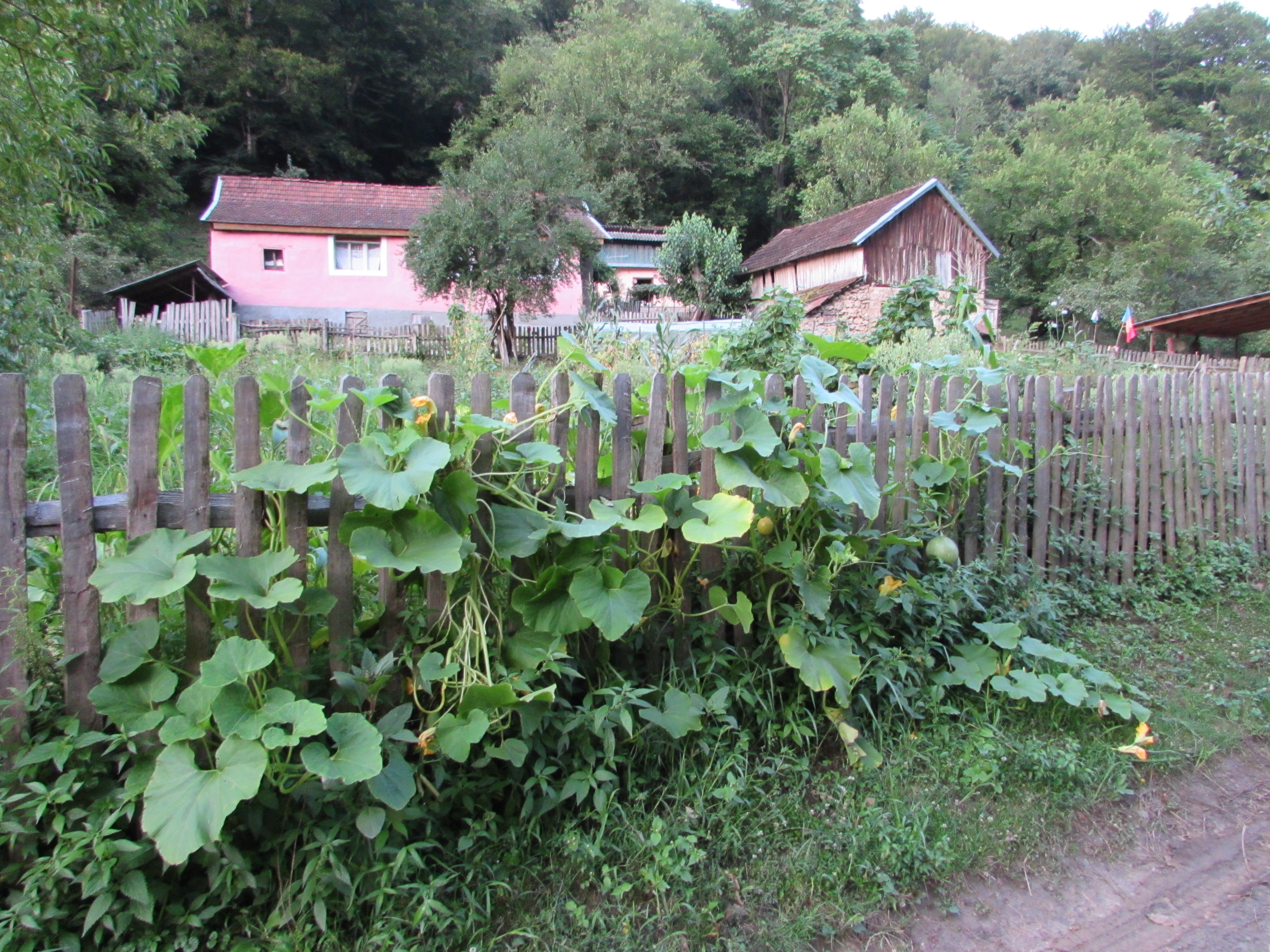 Gard cu dovleci la casa din Cheile Nerei a familiei Crăciun.  Capul familiei, Nicolae,  împlinește în 24 august 79 de ani și îi spunem de pe acum la mulți ani. Cu familia Voin am stat la povești lângă fântână până când s-a ridicat luna-n două coarne deasupra Cheilor Nerei.