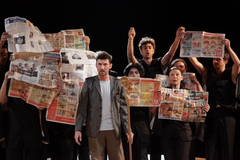 Spectacolul este semnat de regizorul Kokan Mladenović, unul dintre cele mai proeminente nume ale regiei de teatru modern din Serbia. Rolul titular îi aparţine actorului Ion Rizea. Acestuia i se alătură Victor Manovici, Cătălin Ursu, Claudia Ieremia, Bogdan Spiridon, Andrea Tokai, Daniela Bostan, Luminiţa Tulgara, Iuliana Crăescu, Paula Maria Frunzetti, Ana-Maria Pandele, Benone Viziteu, Adrian Jivan, Claudiu Dogaru şi Laurenţiu Pleşa. Echipa de creaţie a spectacolului este completată de scenografele Marija Kalabić (decoruri) şi Irena Radišić (costume), compozitoarea Irena Popović, artistul video Lucian Matei şi light-designerul Lucian Moga.