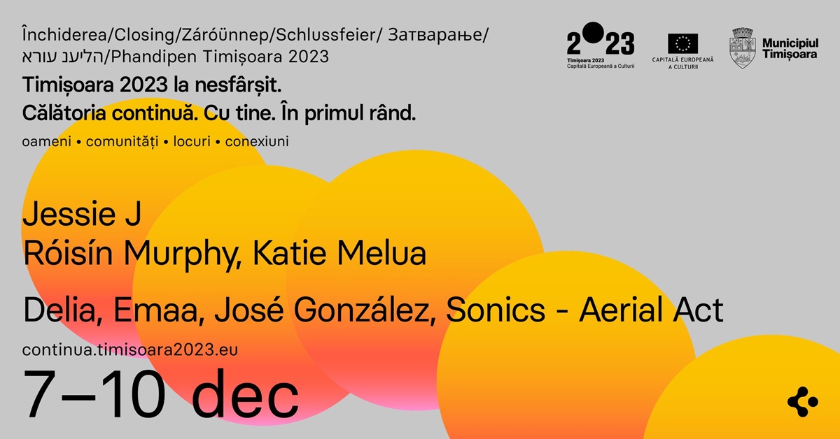 Anul Capitalei Culturale se închide prin concertele organizate în Piața Unirii la care sunt așteptate zeci de mii de persoane. Primarul Dominic Fritz consideră că anul 2023 a atras și mai mult atenția asupra orașului, astfel că programul va fi continuat simbolic sub genericul Timișoara, la nesfârșit.