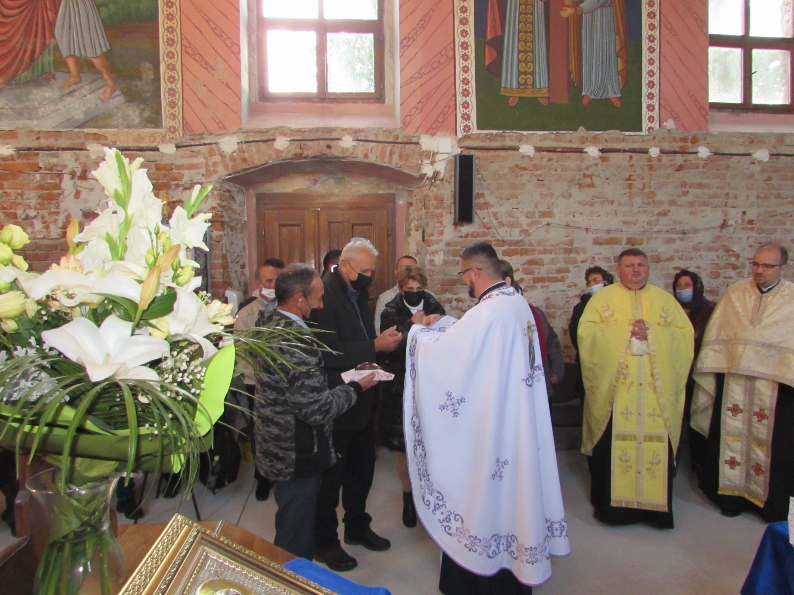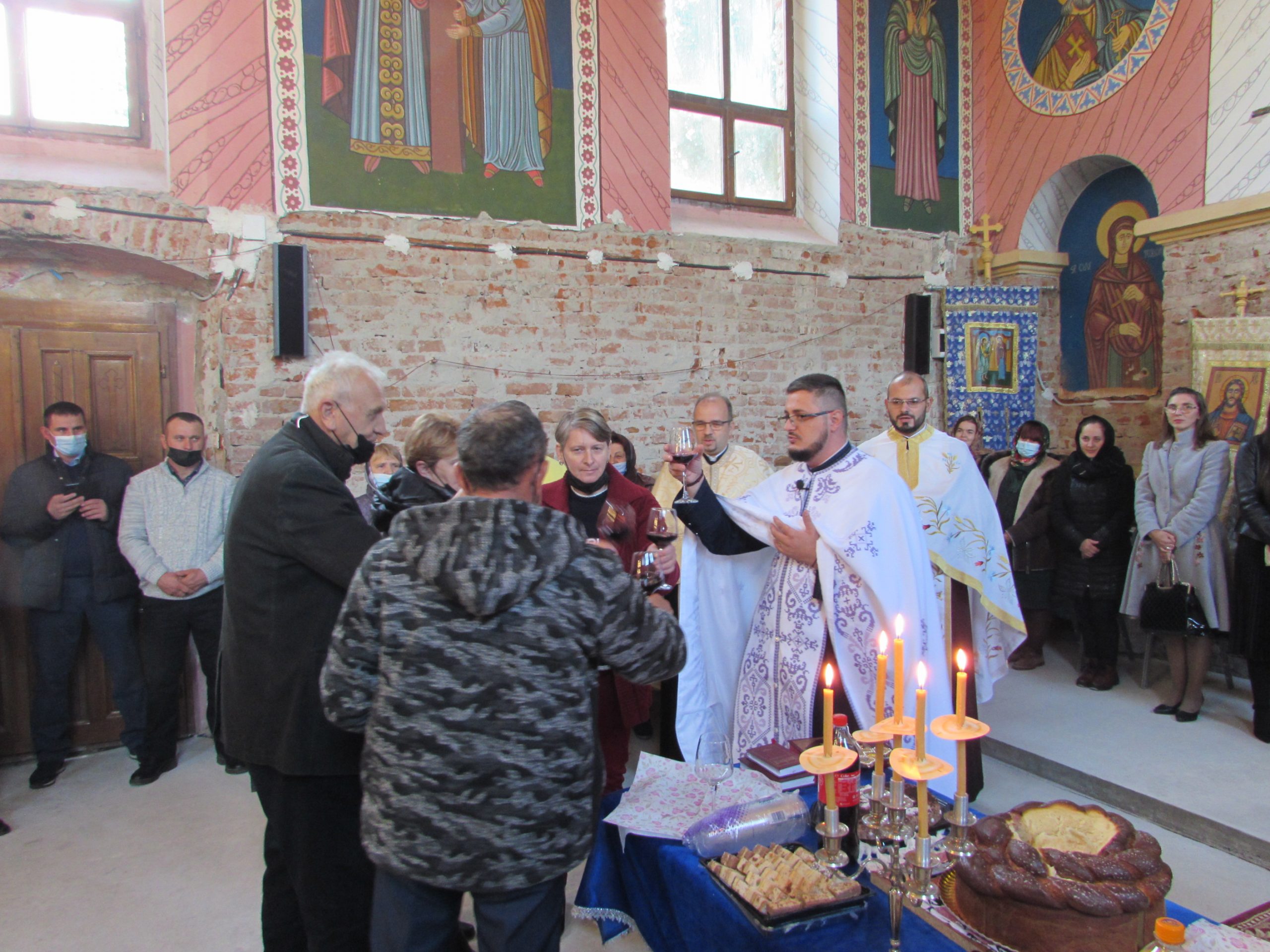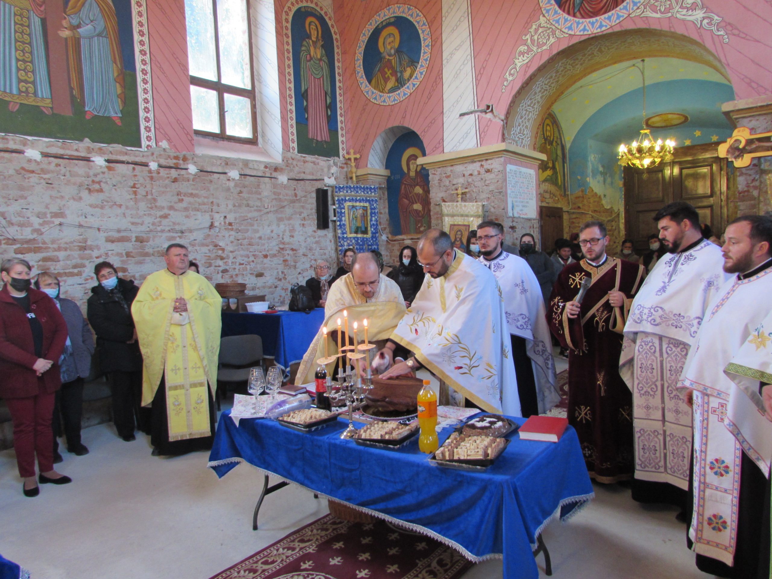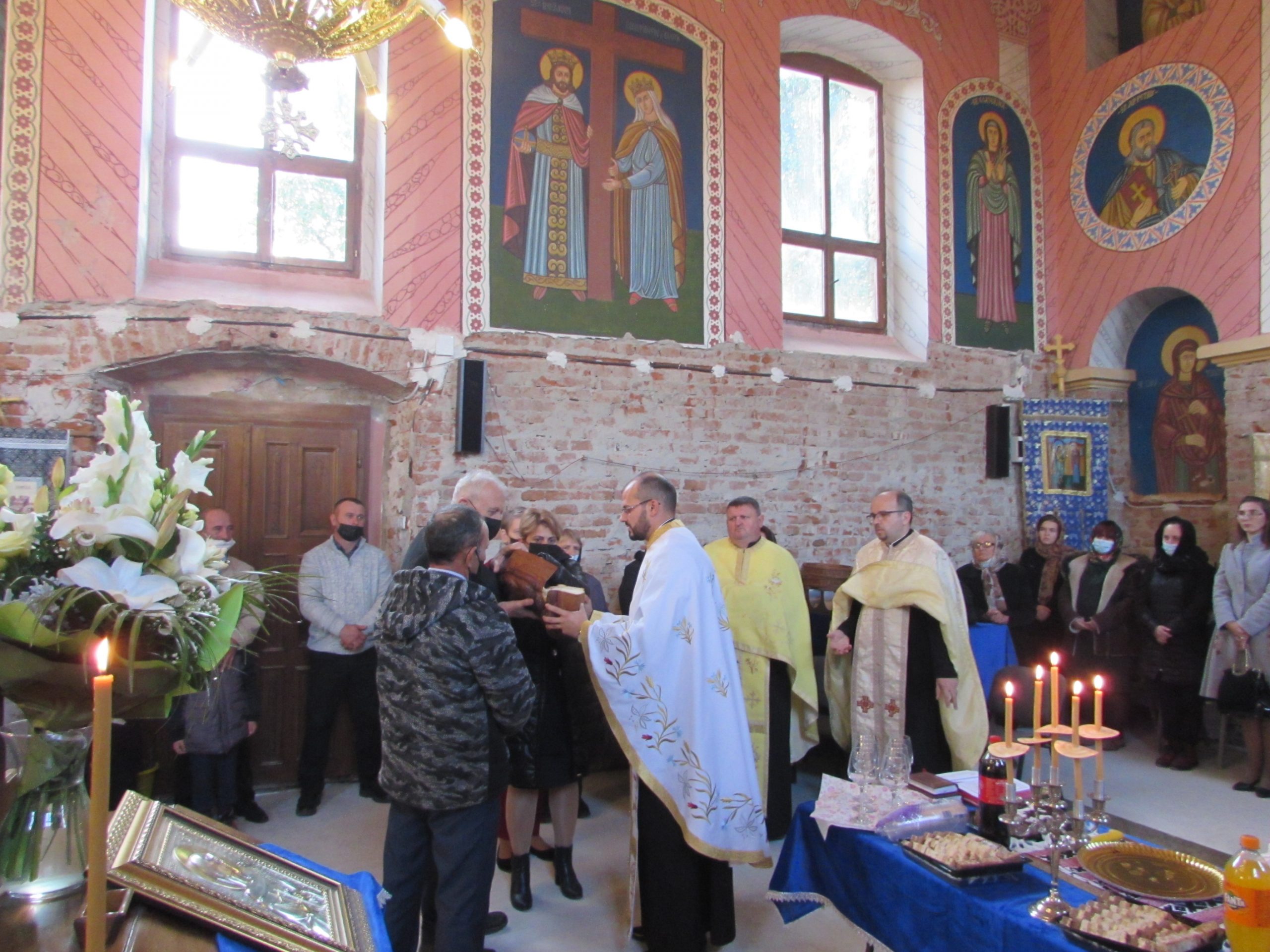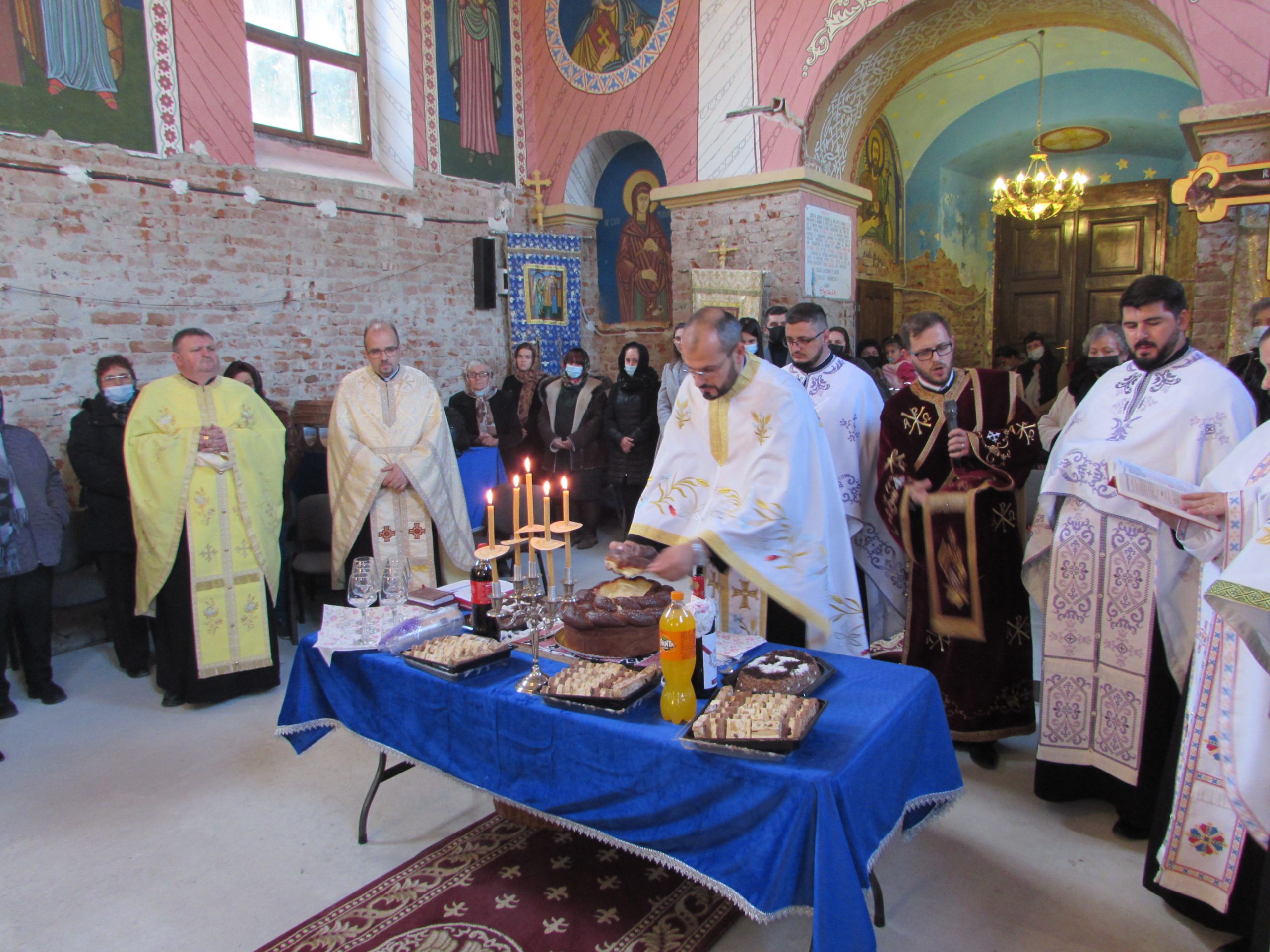A început vecernia de rugă, cu participarea a șapte preoți din Arhiepiscopia Aradului și unul cu origini în Mănăștur, acum preot în Sânmartinu Sârbesc. Aranjamentul floral accentuează atmosfera de sărbătoare. Cei mici iau parte la bucuria colectivă în stil propriu.