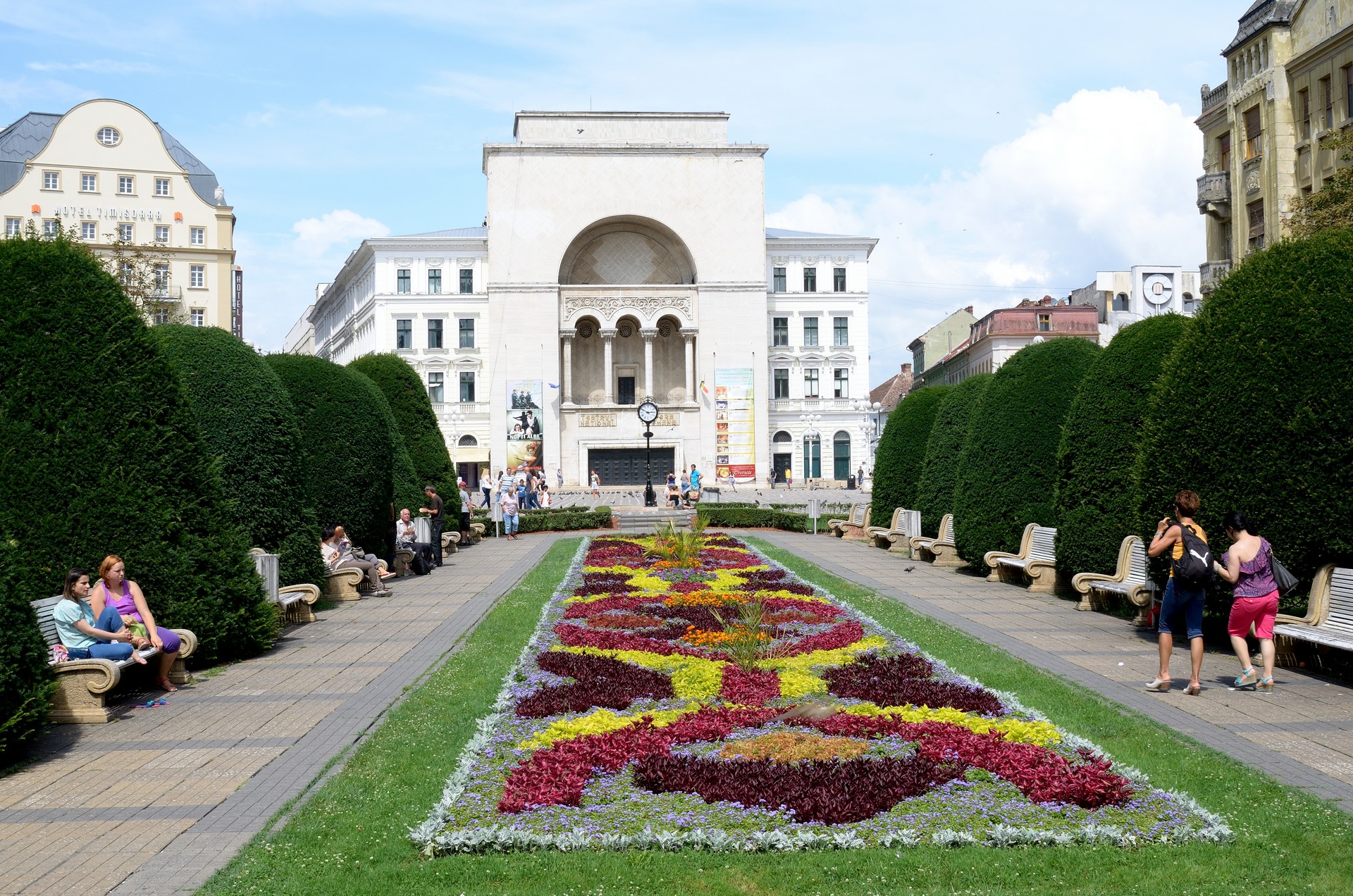 În clădirea emblematică pentru Timişoara funcţionează Teatrul Naţional, dar şi Teatrele Maghiar şi German de Stat şi Opera Română.
