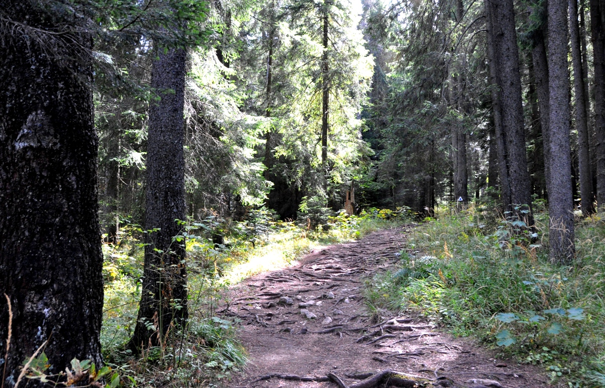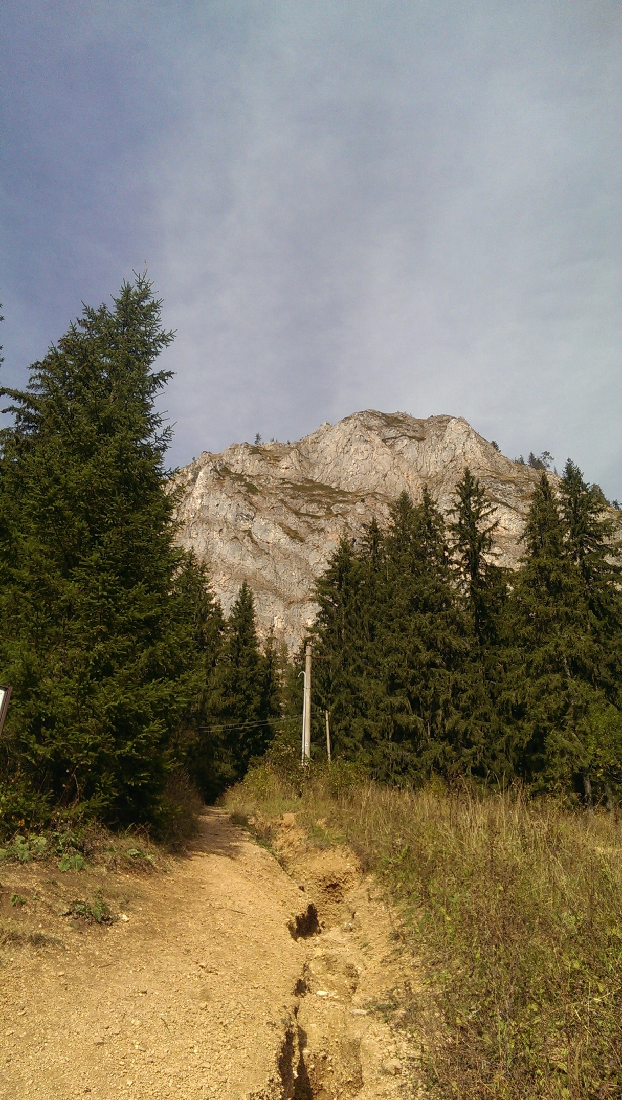 Lăsăm bărcile și rațele de pe Lacu Roșu în urmă și pornim spre vârf. Pentru că e mai ușor de „cucerit” , Hegyi Barna a ales Vârful Suhardul Mic, de vreo 1350 de metri. Trecem de vilele și pensiunile care înconjoară zona lacului, admirăm arhitectura și stilul vilelor mai noi sau mai vechi, dăm o barieră metalică la o parte și ajungem sub Suhardu Mic. Se ridică o cortină pentru un alt act al acestui spectacol.