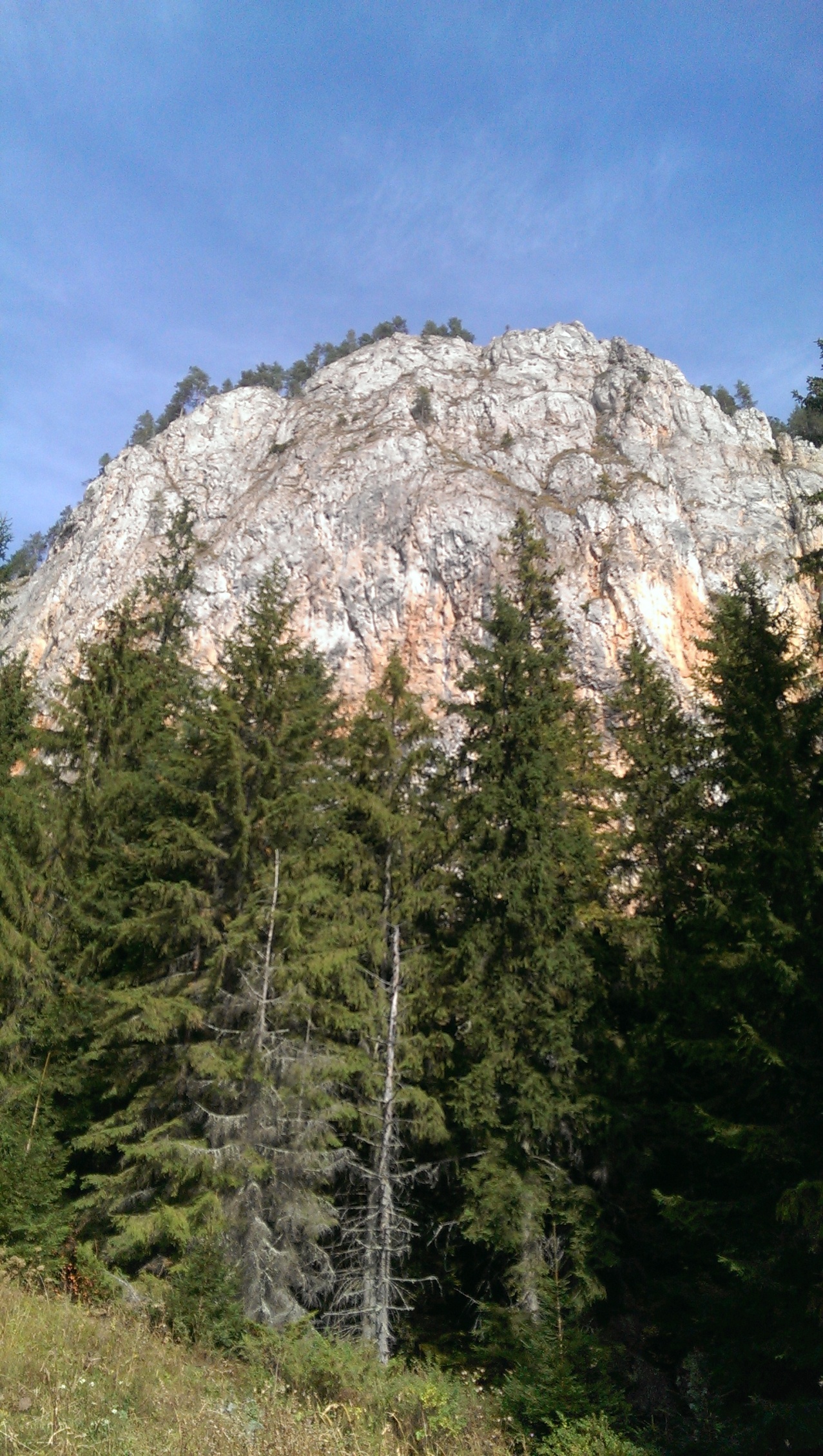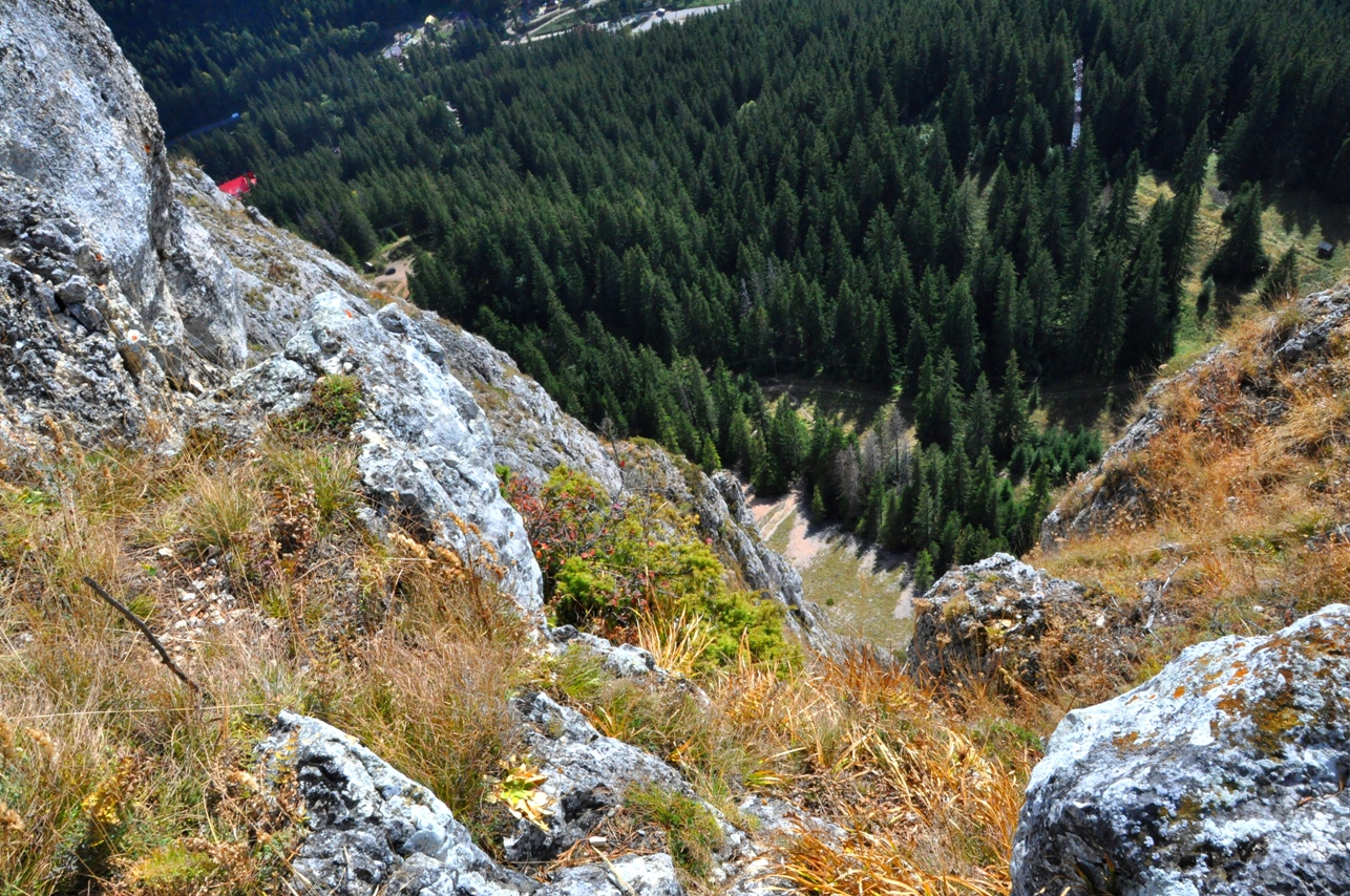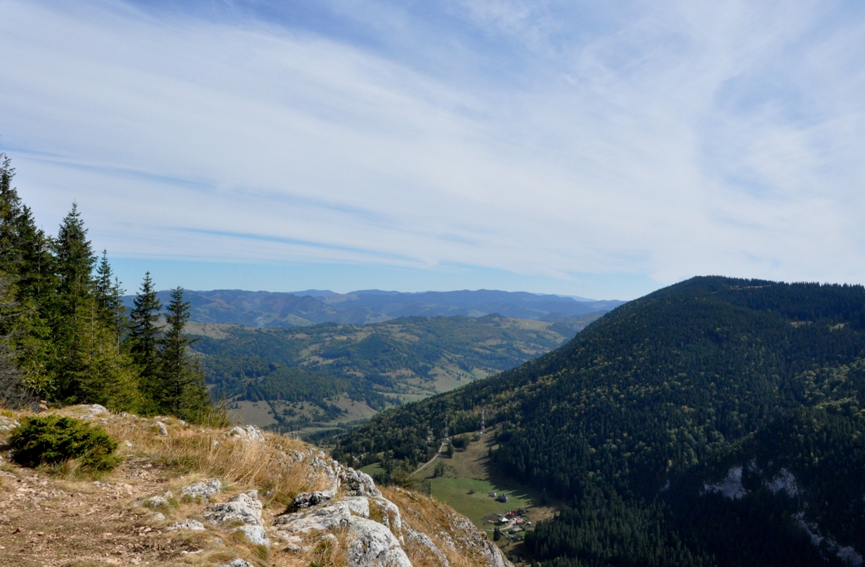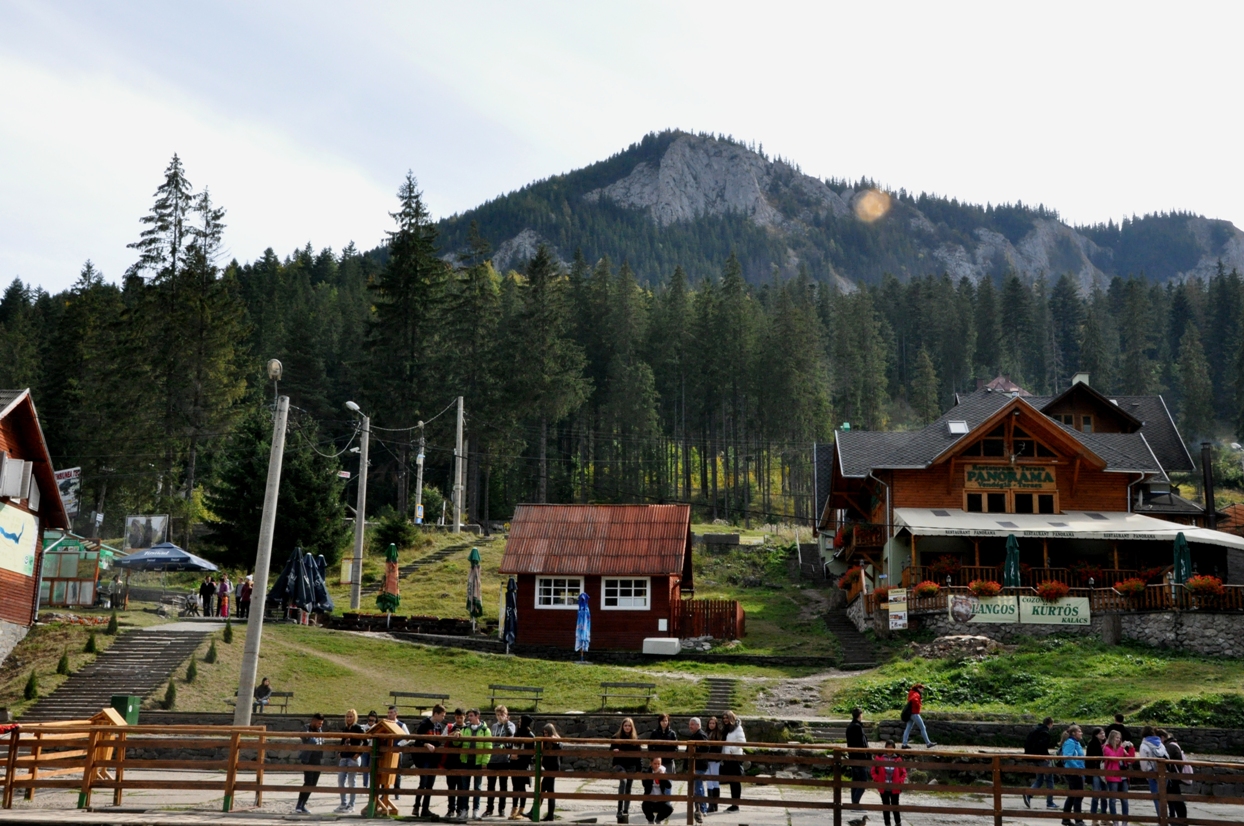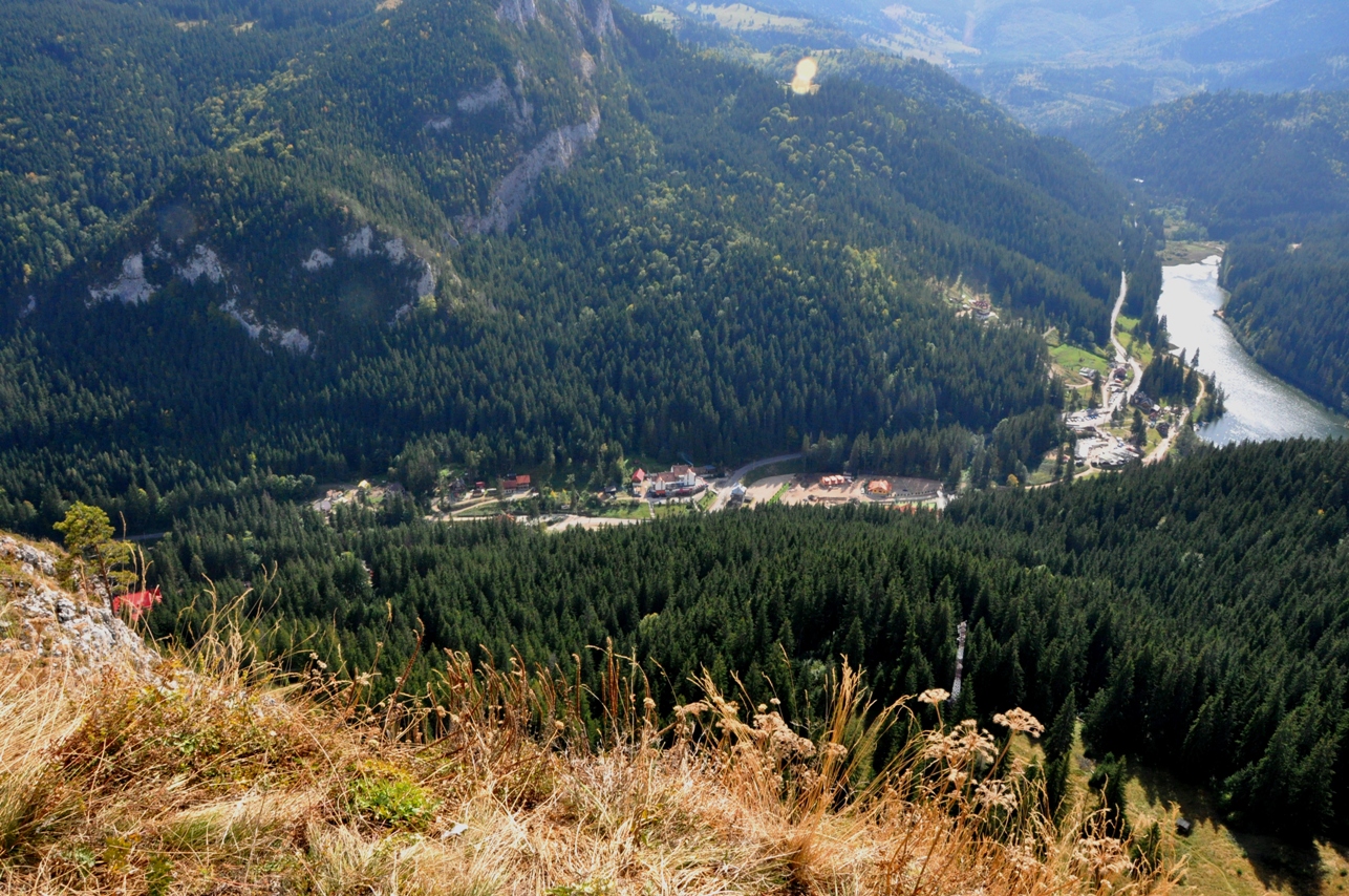 În partea stângă priveam înspre Neamț. În dreapta, de la 1350 de m., Lacu Roșu pare o fâșie lată de mătase strălucitoare. Cioatele sunt aproape invizibile, cabanele si vilele sunt, parcă, piese ale unui joc monopoly. Din vorbă în vorbă, ajungem la poveștile despre urși. Hegyi Barna spune că acest perimetru este prima zonă de iernat, urmată de Munții Haghitei. Printre stâncile tăioase, Moș Martin are rezervate cele mai bune spații de cazare peste iarnă, de unde mai iese la primăvară, însoțit și de pui.