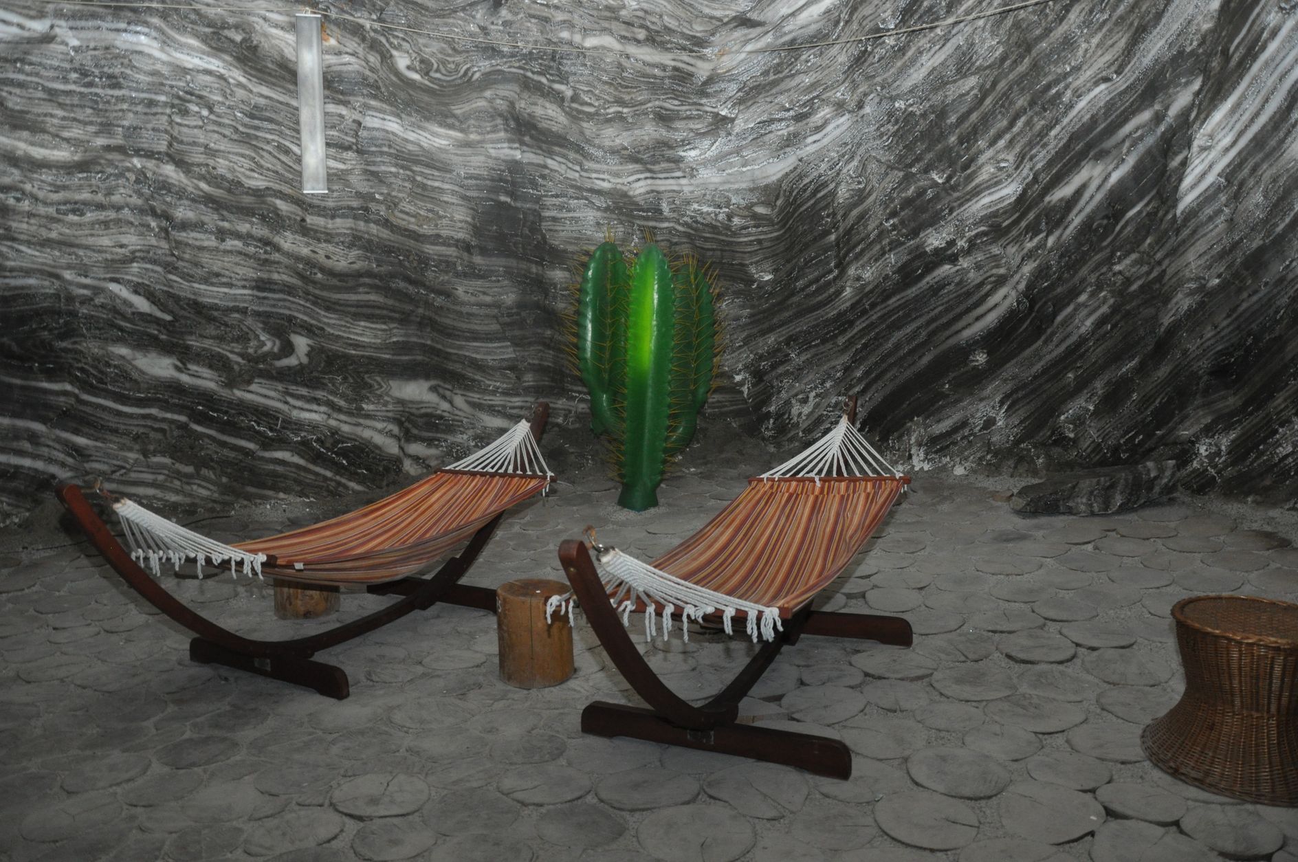 La orice pas te poţi opri pe o băncuţa sau un taburet din trunchi de copac, în aşa fel încât momentele petrecute în oraşul subteran sa fie plăcute.