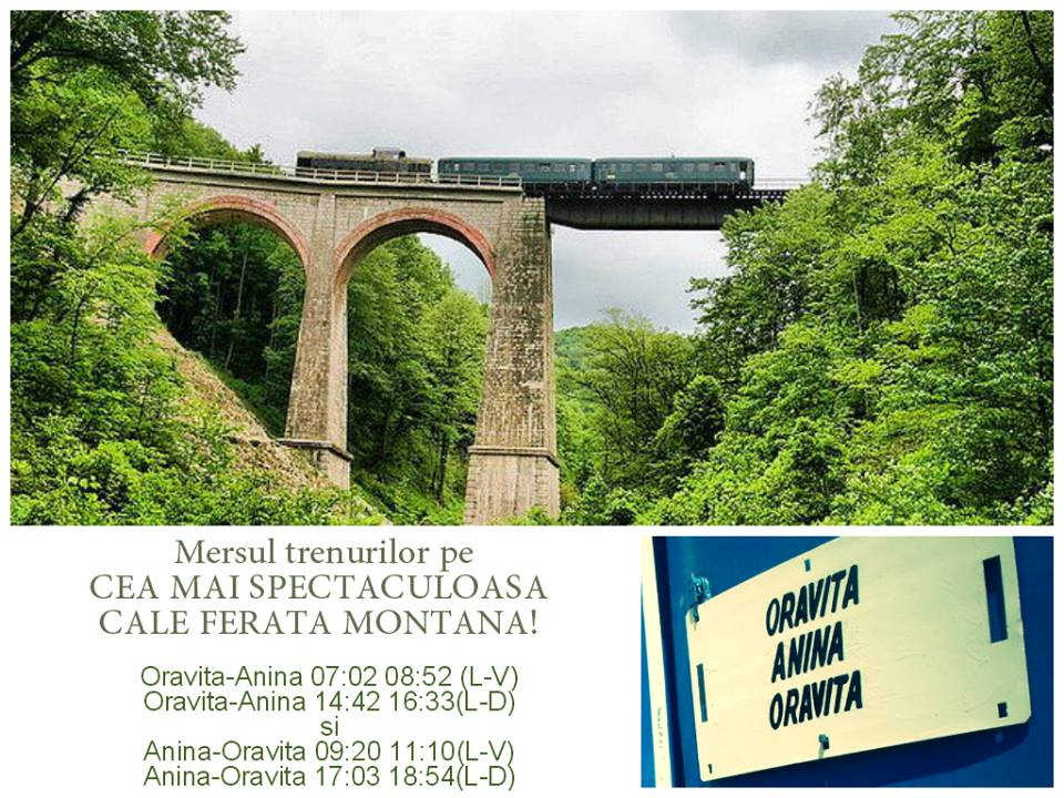 Linia ferată Oraviţa-Anina este a cincea cale ferată de pe teritoriul României, respectiv prima cale ferată montană şi cea mai frumoasă. Construită în timpul Imperiului Austriac, reprezintă un monument cultural unic în România, precum şi o realizare tehnică deosebită. A primit supranumele de „Semmeringul bănăţean” fiind construită doar câţiva ani după faimoasa cale ferată „Semmeringbahn” din Austria. Acestea sunt date pur istorice, care, la o primă vedere nu spun nimic despre experiența antrenantă de a călători de fapt pe acest traseu. Orice pasionat de trenuri cât şi iubitorii de excursii montane ar trebui să parcurgă acest traseu măcar o dată în viaţă.