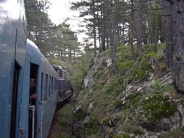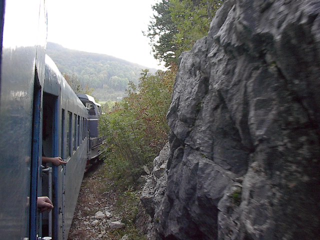 O zi însorită de toamnă, face posibilă această călătorie căci în acest anotimp impactul vizual este cel mai de esenţă. Începem fascinanta călătorie pe calea ferată Oraviţa-Anina chiar în momentul în care păşim pe peronul primei staţii CF din România, gara Oraviţa, amenajată la 1847. De pe peronul, aflat la etajul clădirii care o găzduieşte, care prin lipsa forfotei aminteşte de atmosfera gării unui oraş de munte din anii 30, ne cumpărăm tichetele şi plecăm printre celelalte vagoane garate în triaj în căutarea garniturii special destinate călătoriei către Anina. În timp ce ne căutam locurile şi aşteptam cu răbdare, pe banchetele din lemn într-unul din cele două vagoane ataşate unei locomotive Diesel moderne, fluierul scurt al impiegatului de mişcare, ne-ai mai rămas la dispoziţie câteva clipe să admirăm zona prin geamurile mici ale vagonului, care se deschid doar pe lăţimea de-o palmă. Pe dreapta se poate admira panorama Văii Caraşului, iar pe stânga tot mai aproape Munţii Aninei, pe care îi vom înconjura refăcând virtual traseul căii ferate montane. La ora 14:50 fix, în urma unui semnal acustic scurt, garnitura se pune în mişcare. Locomotiva “STEYERDORF“ de altă dată construită în anul 1862 la Viena a fost înlocuită cu o locomotivă DIESEL pe ecartament normal, fabricată la Reşiţa în anii 60, însă care păstrează multe din vechile tehnici de conducere, în special în ceea ce priveşte viteza de deplasare şi înscrierea milimetrică în curbele extrem de strâmte de pe traseu. Trenul părăseşte gara ca pe vremea bunicilor punându-se în mişcare înspre direcţia “Steirawald“ (Pădurea Steier). Nici o altă rută feroviară din ţară nu este aşa de bogată în construcţii arhitecturale atât de impunătoare. Traseul în lungime de 34 de kilometri având o diferenţă de nivel de 340 de metri, între punctul de plecare şi destinaţia finală, străbate 14 tuneluri săpate în stâncă, în lungime totală de peste 2.084 de metri, pe o distanţă de aproximativ 21de kilometri şi 10 viaducte însumând 843 de metri. Calea ferată şerpuieşte peste 10 kilometri de ziduri de sprijin clădite manual cu precizia tehnicilor constructorilor germani, peste 21,2 kilometri de coridoare cioplite în rocă şi de aproximativ 10 kilometri însumând o seamă de viaducte şi poduri peste văi adânci de 35 de metri.