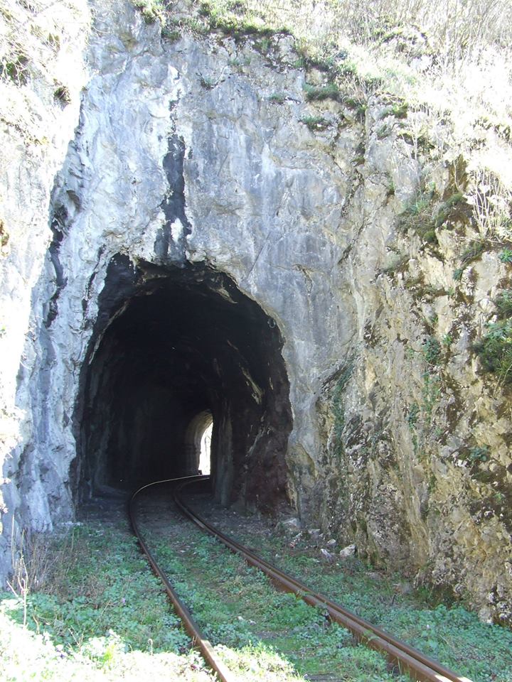 Dealurile, asemeni unor spinări curbate, pierd din înălţimi pe măsură ce se apropie de linia orizontului. Nici bine plecaţi din gara Gârlişte, trenul este înghiţit aproape instantaneu de hăul întunecos al celui mai lung tunel al rutei, tunelul Gârlişte, în lungime de 672,62 de metri. Acesta face deschiderea panoramei şi stabileşte traiectoria coborâşului spre oraşul Anina. Până la destinaţie însă trebuie parcurse şi celelalte tuneluri mai mici ale rutei pentru ca exact la ora 16 şi 50 de minute, după un lung semnal acustic, să intre în cea mai veche gară a Banatului Montan, Anina.