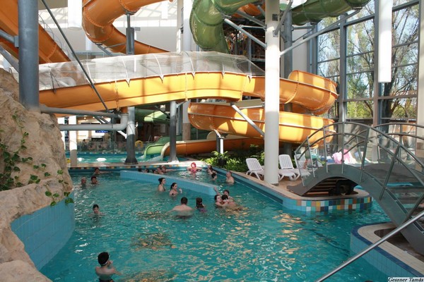 Aici găsiți tobogane ce măsoară viteza și chiar puteți face o poză pe tobogan. Atracția cea mai mare este toboganul care urcă. Iubitorii de adrenalină preferă bazinul adânc de 3.5 metri destinat lor. Punctul culminant al distracției se poate obține printre valurile de 1 metru ale bazinului cu valuri, iar bazinele olimpice oferă posibilitatea de evenimente sportive. Mai găsiți aici bazine pentru copii, bazine termale, bar în apă, strand, welness și masaj.