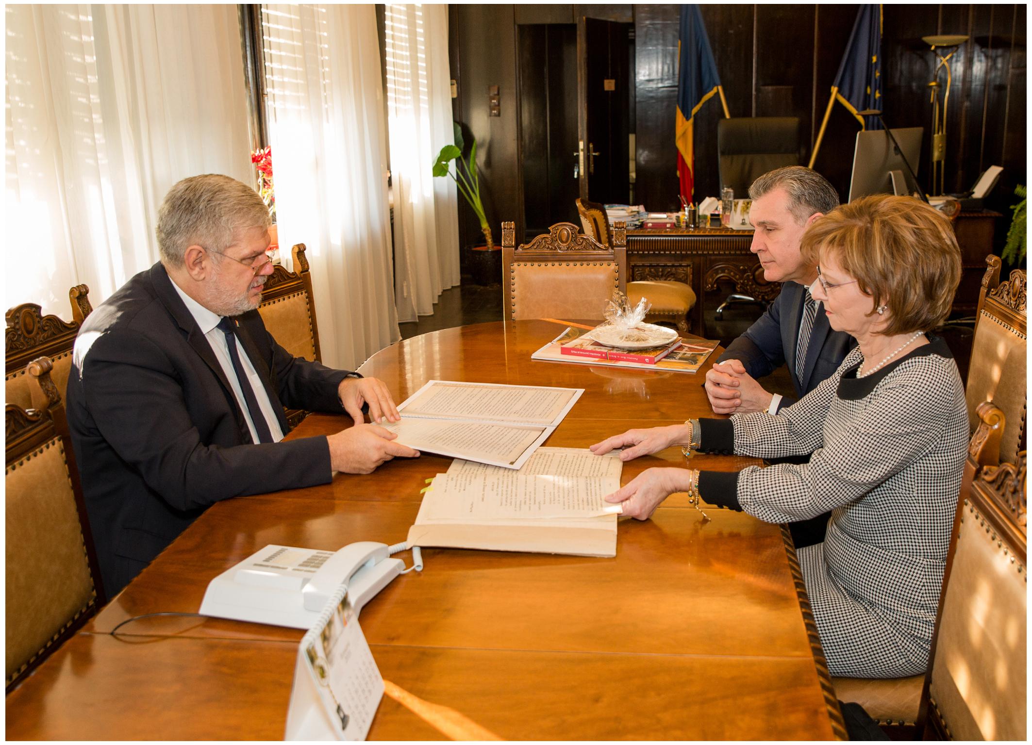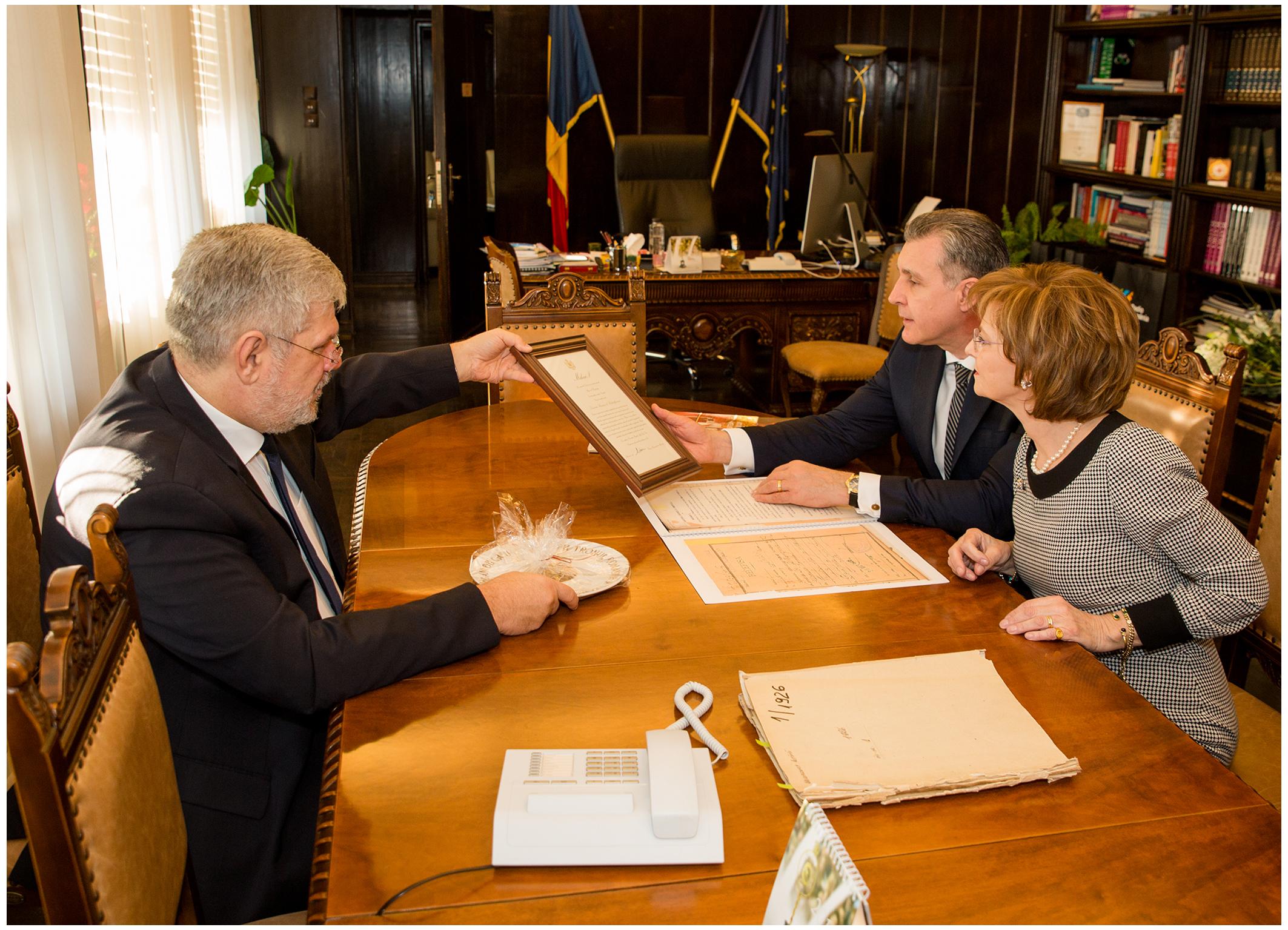 Georgică Severin, Preşedinte Director General al SRR, le-a prezentat oaspeţilor actul de înfiinţare a Societăţii Române de Radiodifuziune, semnat în 1928 de Regele Ferdinand precum şi proiectele postului public în contextul marcării Centenarului Marii Uniri. Printre subiectele abordate s-au aflat şi cele referitoare la posibile proiecte comune. Majestatea Sa Margareta a anunţat că va organiza la Castelul Peleş o recepţie dedicată Radioului Public, la aniversarea a 90 de ani de radiofonie românească.