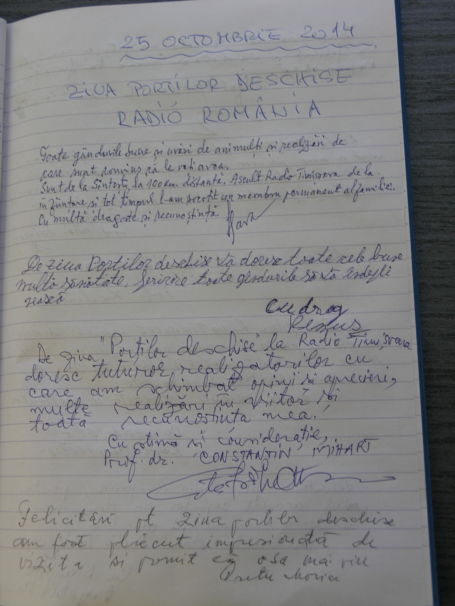 Am avut şi vizitatori din Tg. Jiu, unul dintre ei şi-a făcut din vizita la Radio Timişoara un cadou la împlinirea a cinci decenii. Mulţi ani cu sănătate din partea noastră!