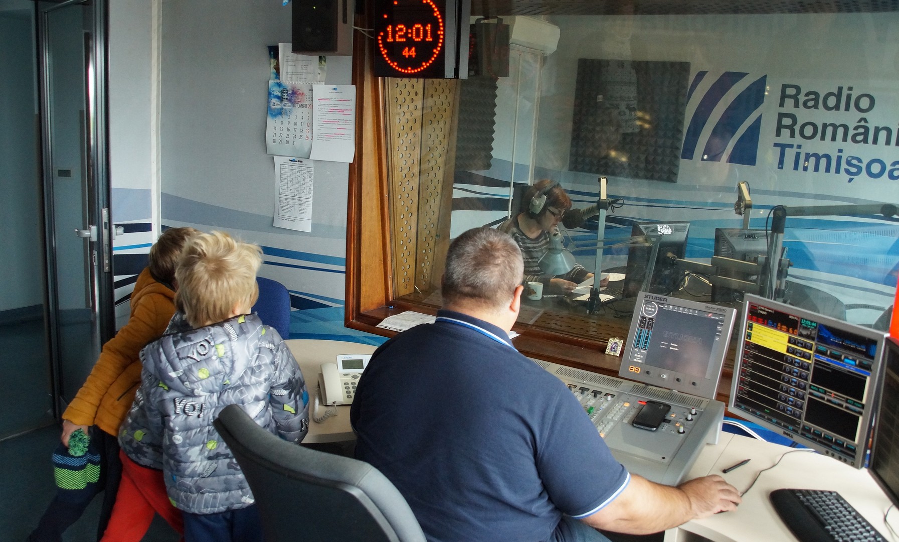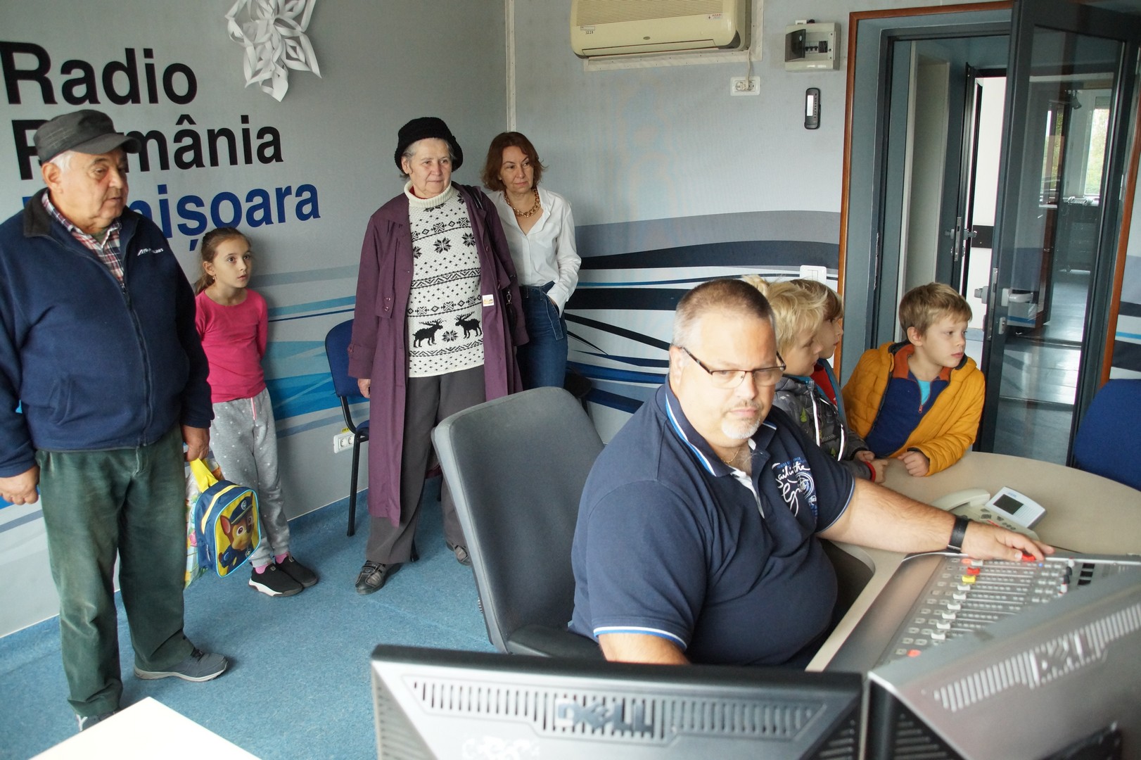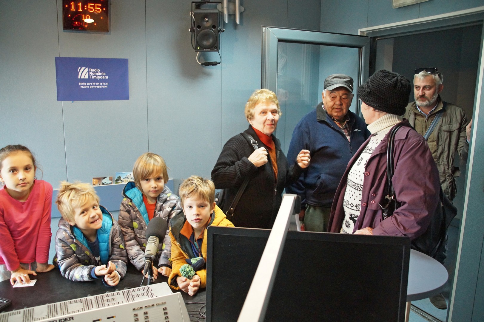 Înainte de prânz a sosit un grup de bunici și nepoți care s-au întâlnit cu Călin Petrescu și apoi, la ora 12.00 au văzut-o pe Silvana Andreaș, prezentând în direct știrile Radio Timișoara.