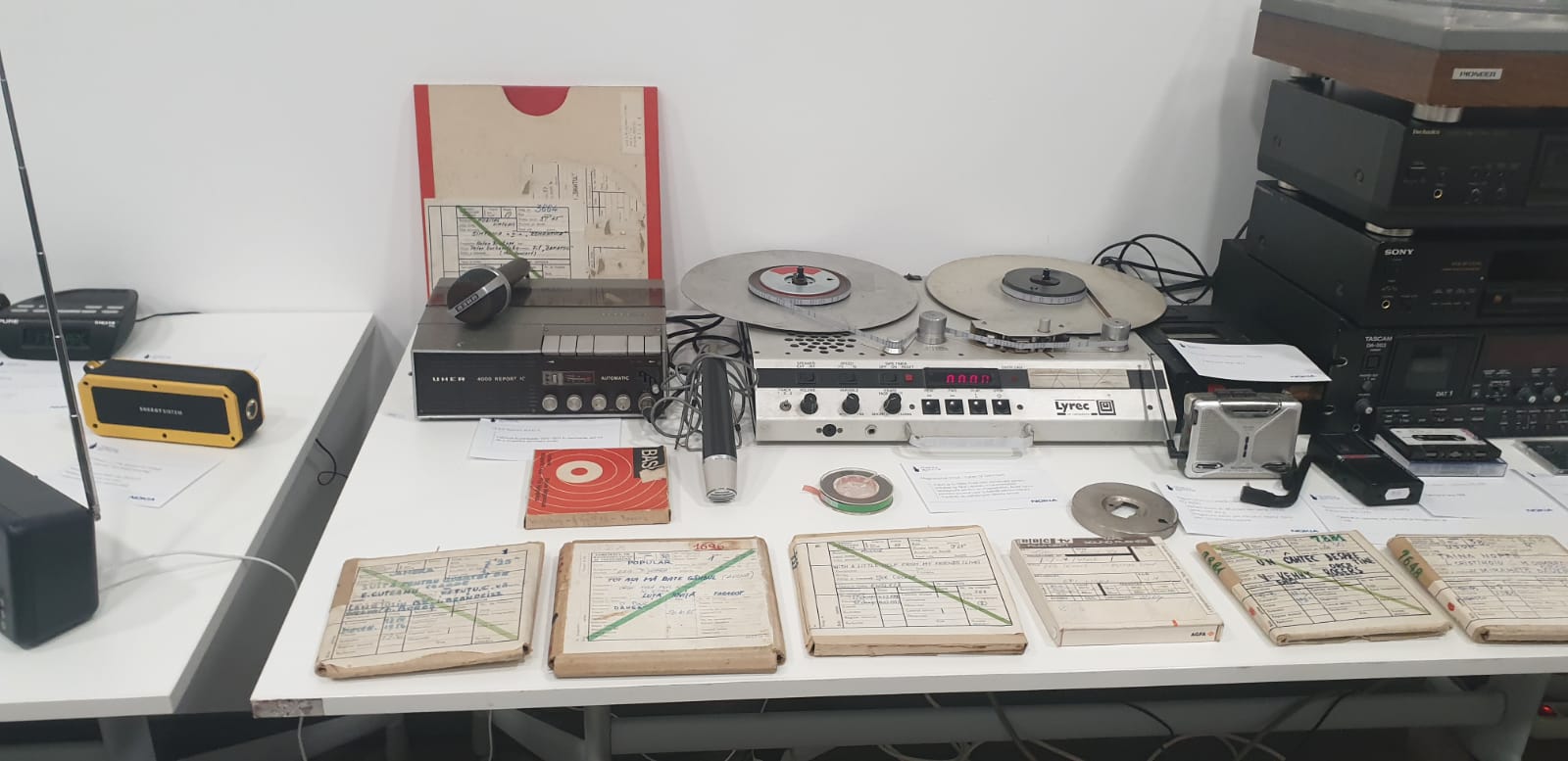 Mulți și-au amintit de magnetofoanele de altădată , dar le-a venit totuși greu să creadă că pentru fiecare piesă muzicală sau înregistrare noi aveam în fonotecă o bandă separată, care trebuia pusă pe unul din magnetofoane din emisie pentru a se auzi pe post. Au văzut cu ochii lor banda numărul 1 din Radio Timișoara, datată 1956, dar și prima înregistrarea de folclor din fonoteca noastră.