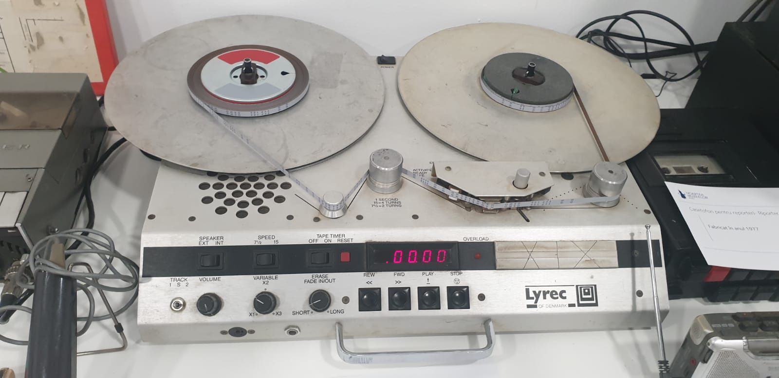La grele încercări am pus și noi cel mai râvnit magnetofon pentru editare în anii 90 de la Radio Timișoara, un model din Danemarca – Lyrec, încă funcțional. Pe el am putut explica ce însemna în acei ani să încerci să elimini câteva cuvinte sau un sunet nedorit, tăind fizic, cu precizie, o bucată de bandă. Au fost atât de mulți curioși să afle cum funcționează încât nu ne-am oprit cu demonstrațiile decât când … a început să miroase a ars și să iasă fum (deci putem spune că atmosfera a fost incendiară la propriu!)