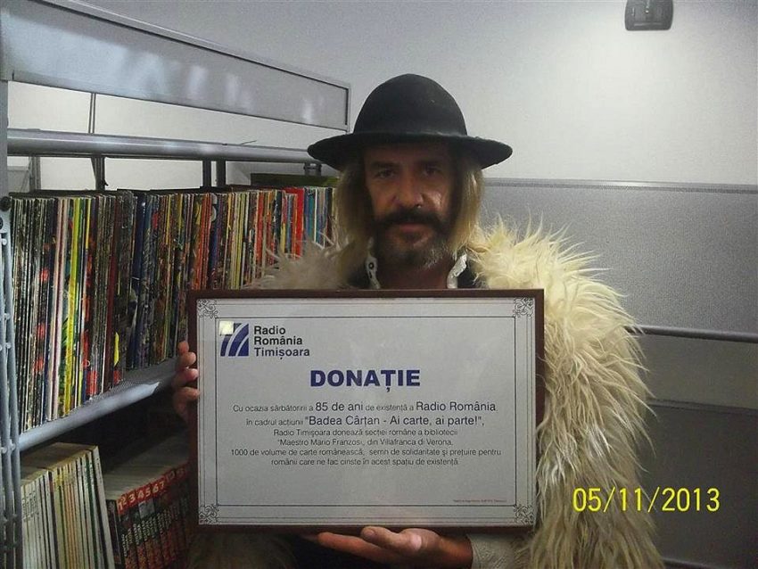 La 85 de ani de existenţă a Radio România, în cadrul acţiunii „Badea Cârţan – Ai carte, ai parte!”, Radio Timişoara a donat bibliotecii „Maestro Mario Franzosi” din Villafranca di Verona, 1000 de volume de carte românească, în semn de solidaritate şi preţuire pentru românii care ne fac cinste în acest spaţiu de existenţă.