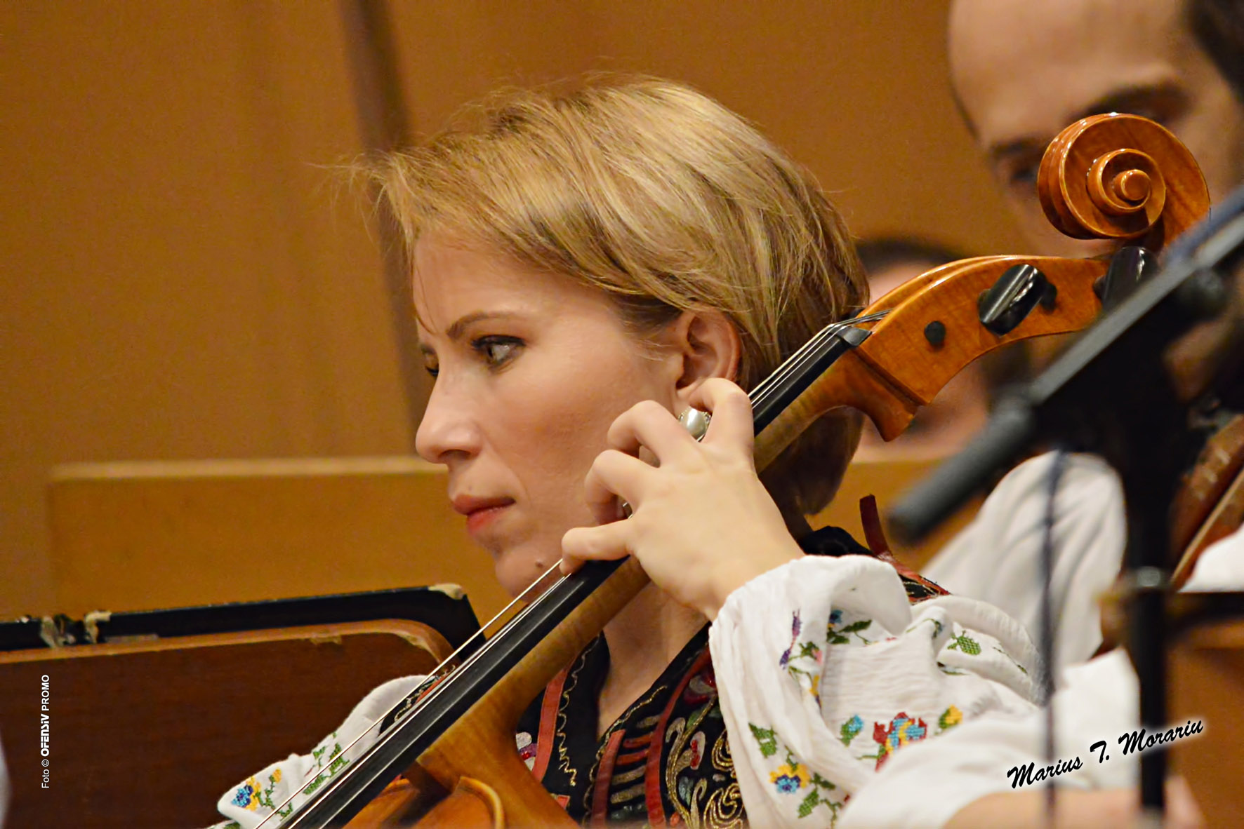 Prof.univ.dr. Marcel Tolcea, Facultatea de Ştiinţe Politice, Filosofie şi Ştiinţe ale Comunicării, membru al Senatului UVT, scriitor: „Prima mea impresie, atunci când am văzut fotografiile din această Expoziţie, a fost aceea că asist la un reportaj sui generis despre sunetul în exprimarea sa feminină. Că gesturile, chipurile, posturile doamnelor sau domnişoarelor transmit, dincolo de concentrarea până la transcendere, dincolo de trăirea şi interiorizarea artistică ajunsă, uneori, la exaltare, un sunet insesizabil al graţiei. Marius T. Morariu surprinde o simfonie de gesturi, de emoţii, sentimente, flirturi, subînţelesuri, candori, de la crochiuri gestuale, fulgurante şi fără semnificaţii precise, până la abia ghicite accente anecdotice…”
