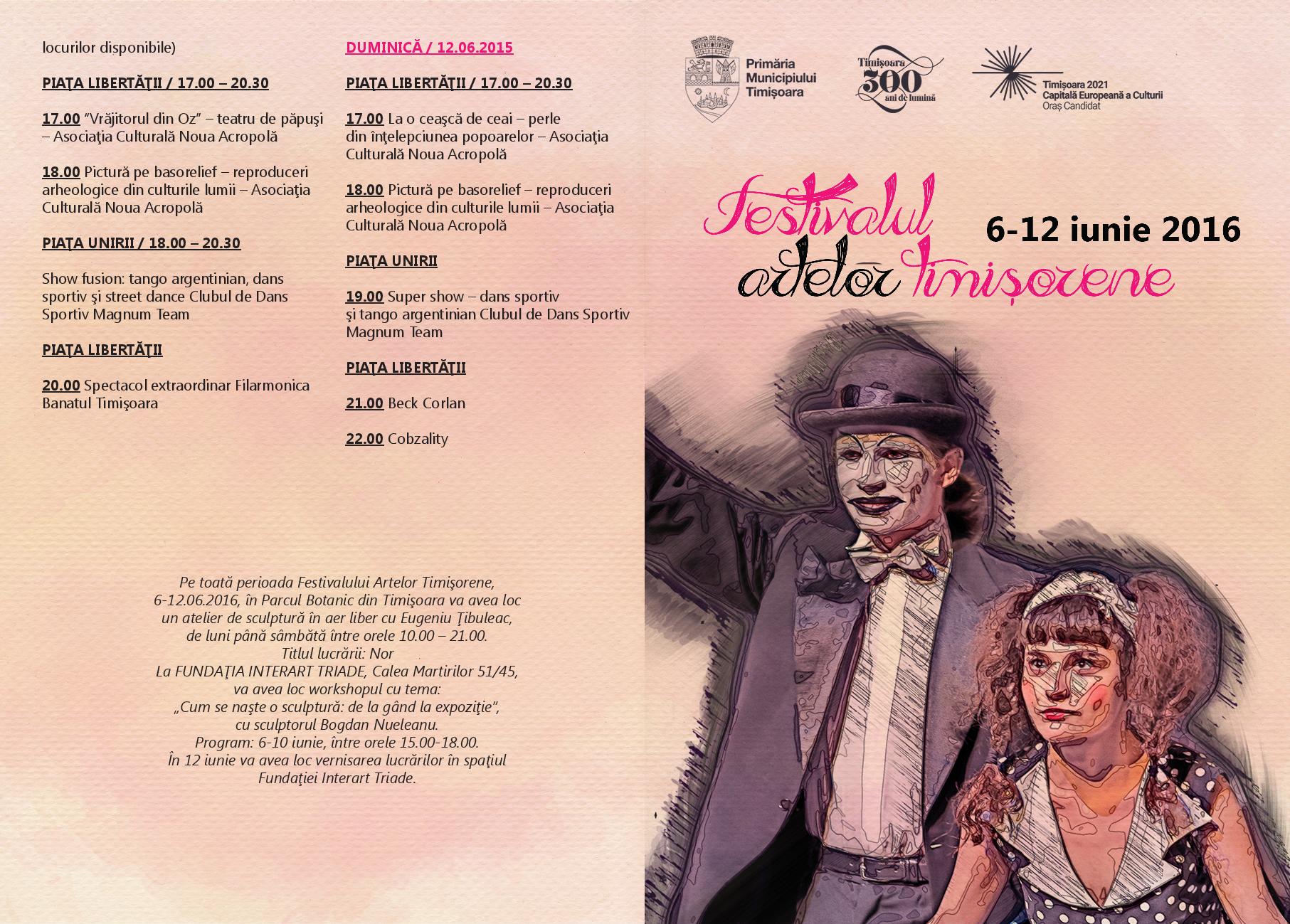 Pe toată perioada Festivalului Artelor Timişorene, 6-12.06.2016, în Parcul Botanic din Timişoara, va avea loc un atelier de sculptură în aer liber cu Eugeniu Ţibuleac, de luni până sâmbătă, între orele 10.00 – 21.00. Titlul lucrării: Nor.