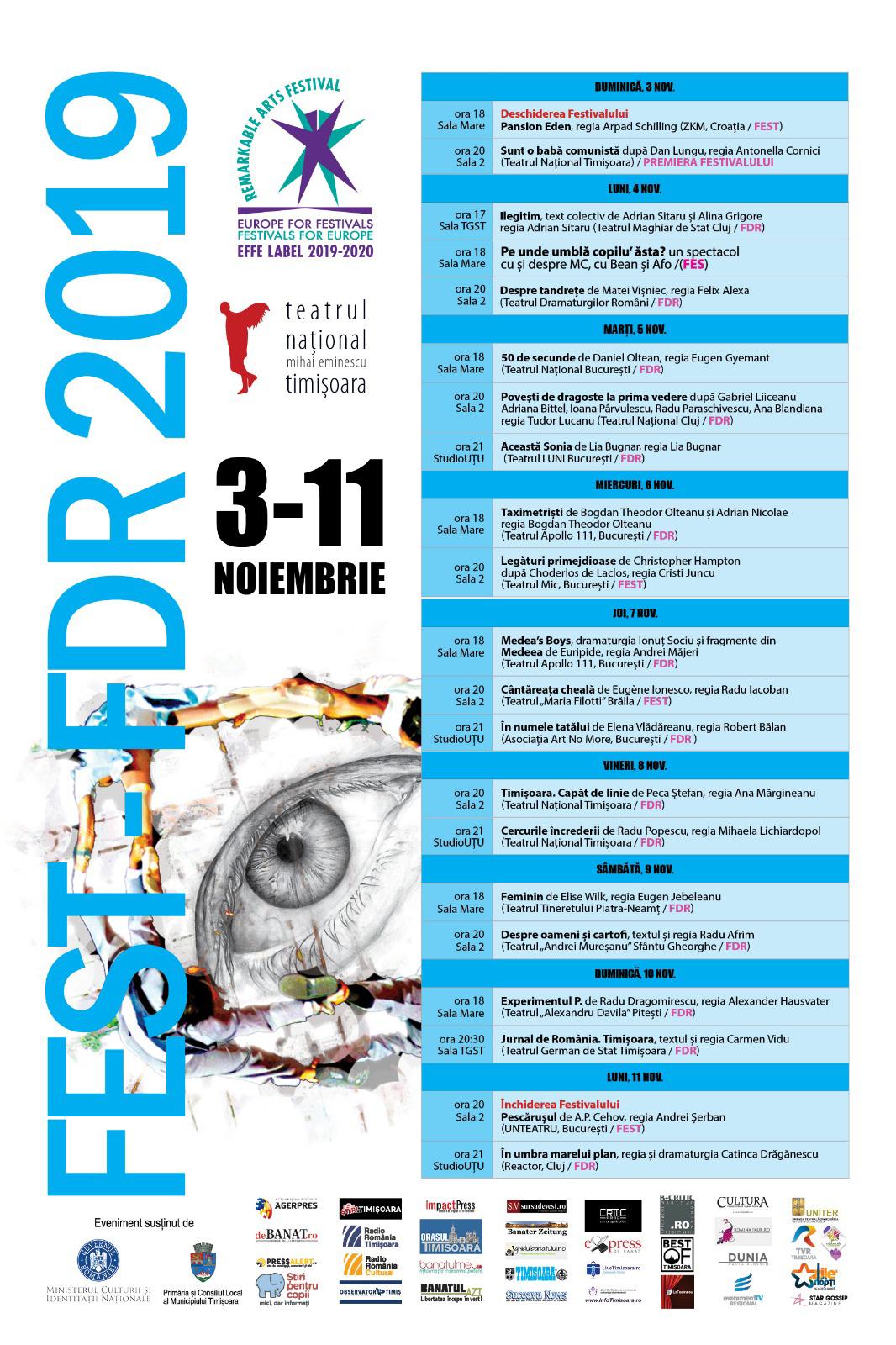 Festivalul European al Spectacolului Timișoara – Festivalul Dramaturgiei Românești FEST-FDR 2019 / PROGRAM