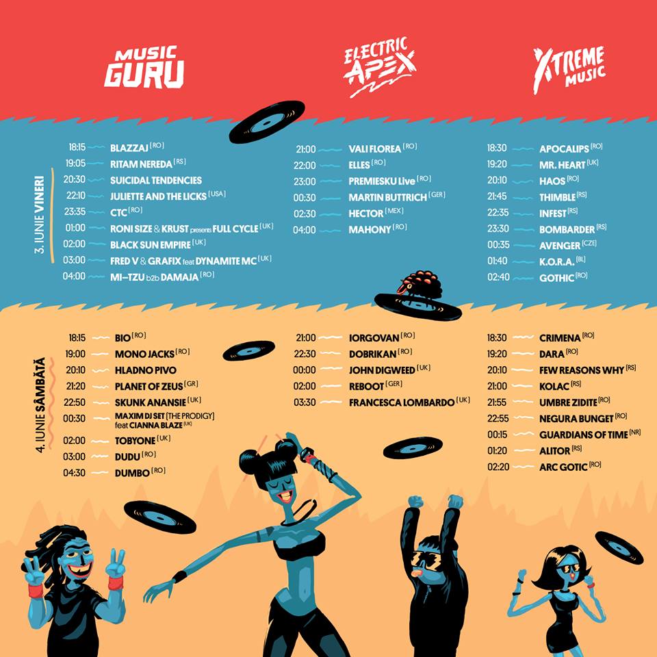 Locul ideal pentru toți iubitorii de beaturi puternice este scena unică Electric Apex. Admirată de cei care adoră cei mai cunoscuți DJ de house, techno și minimal, aceasta adună la un loc sunete explozive și lumini vibrante. Publicul va avea parte de spectacole de neuitat, printre care și cel oferit de JOHN DIGWEED (UK). Spiritul Cubei vine la Timișoara pe scena CUBALKAN. Ritmuri latino fierbinți și energice vă vor cuprinde și nu vă vor mai da drumul. Deci, să nu vă speriați dacă dintr-o dată vă simțiți plini de viață în timp ce dansați în armonie. After party-ul este oferit de Barac b2b Gescu (RO).